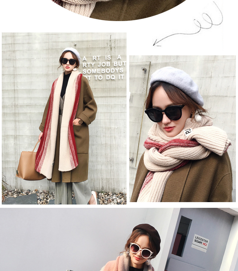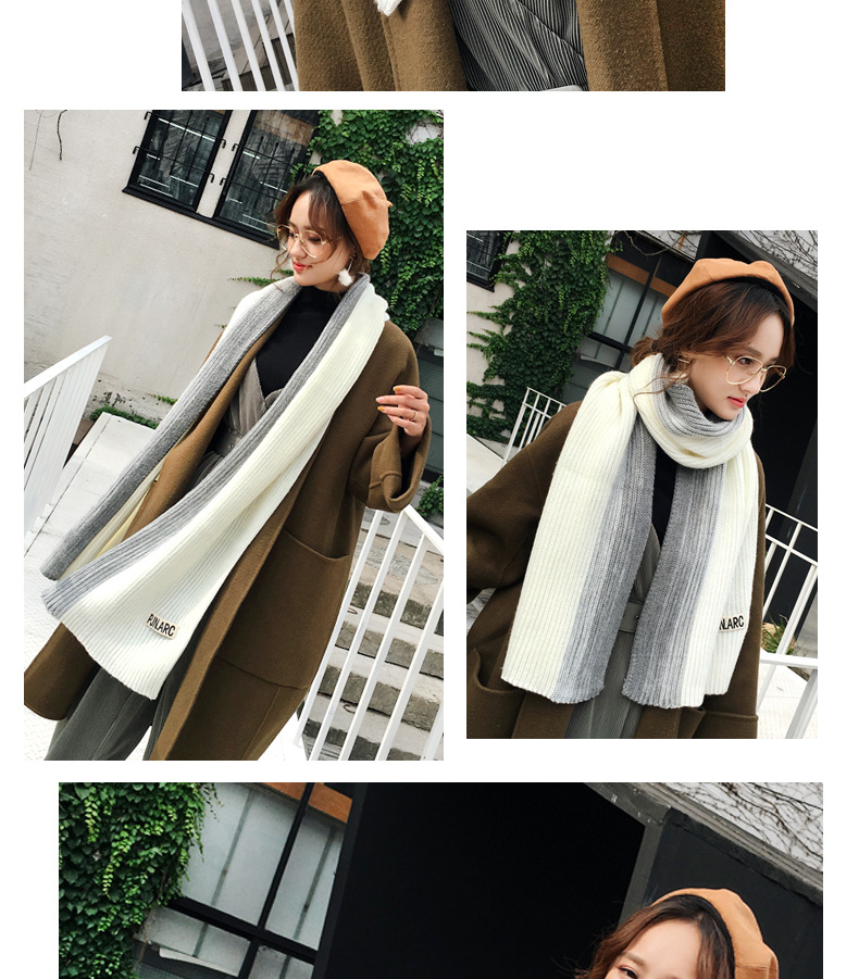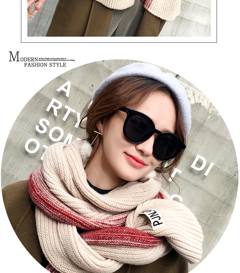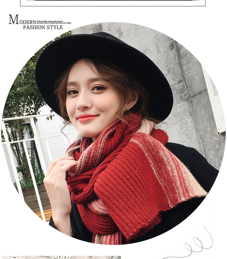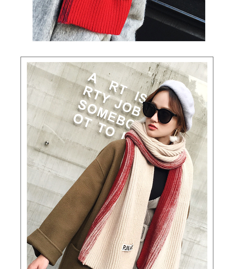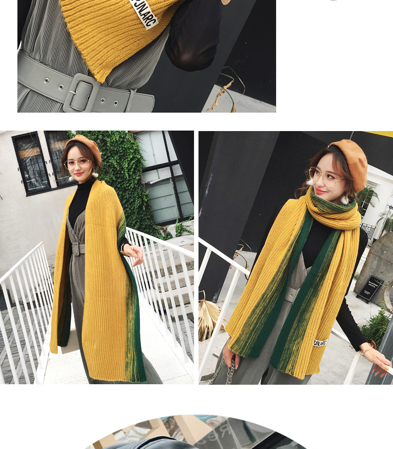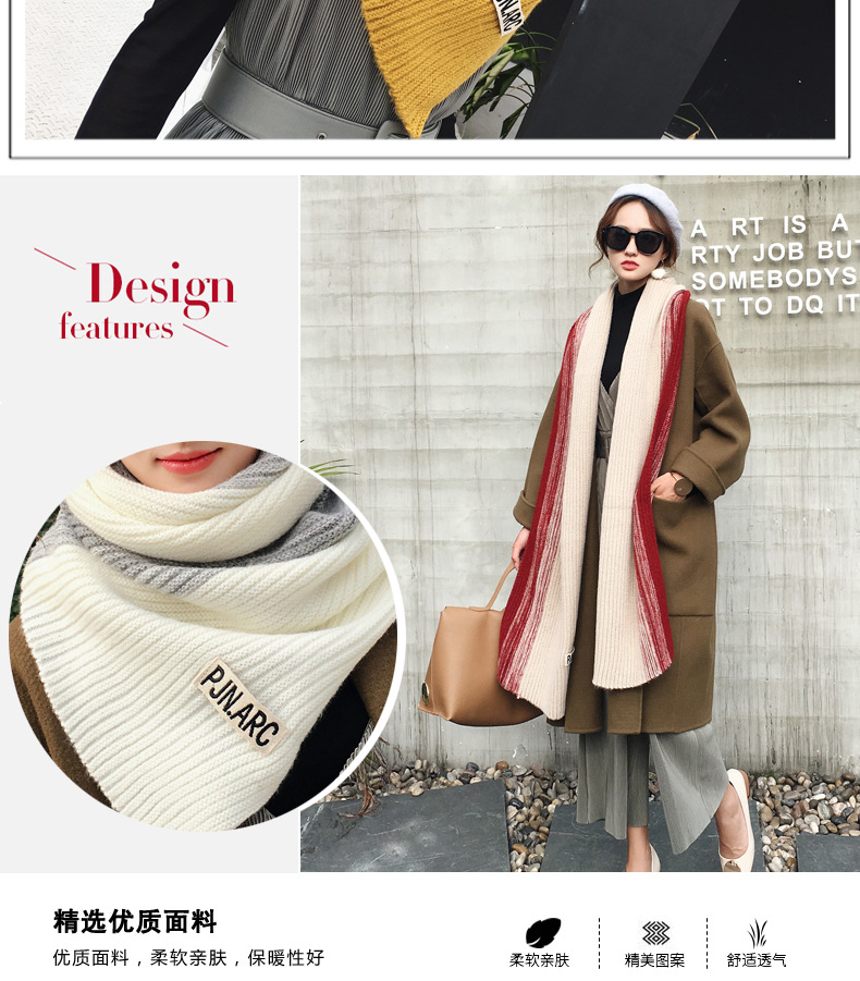 【围巾女】秋冬季新款渐变色加厚毛线长围巾时尚贴标针织保暖围脖女