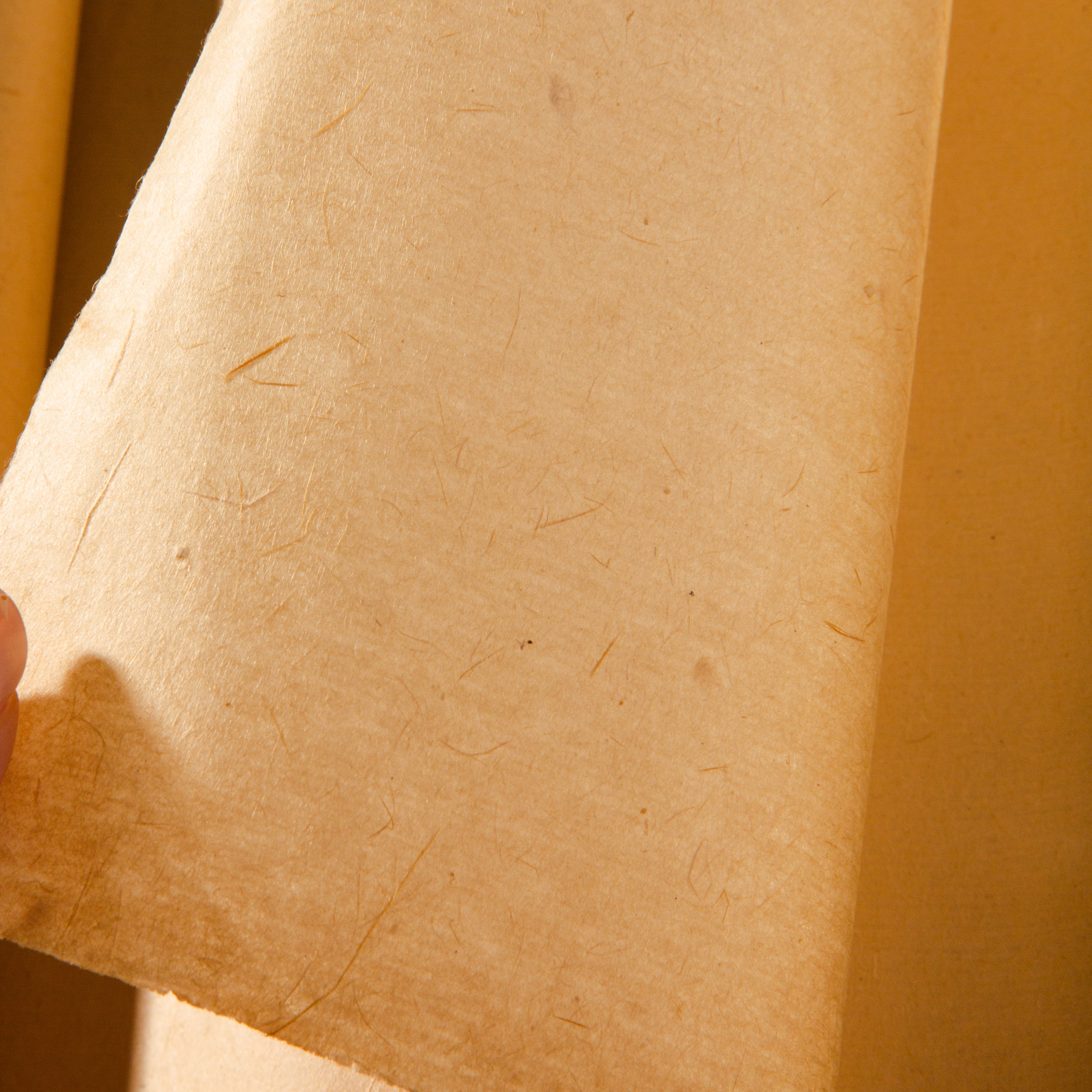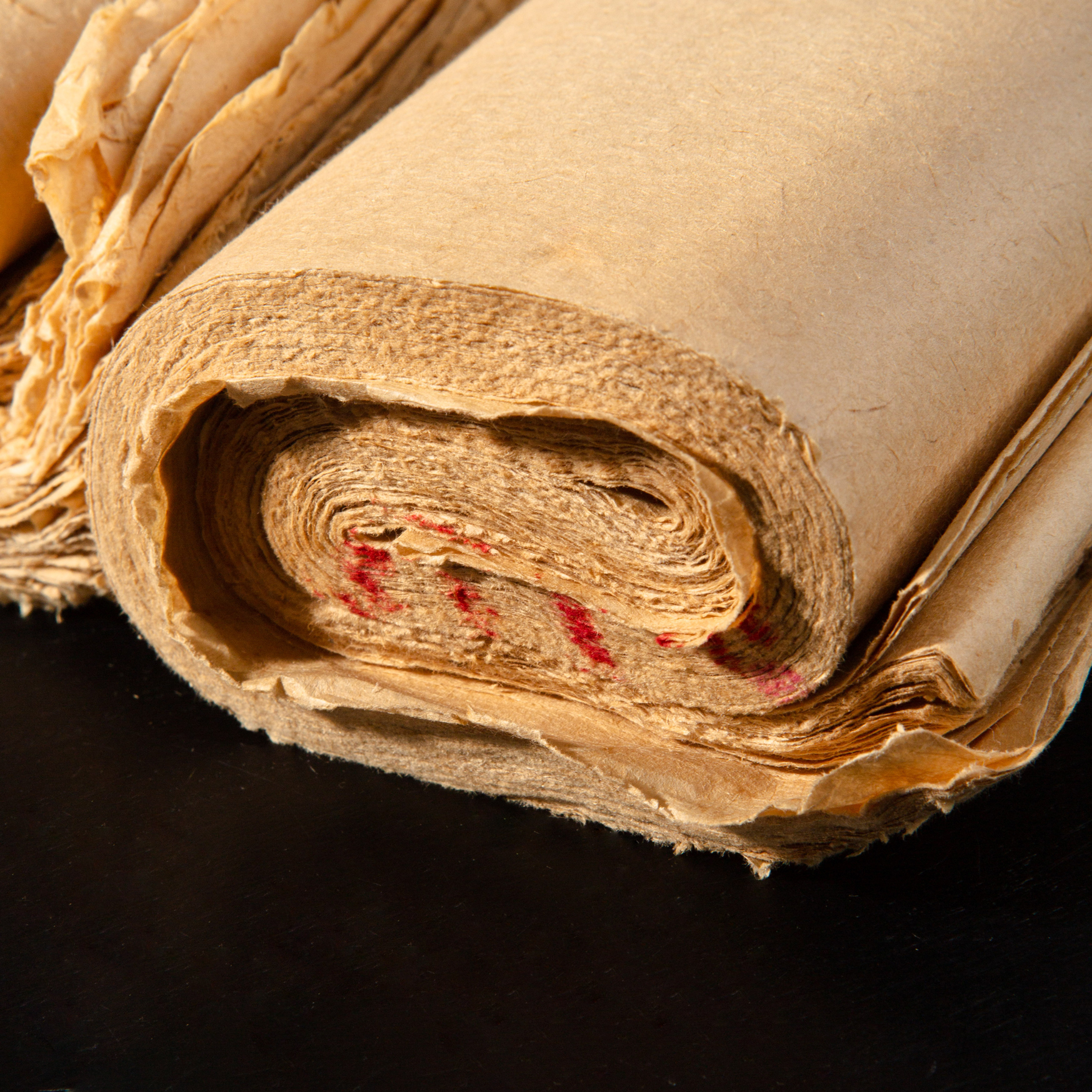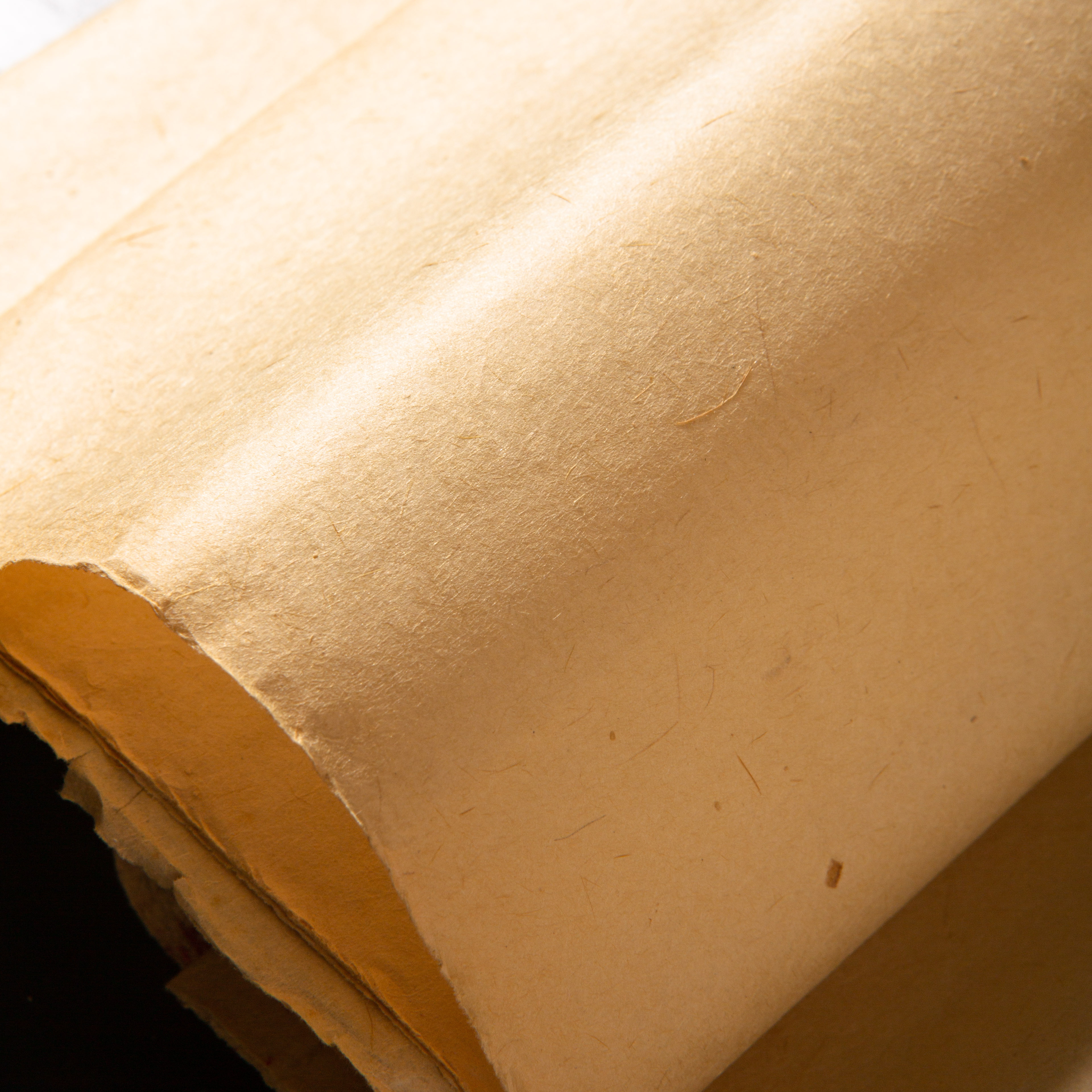 50-60年代合作社生产老竹纸,两卷共191张,此批纸均为古法手工所制,纸质柔软,颜色古朴,帘纹清晰,老纸火气已完全尽失,宜书宜画。