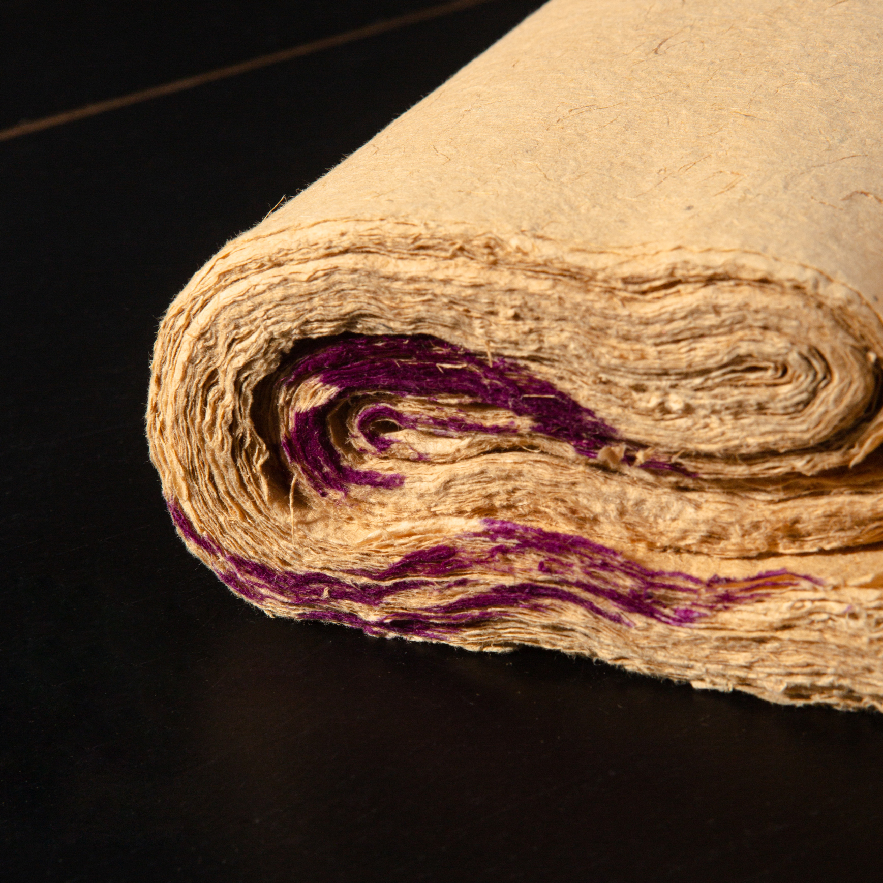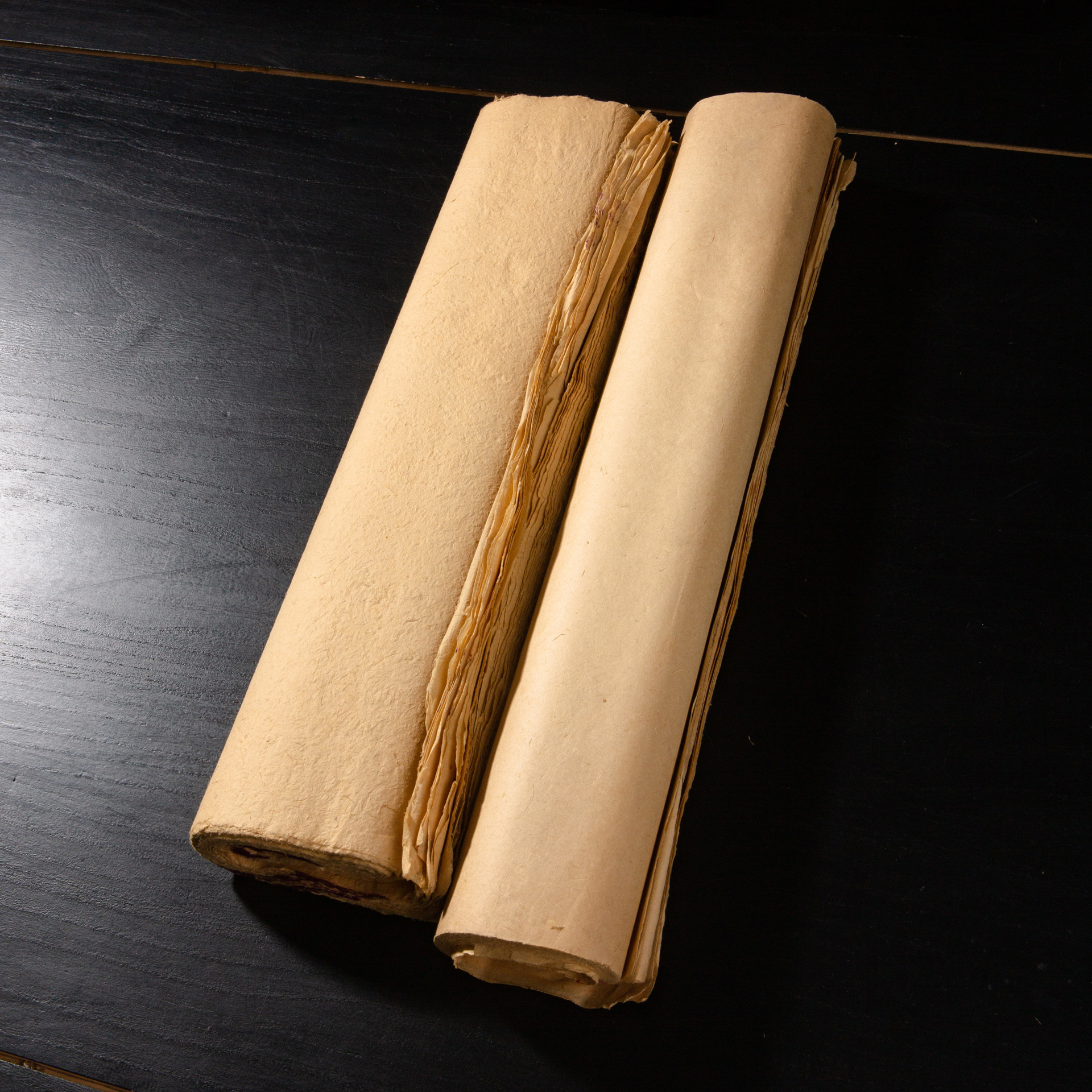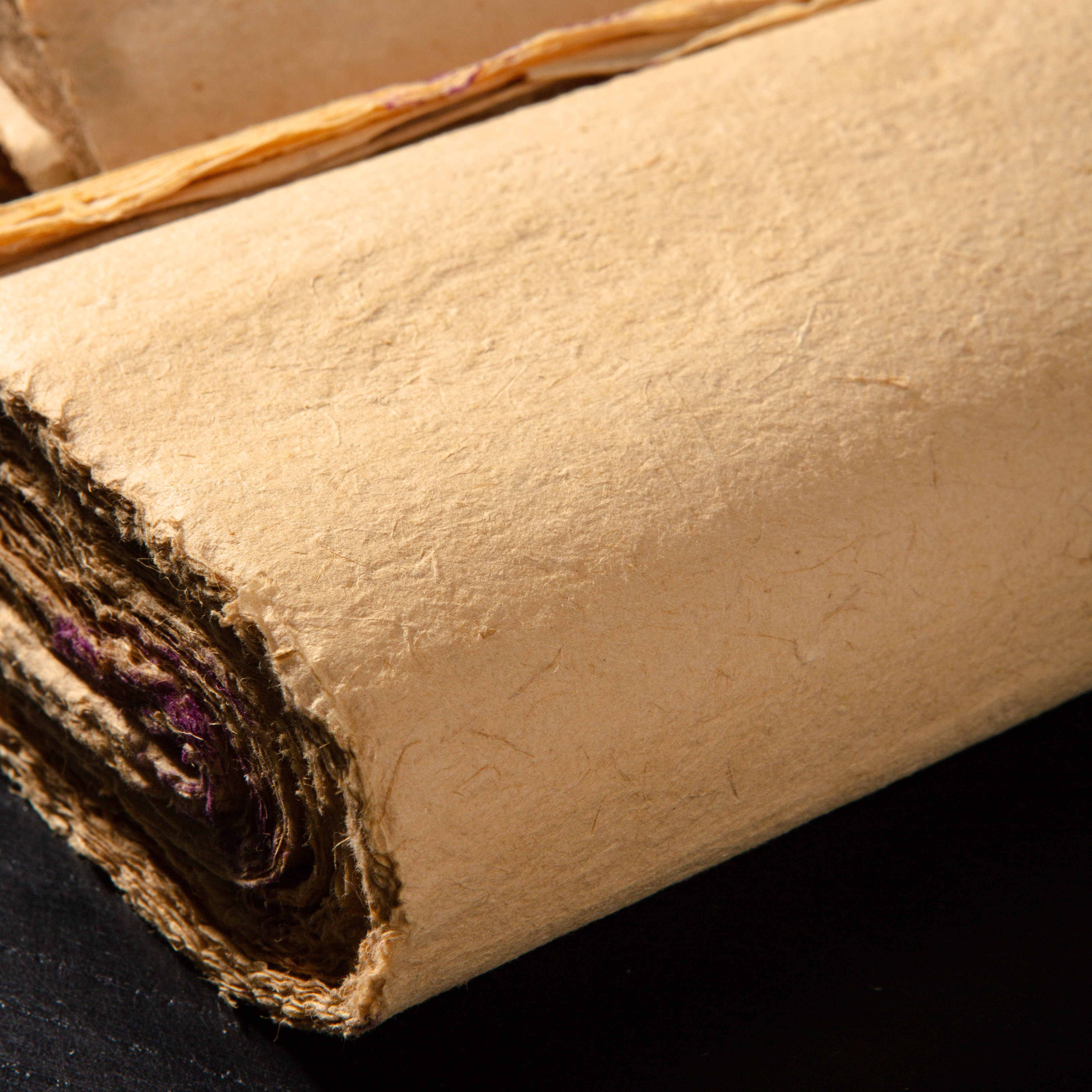 50-60年代合作社生产老竹纸,两卷共191张,此批纸均为古法手工所制,纸质柔软,颜色古朴,帘纹清晰,老纸火气已完全尽失,宜书宜画。