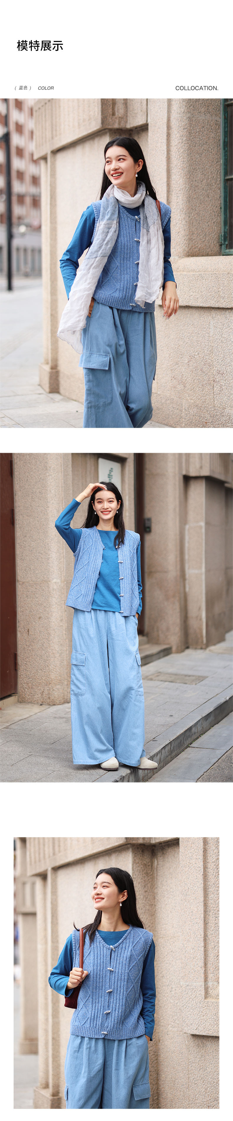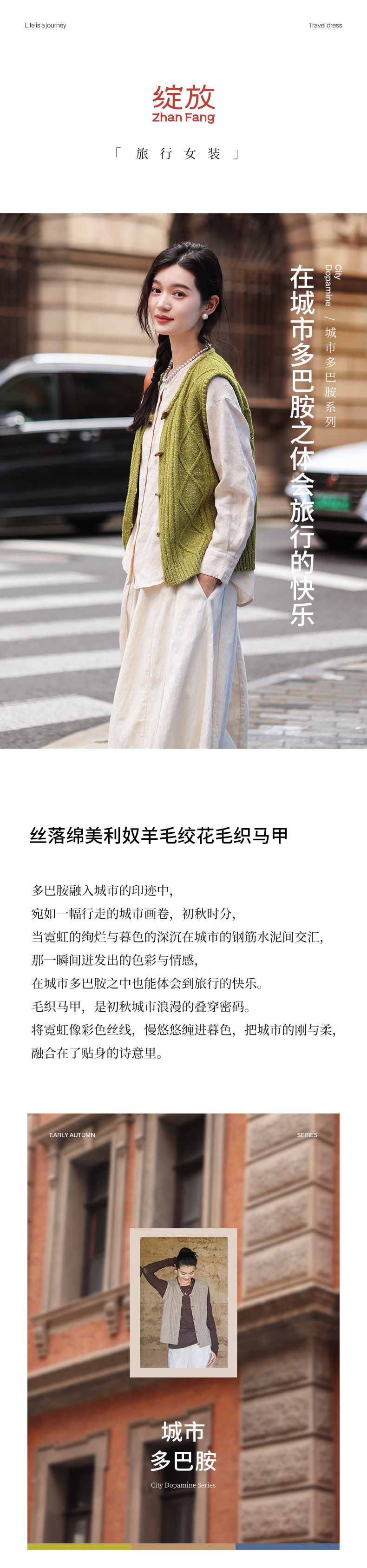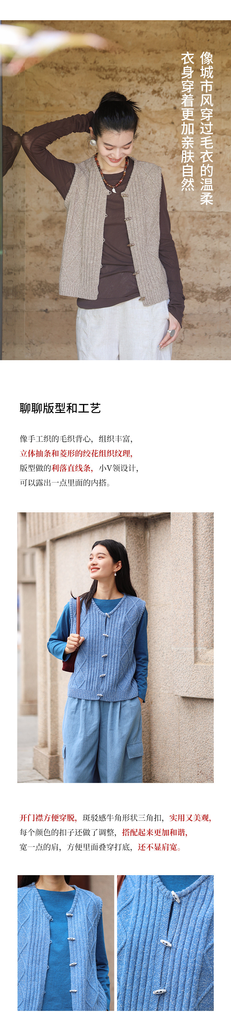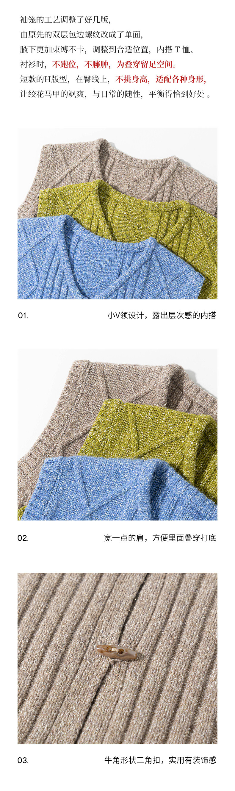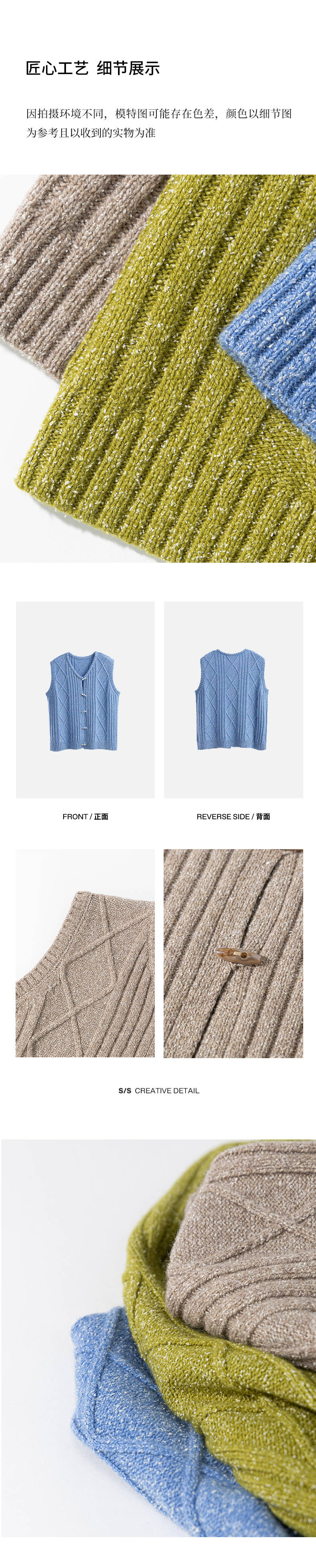 绽放旅行女装482朵/丝落绵美利奴羊毛点子纱绞花毛织马甲外搭叠穿