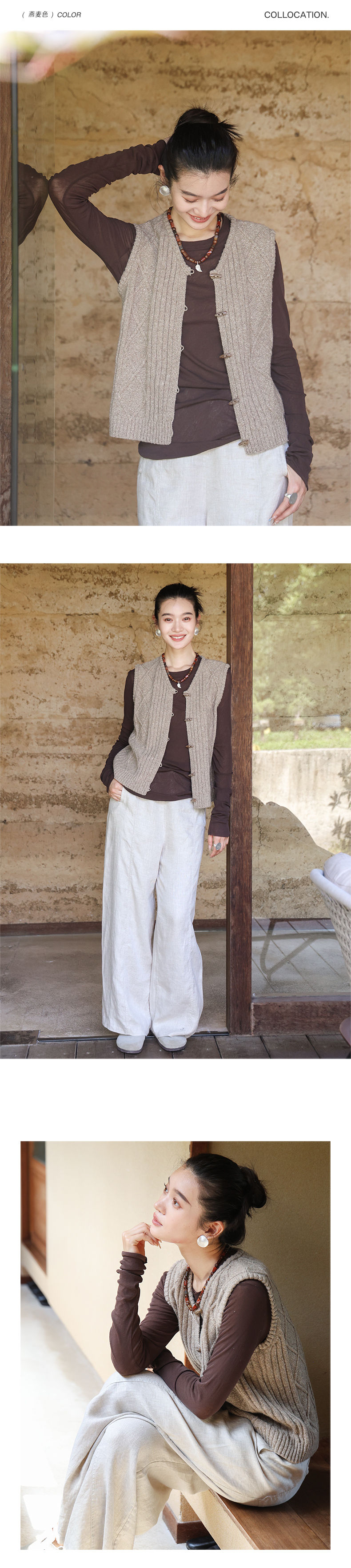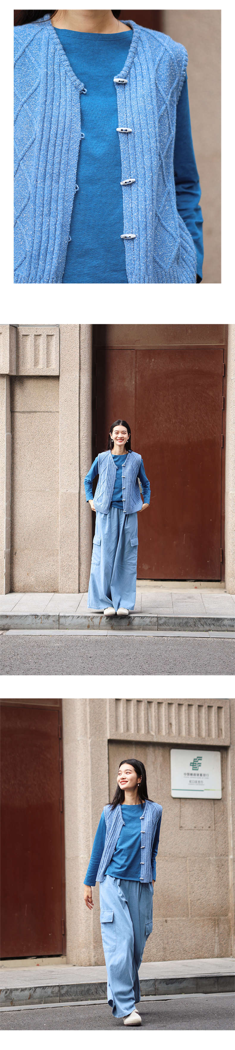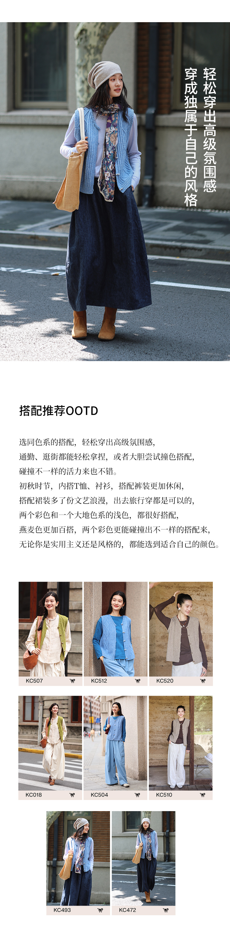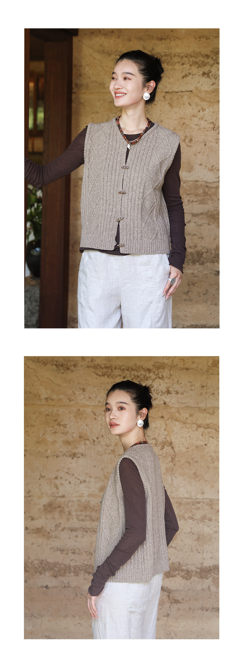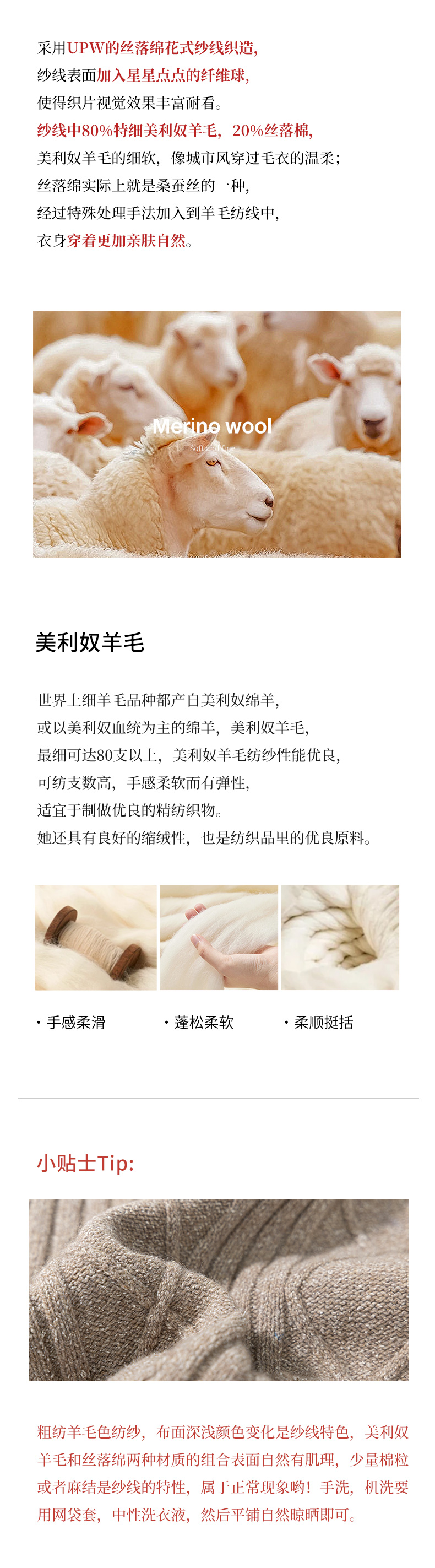 绽放旅行女装482朵/丝落绵美利奴羊毛点子纱绞花毛织马甲外搭叠穿