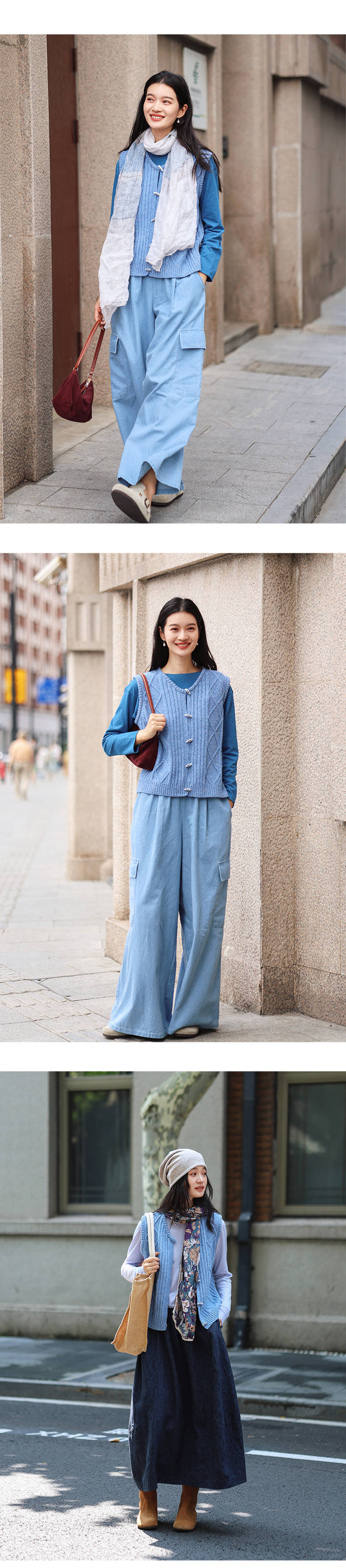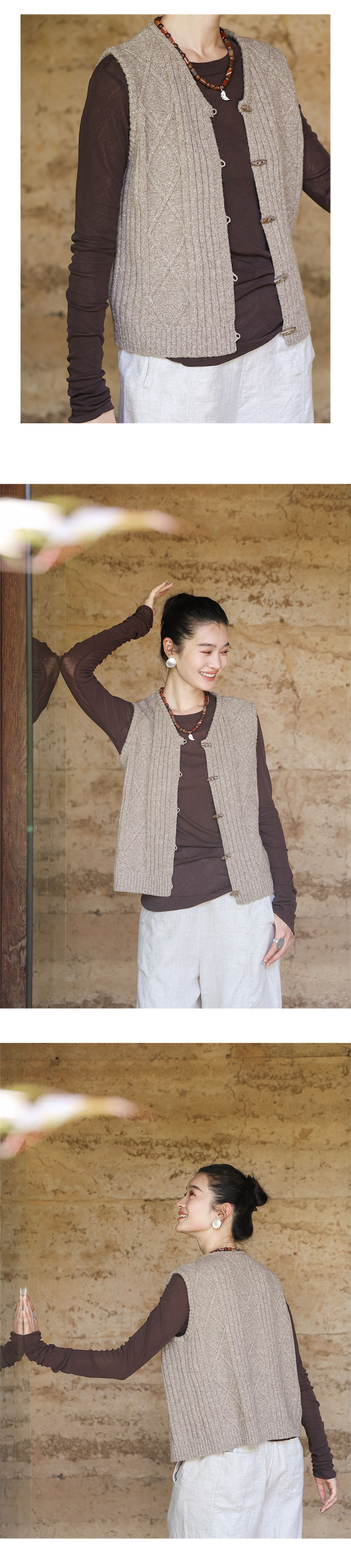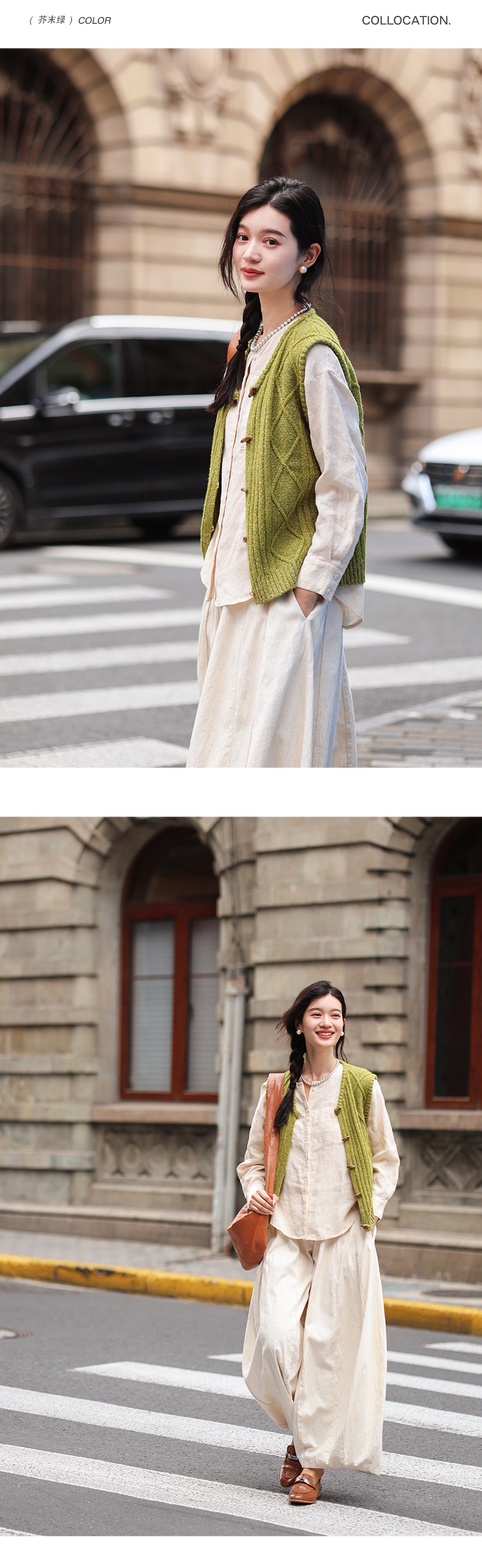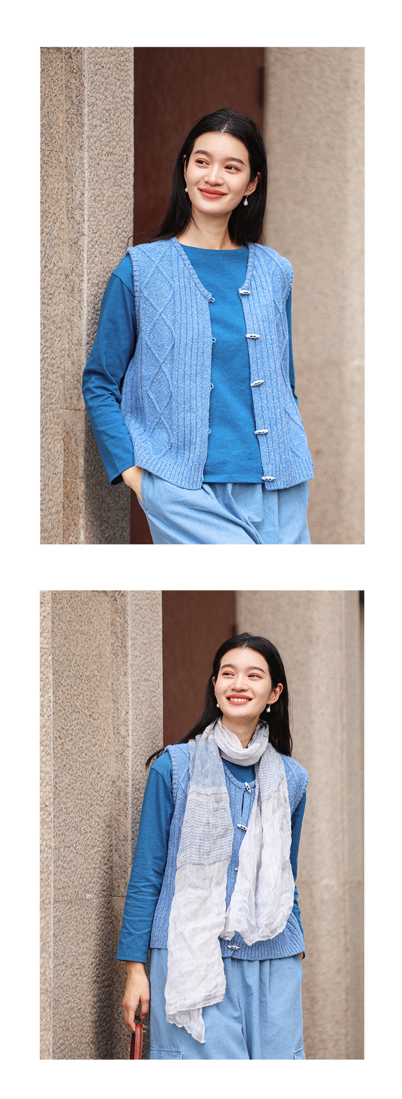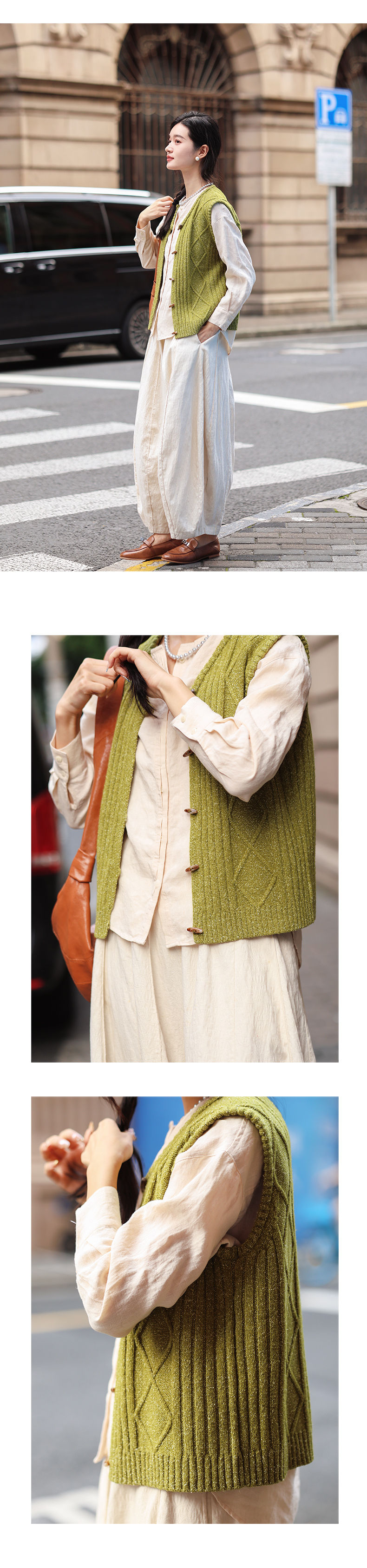 绽放旅行女装482朵/丝落绵美利奴羊毛点子纱绞花毛织马甲外搭叠穿