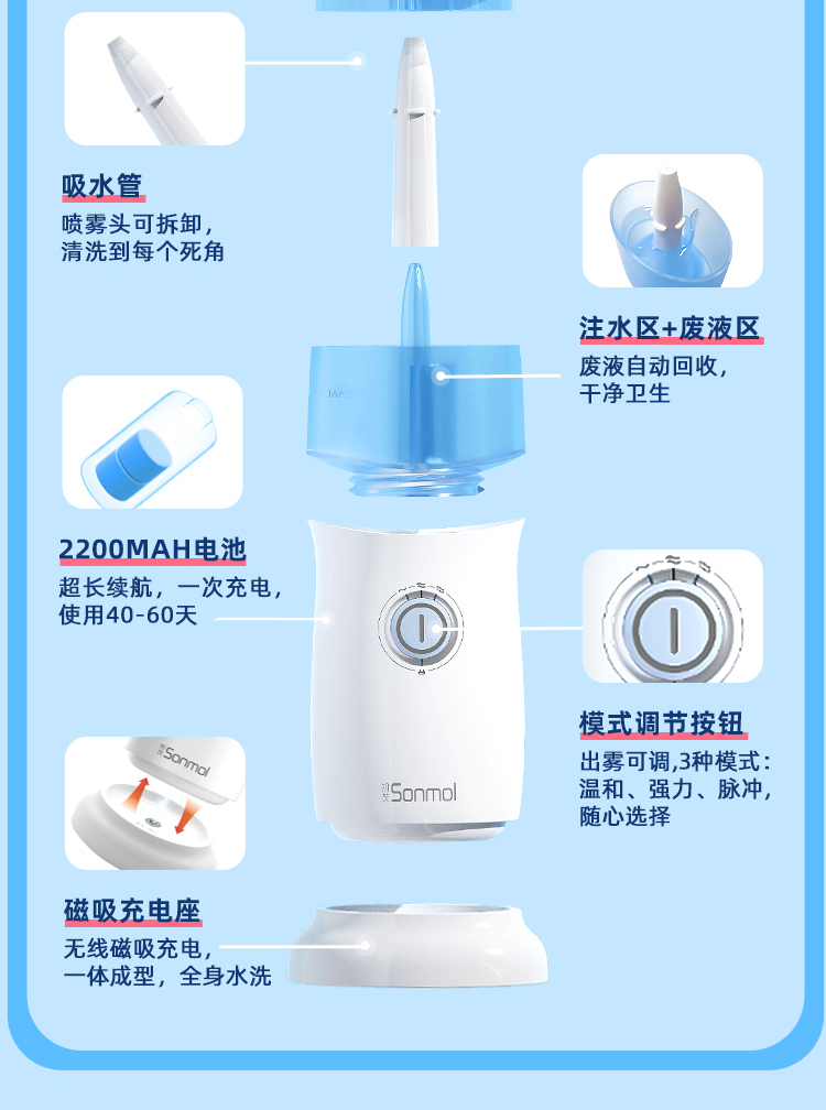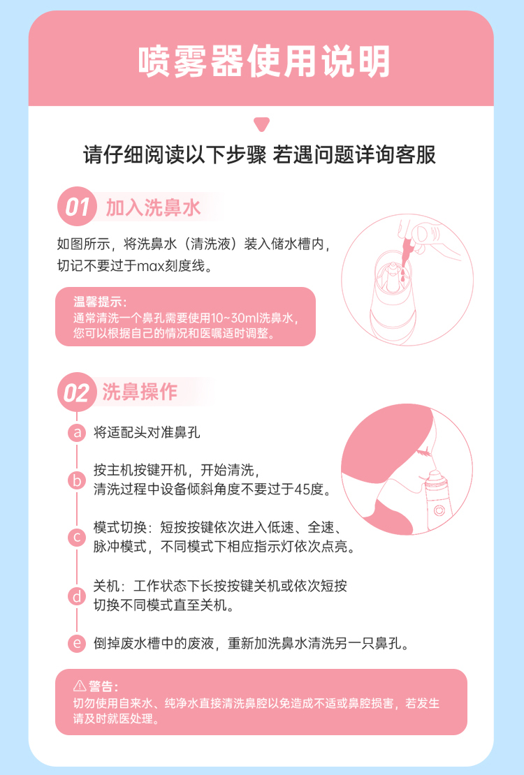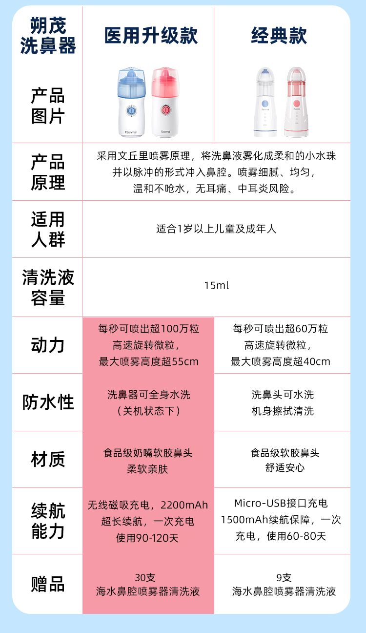 [屁侠推荐]朔茂 升级版/经典款 电动压力喷雾洗鼻器 儿童电动洗鼻器成人 家用鼻子清洗器 配防尘盖