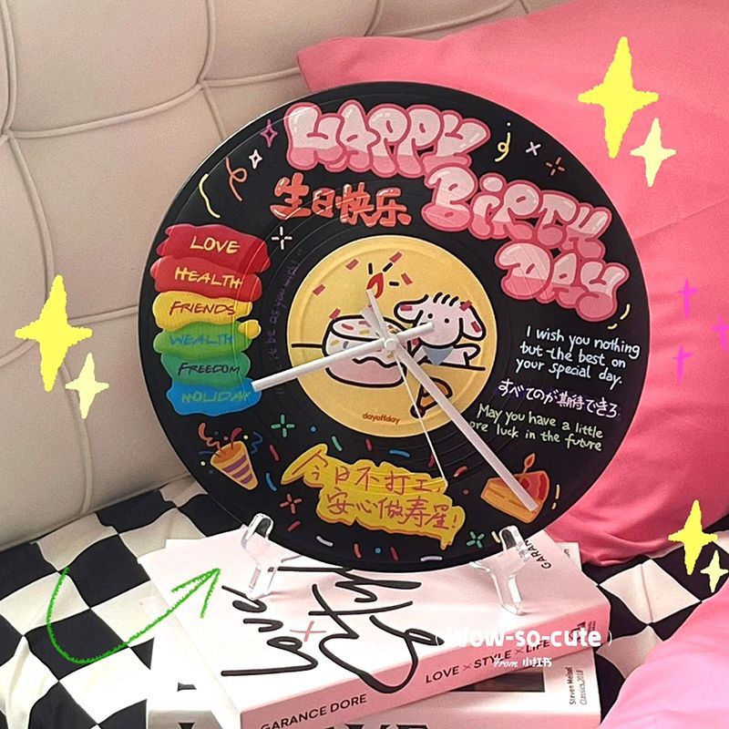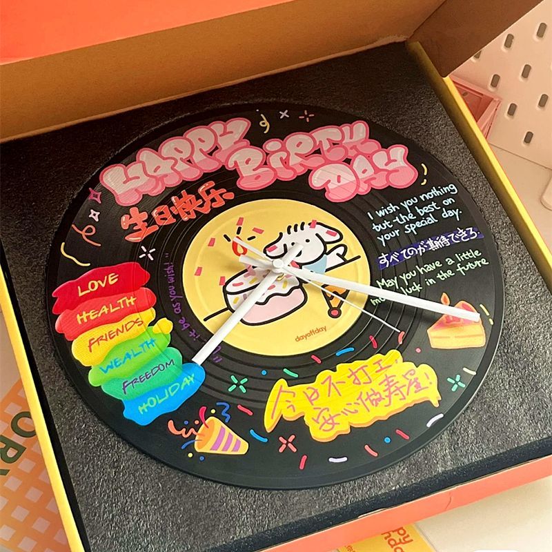 网易云仿真黑胶唱片涂鸦diy定制生日礼物装饰时钟摆件周杰伦碟片