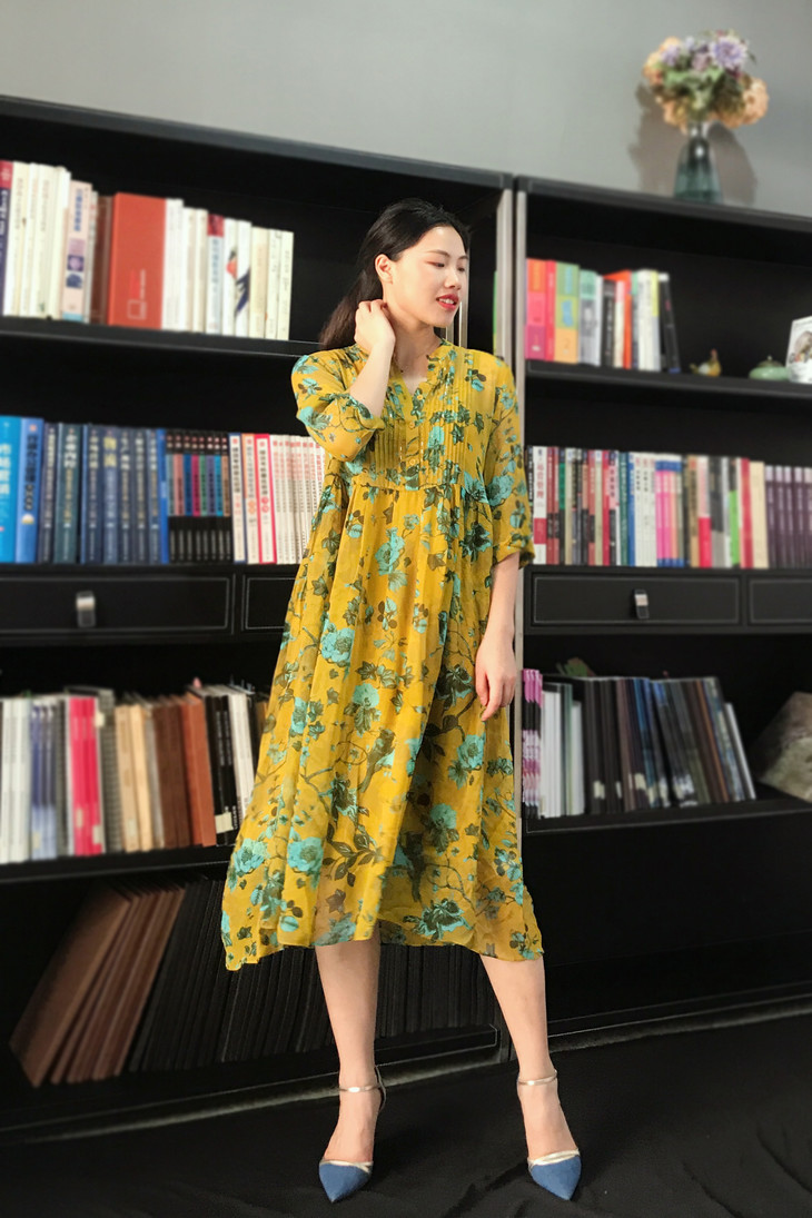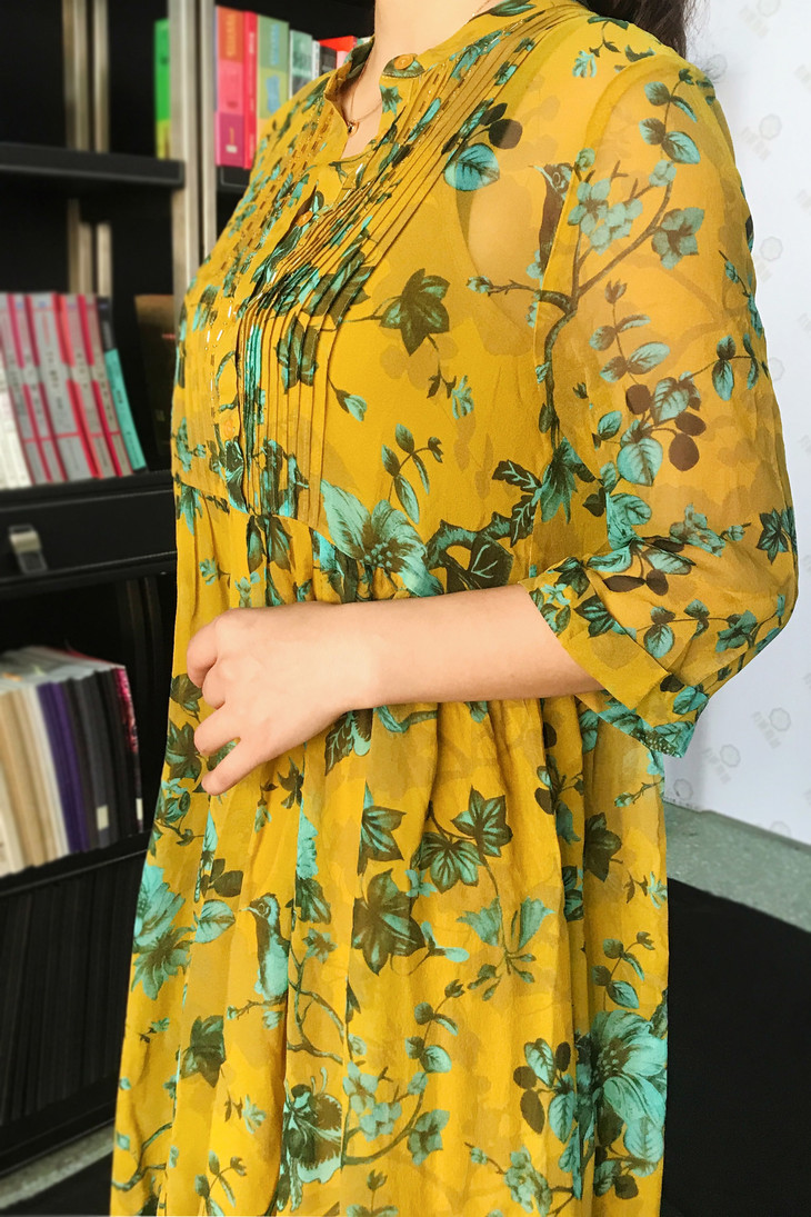 100%桑蚕丝面料,悬垂性佳,轻盈透气