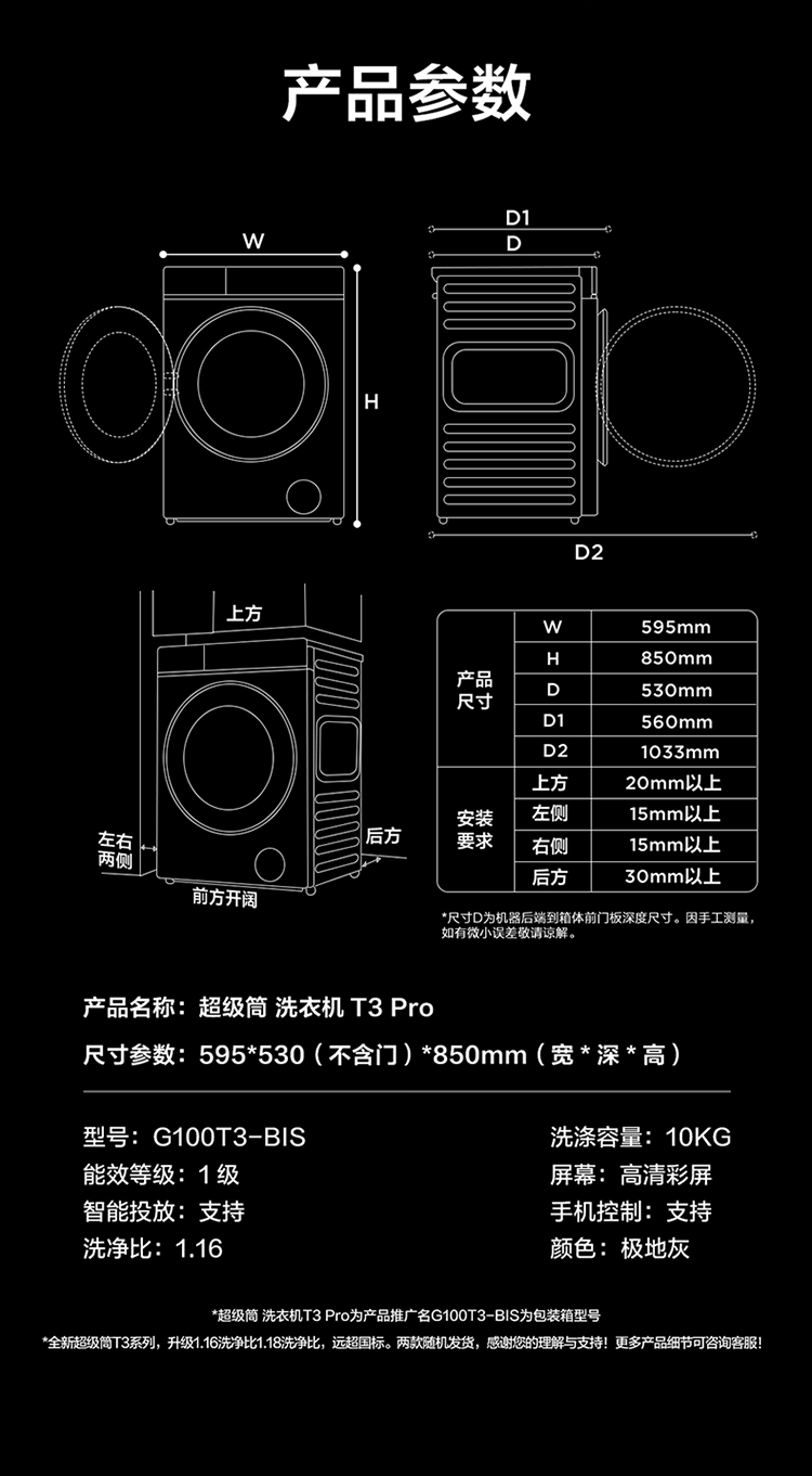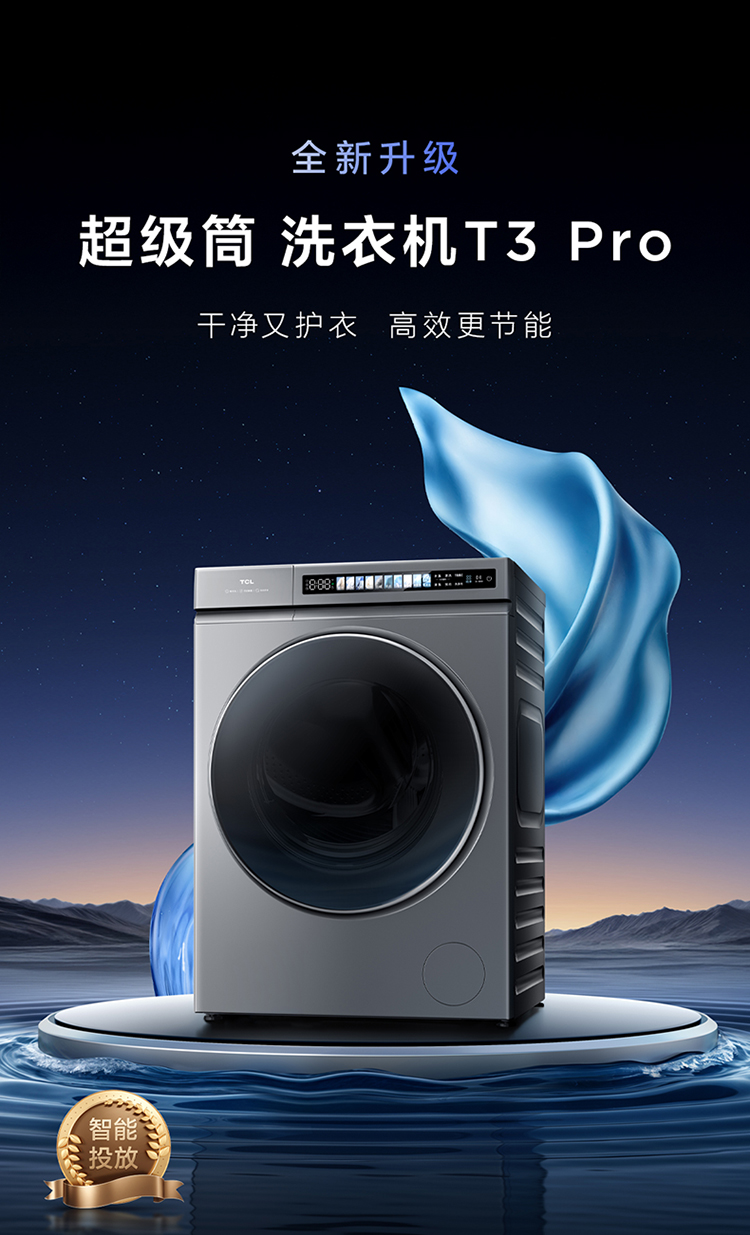 【TCL洗衣机】TCL 10KG超级筒洗衣机T3 Pro 精华洗 智能投放 G100T3-BIS