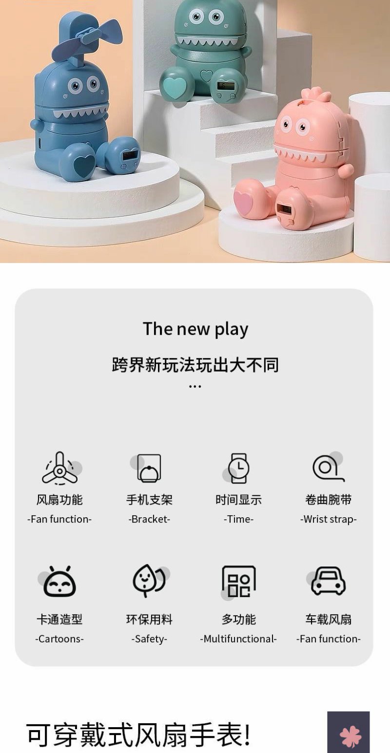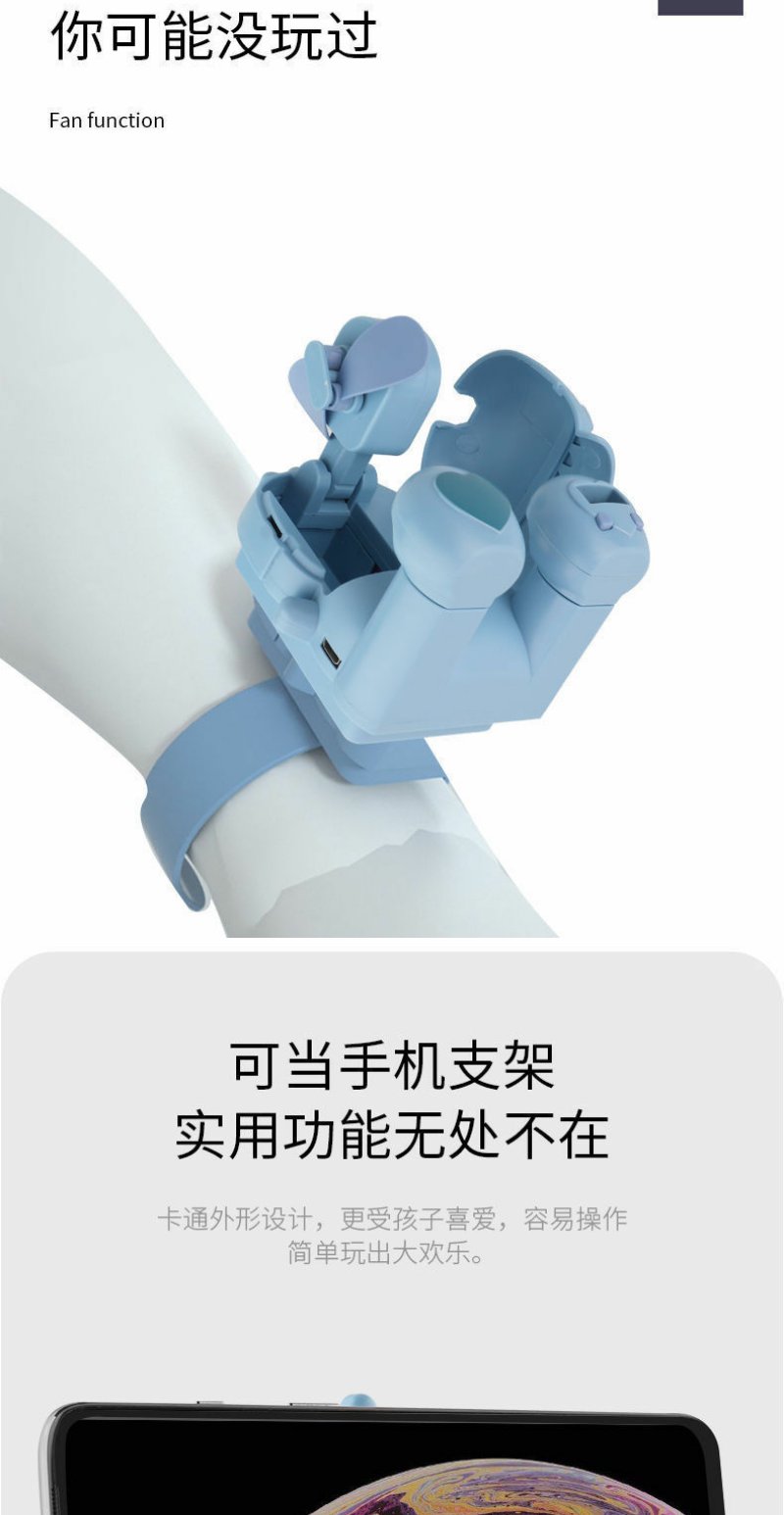 网红抖音USB车载怪兽手表风扇儿童玩具创意迷你手腕风扇手机支架