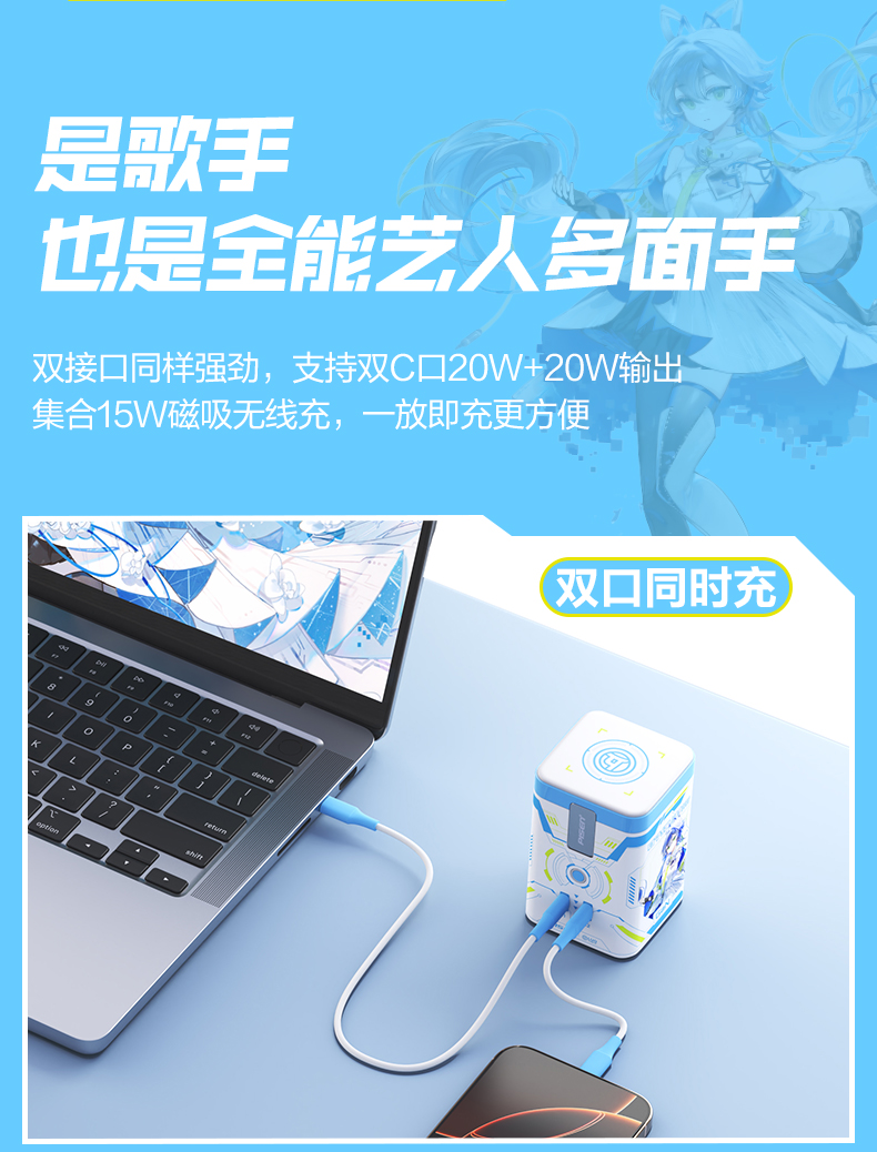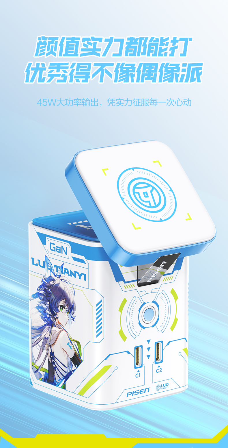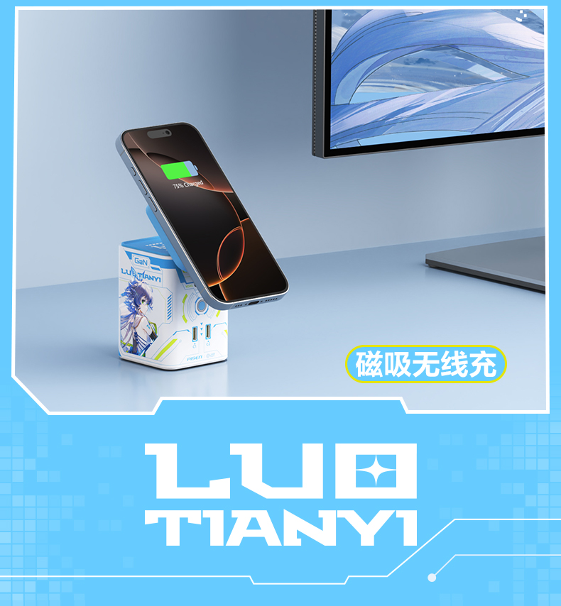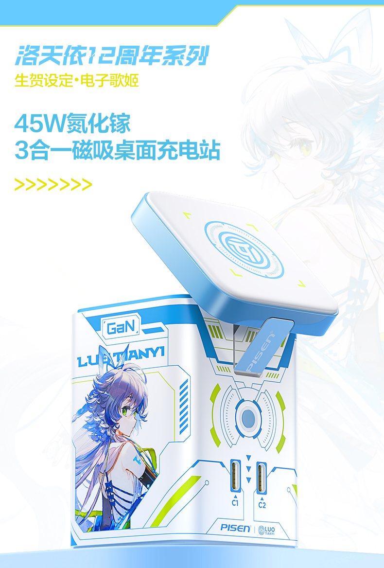 品胜 45W集合充电站套装(洛天依联名版) 磁吸无线充插座套装 45W华为超级快充