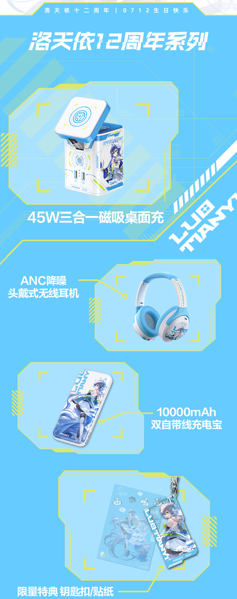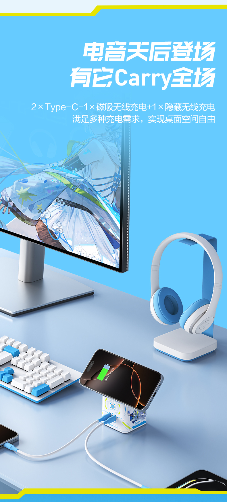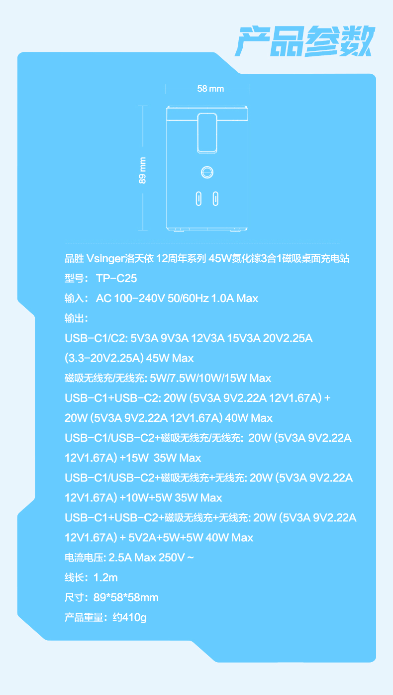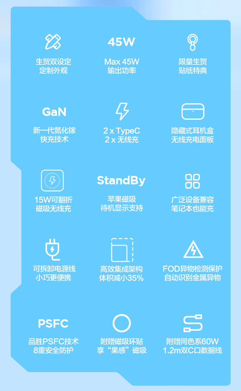 品胜 45W集合充电站套装(洛天依联名版) 磁吸无线充插座套装 45W华为超级快充