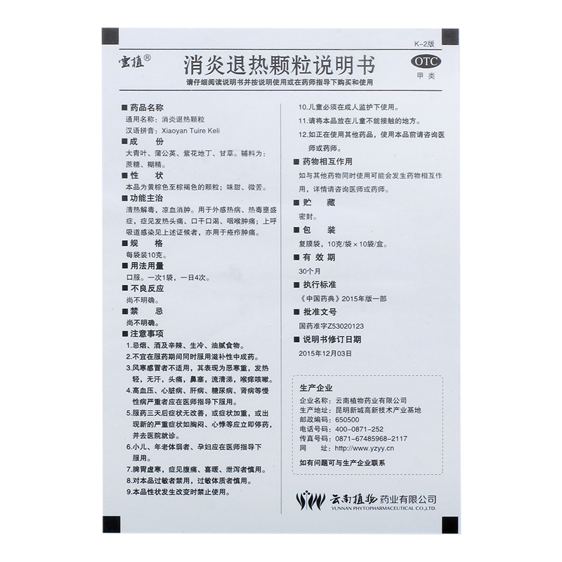 云植 消炎退热颗粒 10g*10袋/盒清热解毒凉血消肿外感热病咽喉痛