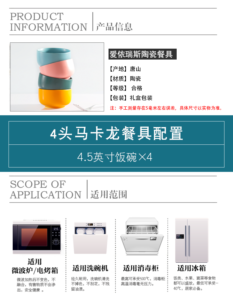产品规格:4.5英寸饭碗4个。