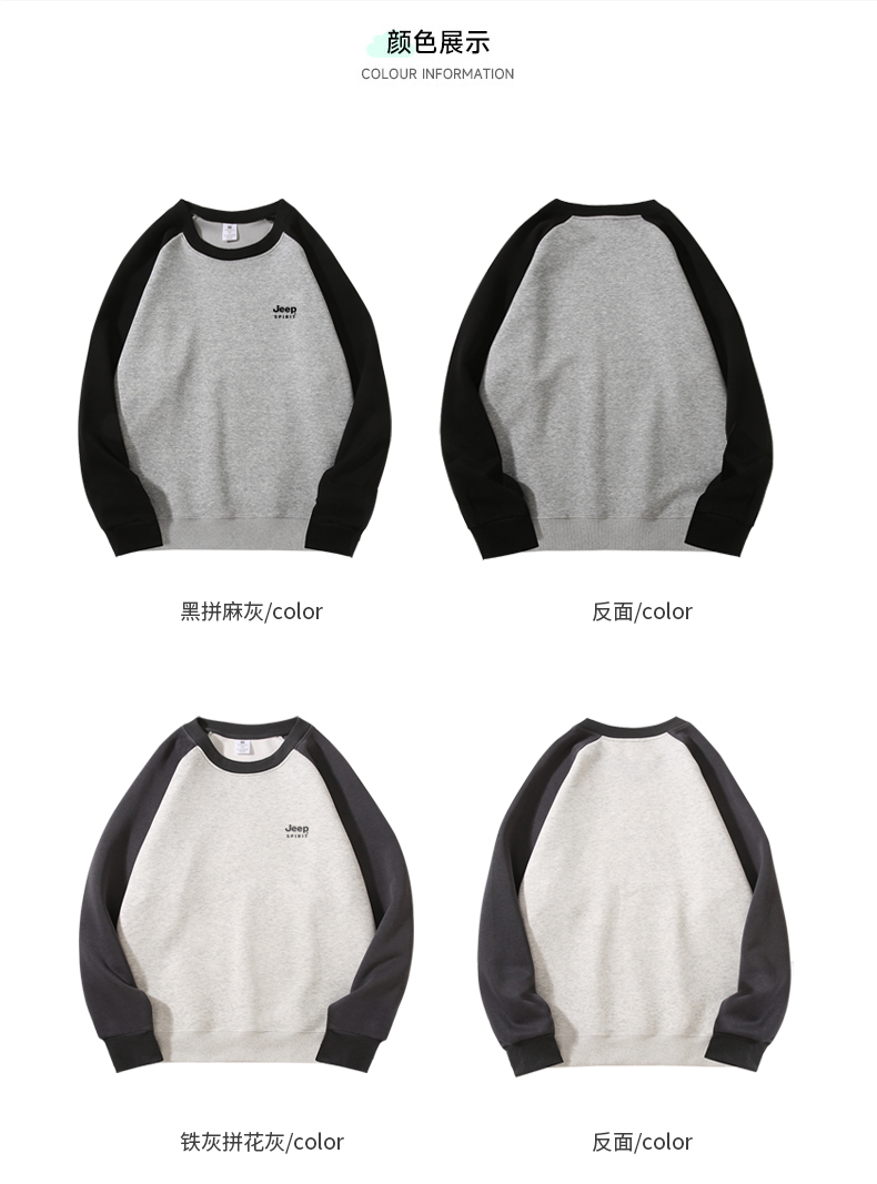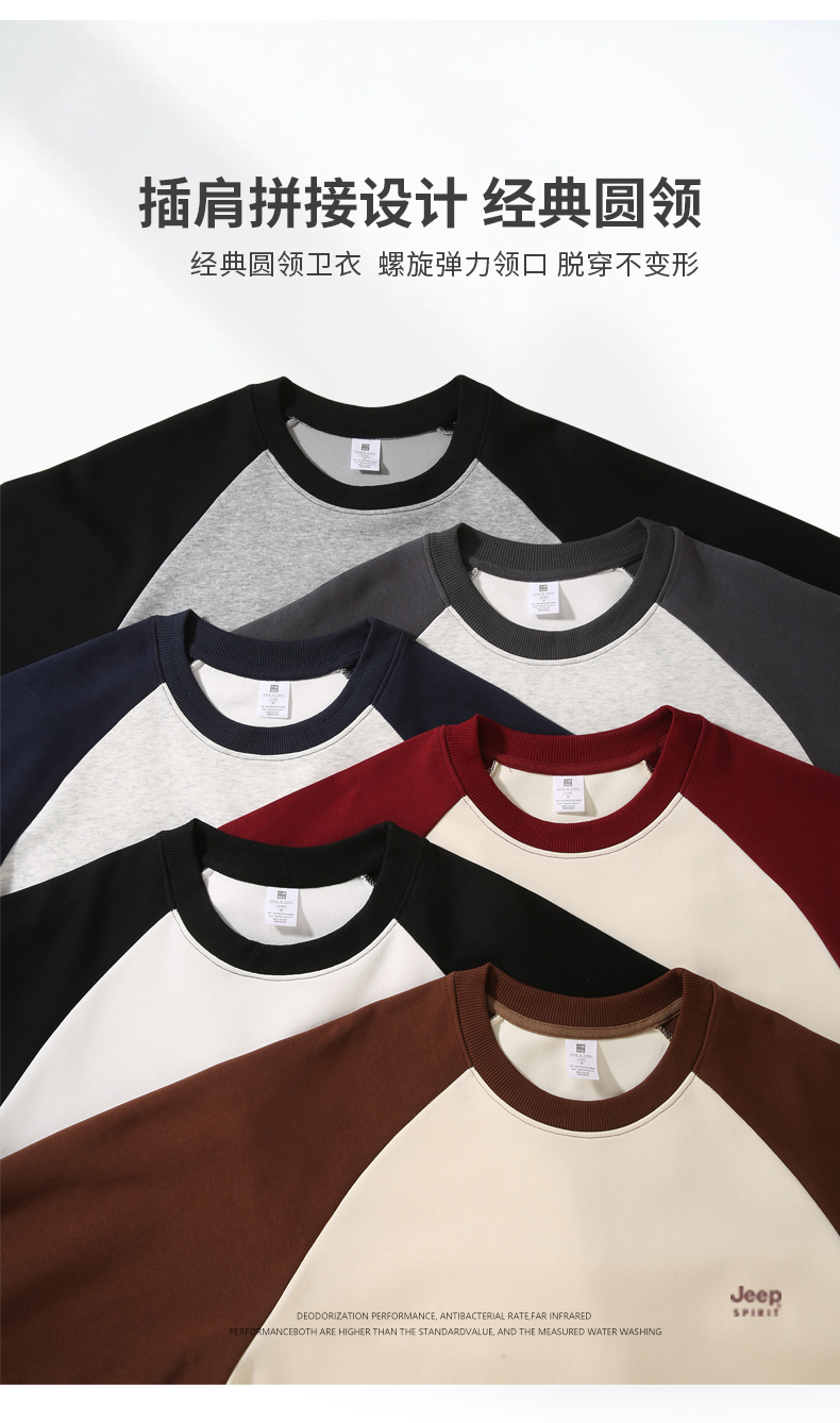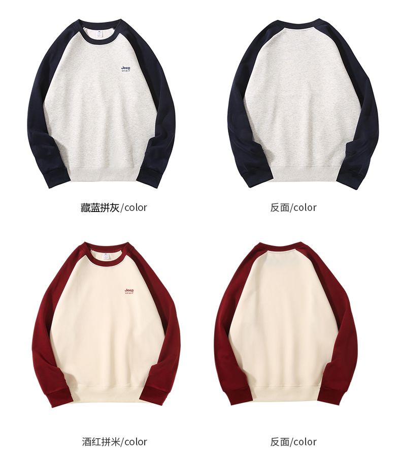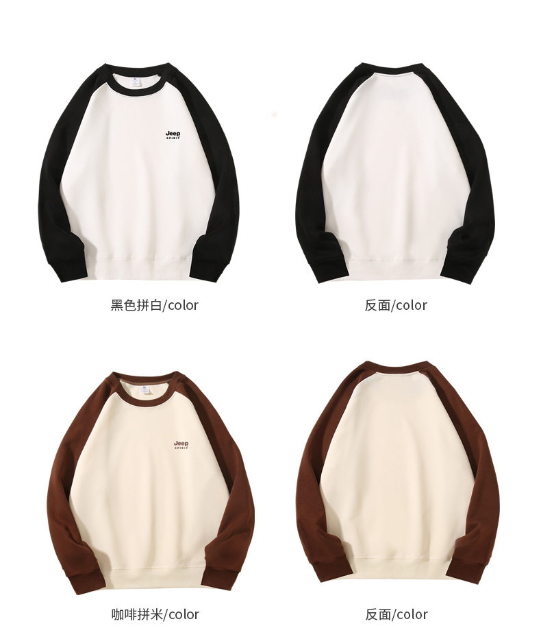 新热卖!JEEP SPIRIT【刺绣拼色卫衣 】男女同款 宽松不紧绷 休闲时尚显瘦