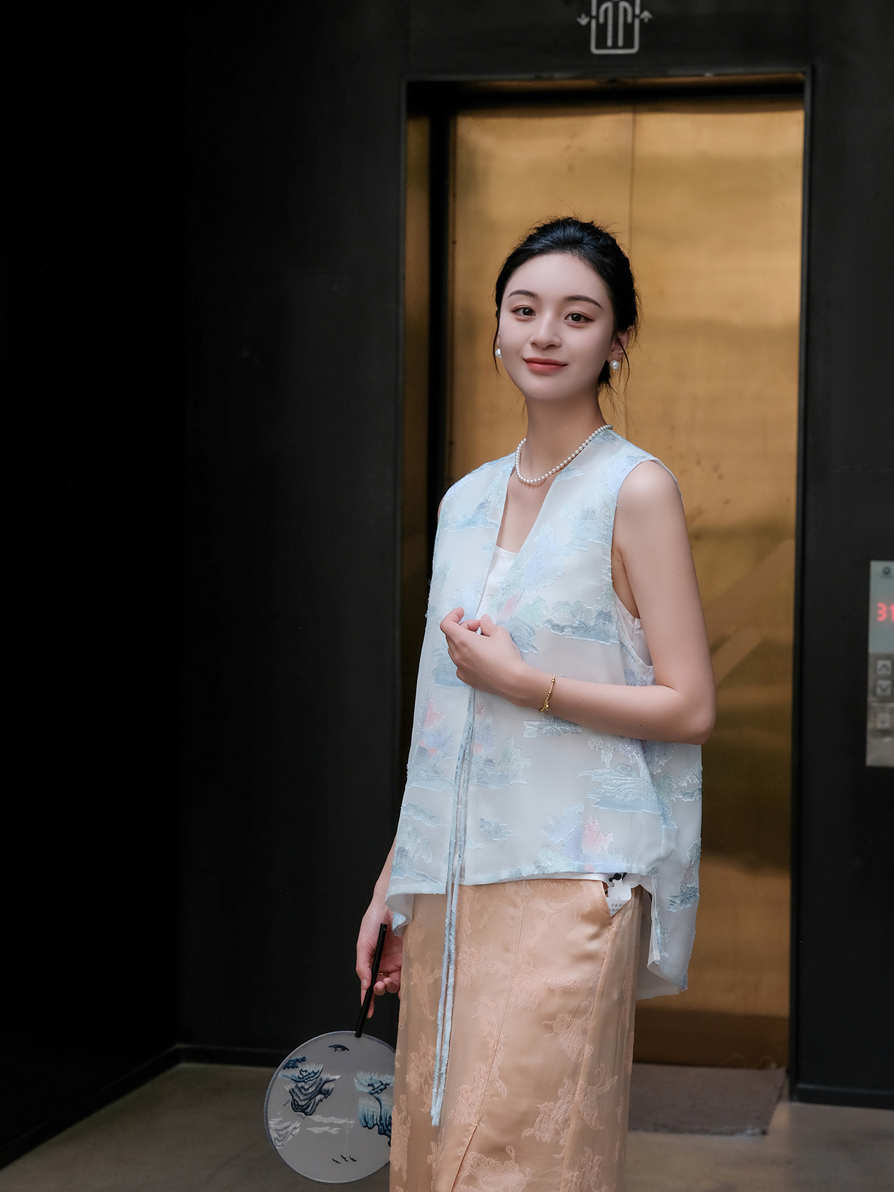 盛唐牡丹 |真丝雪纺剪花纱系带马甲