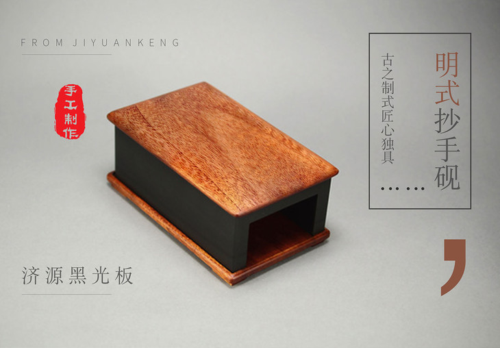 明式抄手砚丨 匠人手造歙砚济源黑光板天地盖木盒 收藏送礼文房四宝