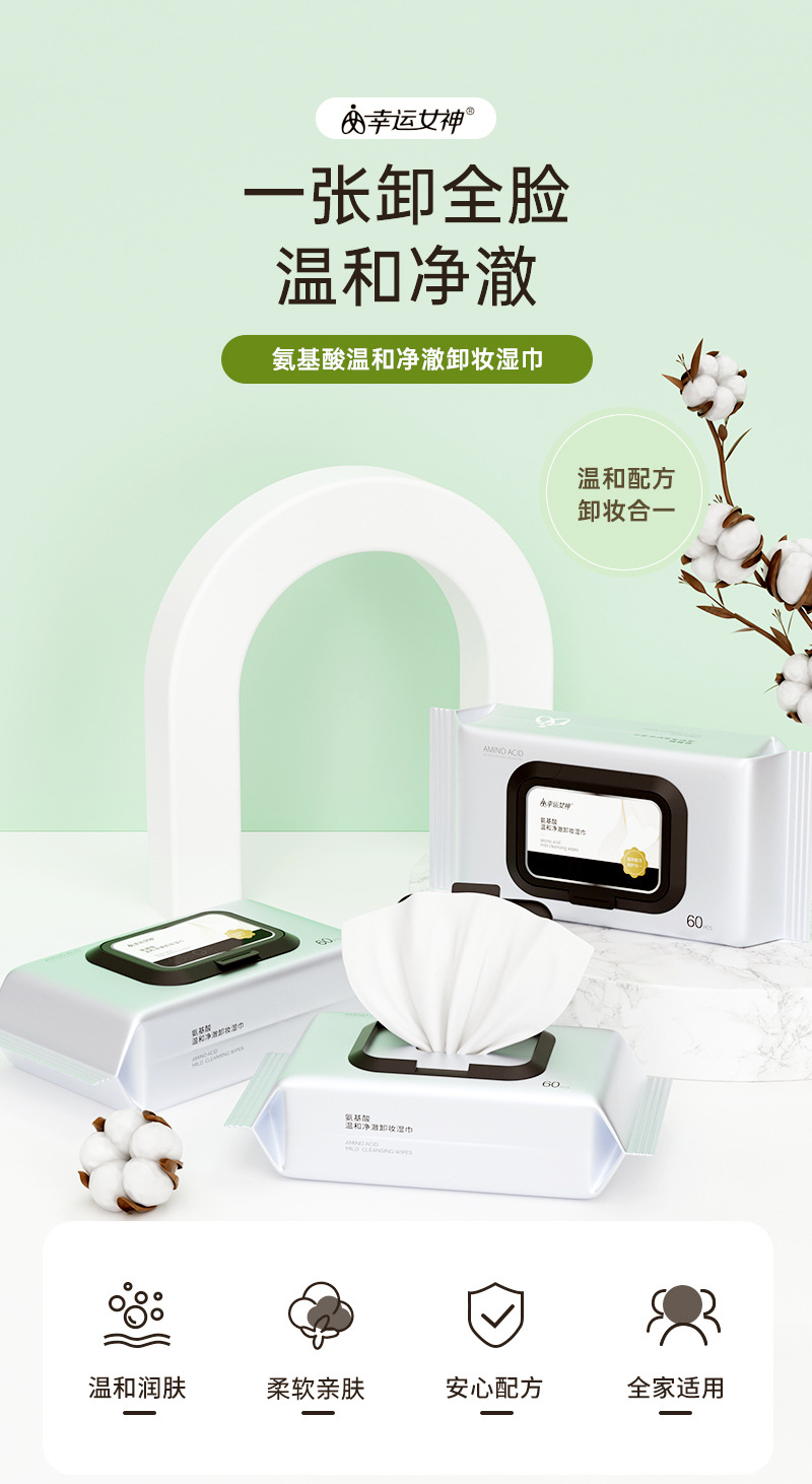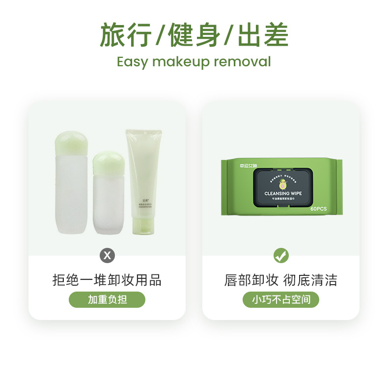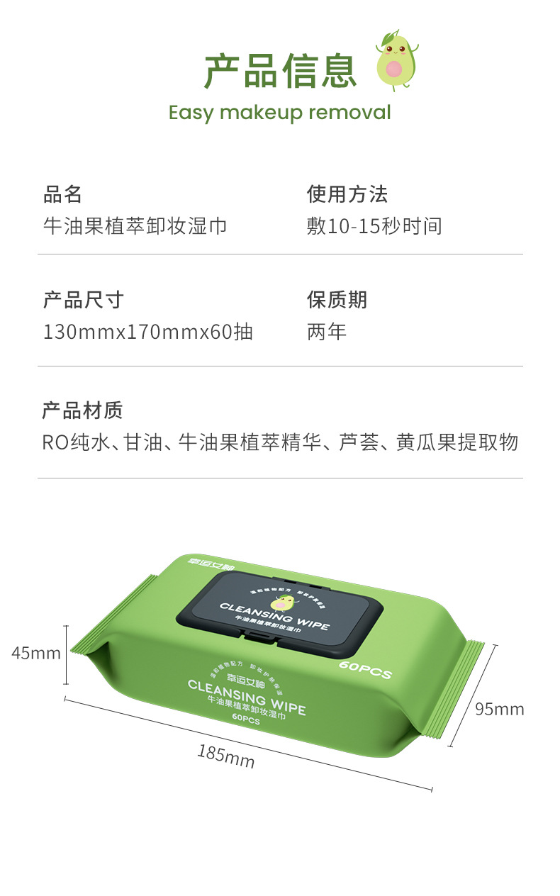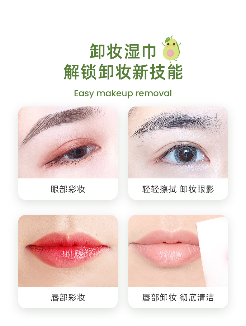 60片牛油果卸妆湿巾一次性面部温和清洁免洗卸妆巾便携洁面洗脸巾