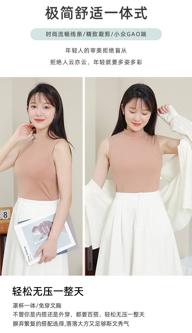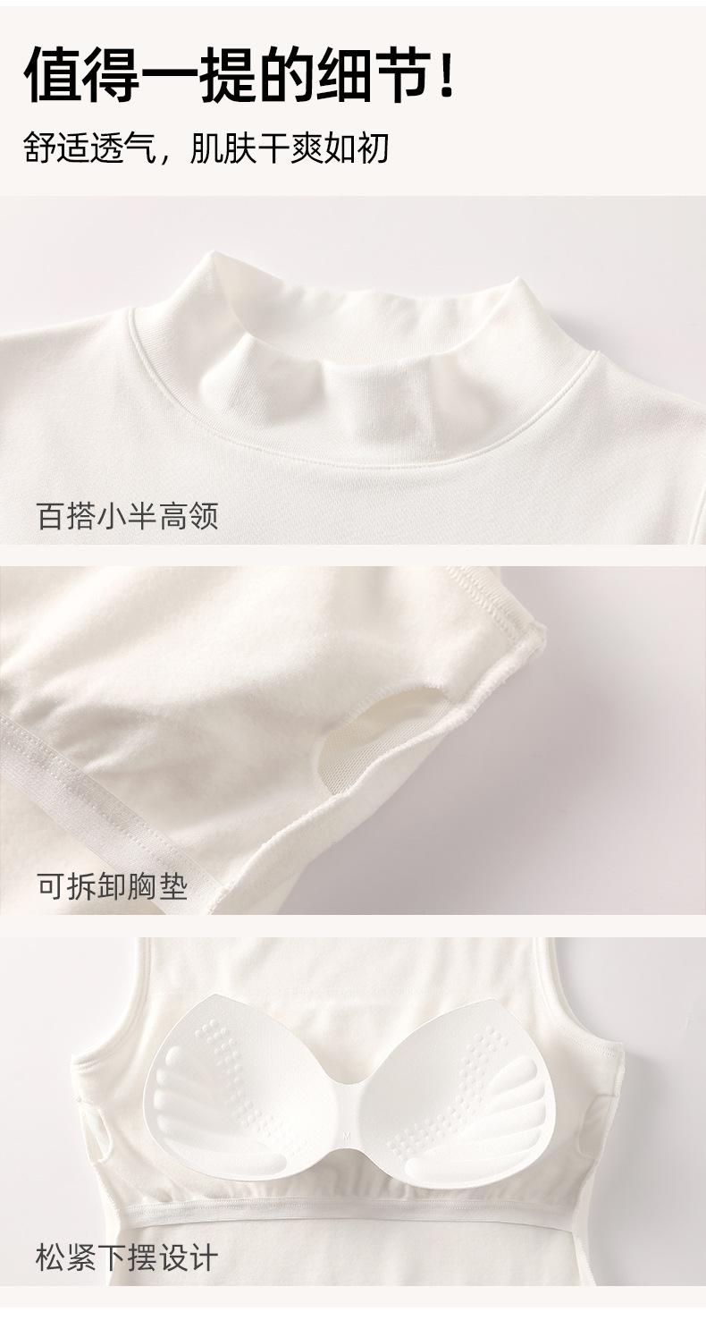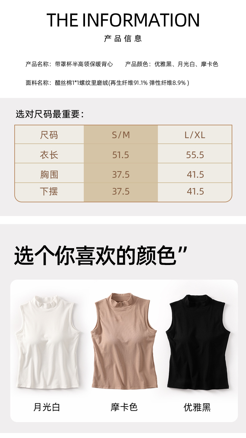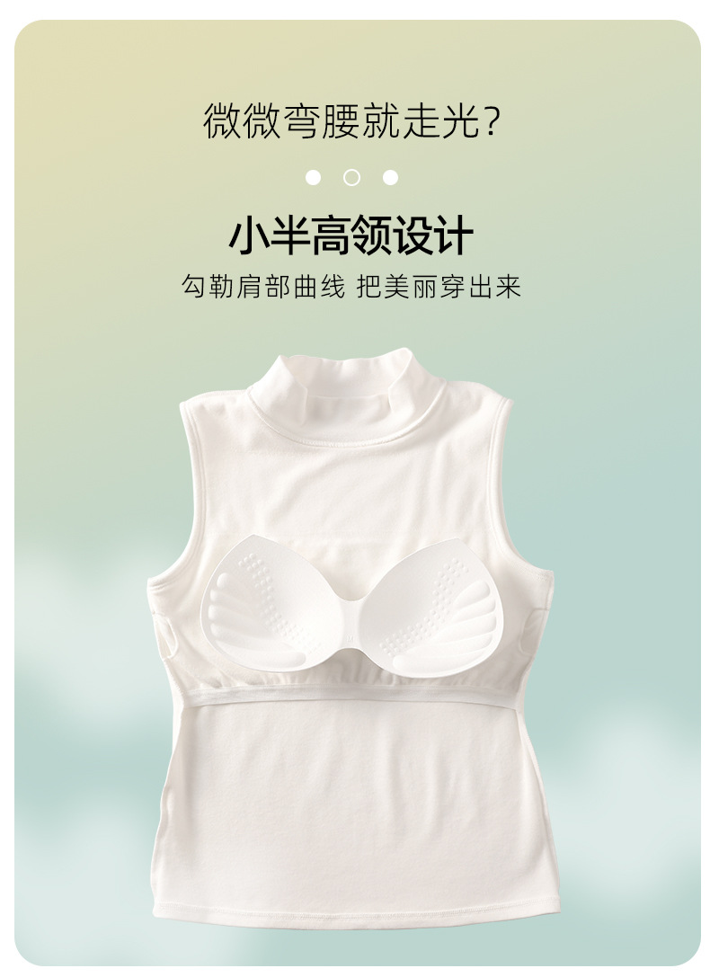 【轻松无压一整天!带胸垫保暖背心】罩杯一体,免穿文胸,舒适/聚拢/防震/防走光/不跑杯,扔掉Bra无包裹,内置杯垫不尴尬,加绒加厚内搭半高领无袖家居服,高级可外穿马甲女L