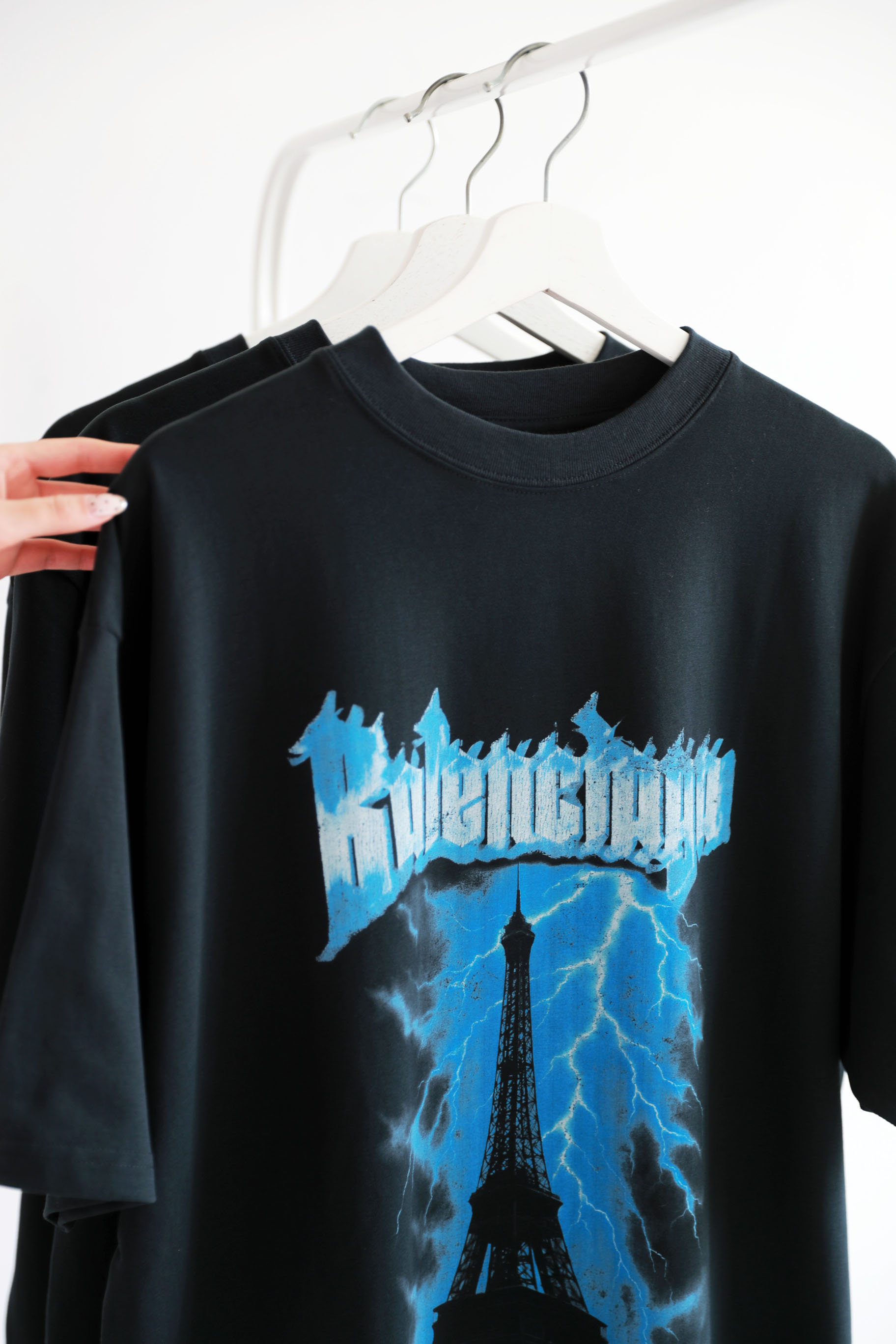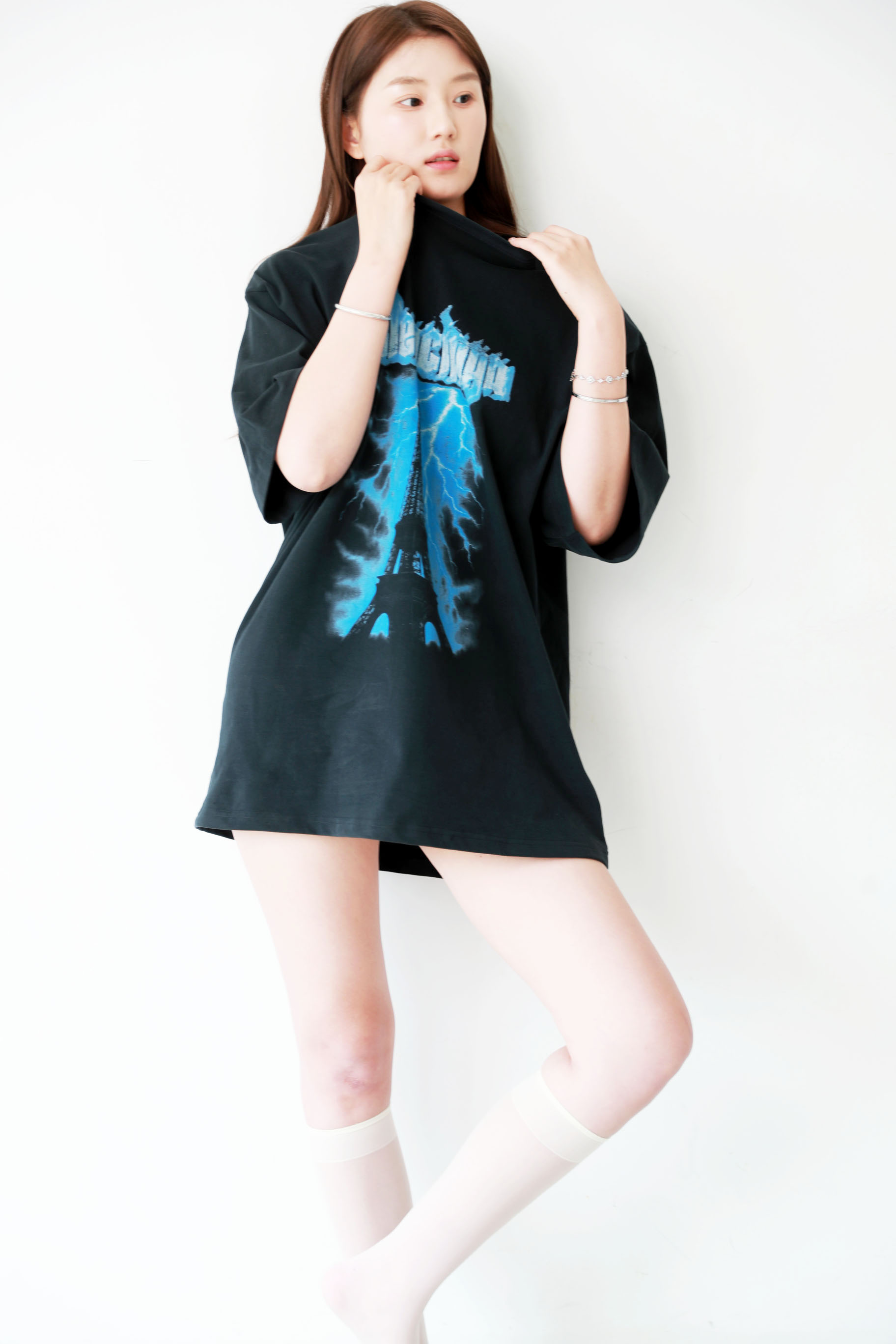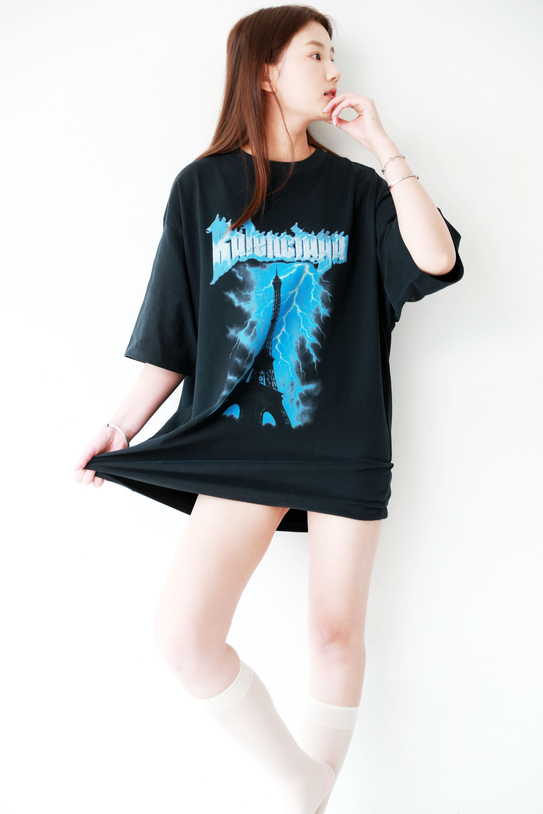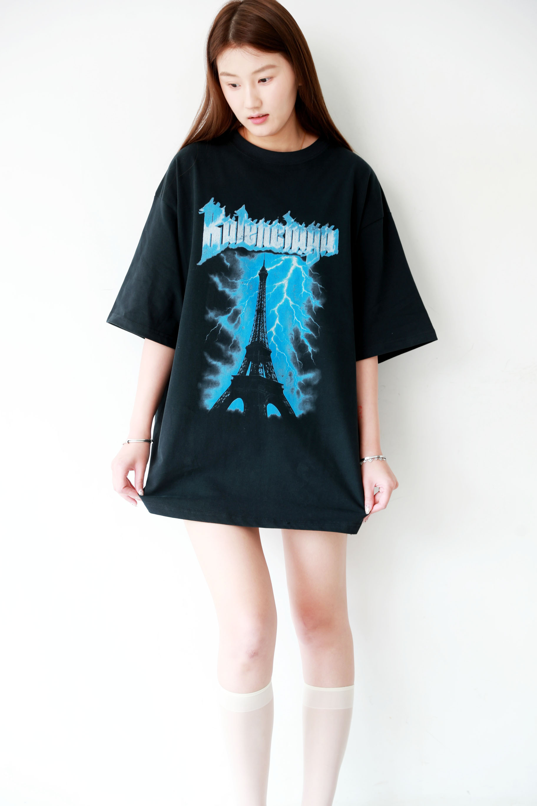 高街复古印花tee,上身真的好帅。胸前大印花宽松情侣t恤E040858