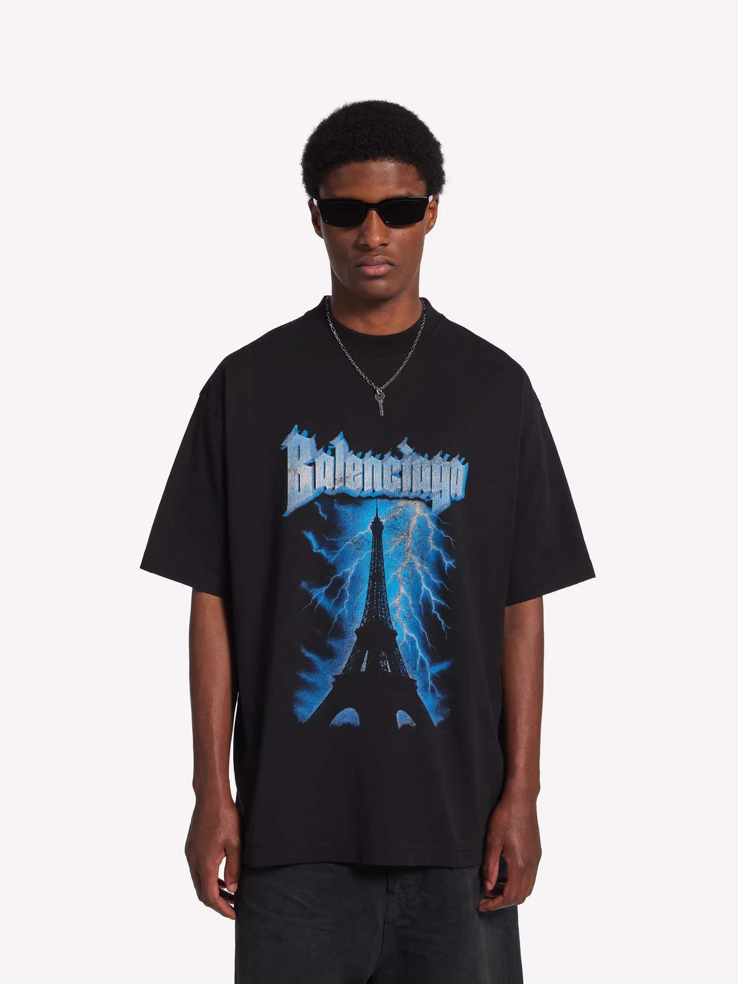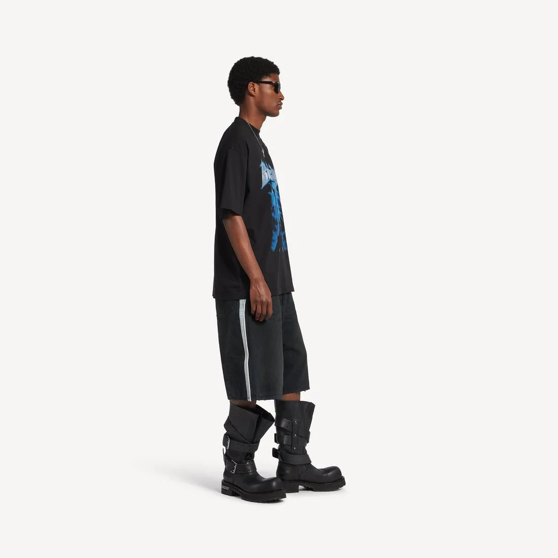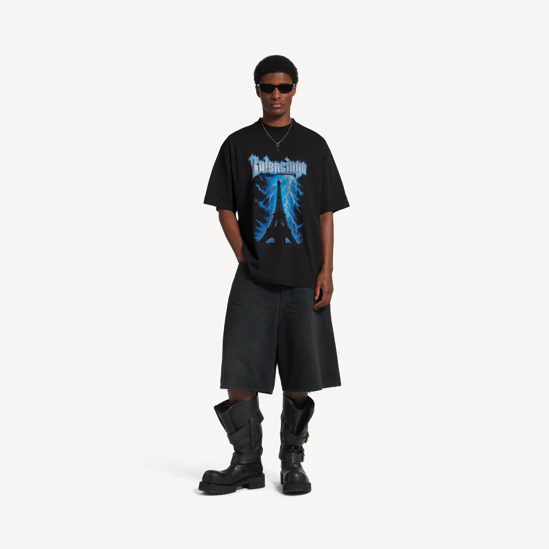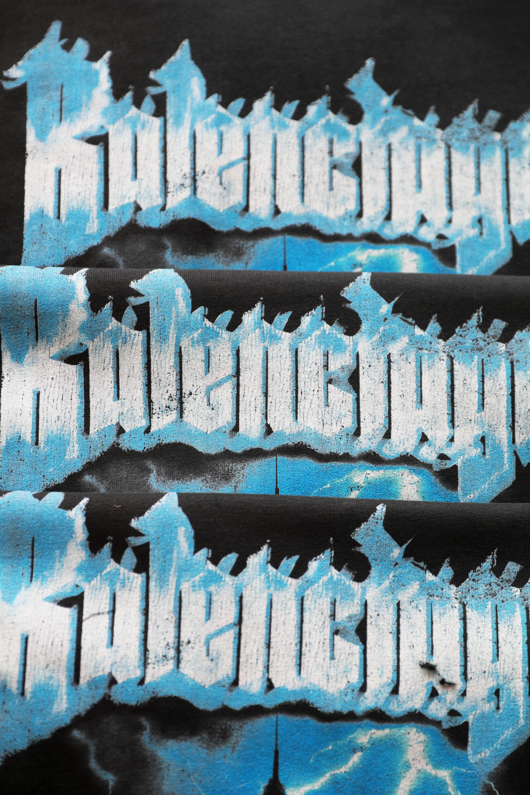 高街复古印花tee,上身真的好帅。胸前大印花宽松情侣t恤E040858