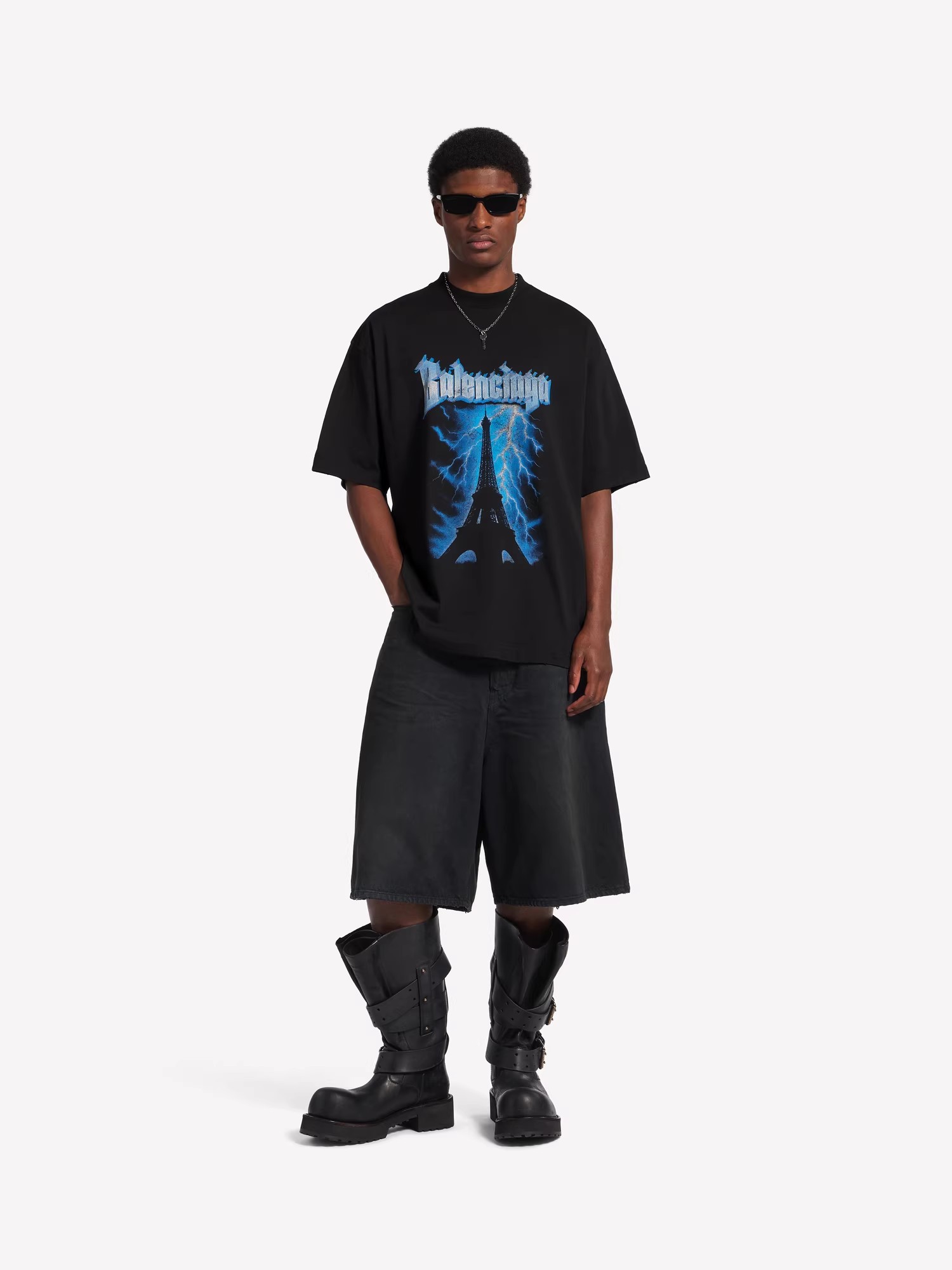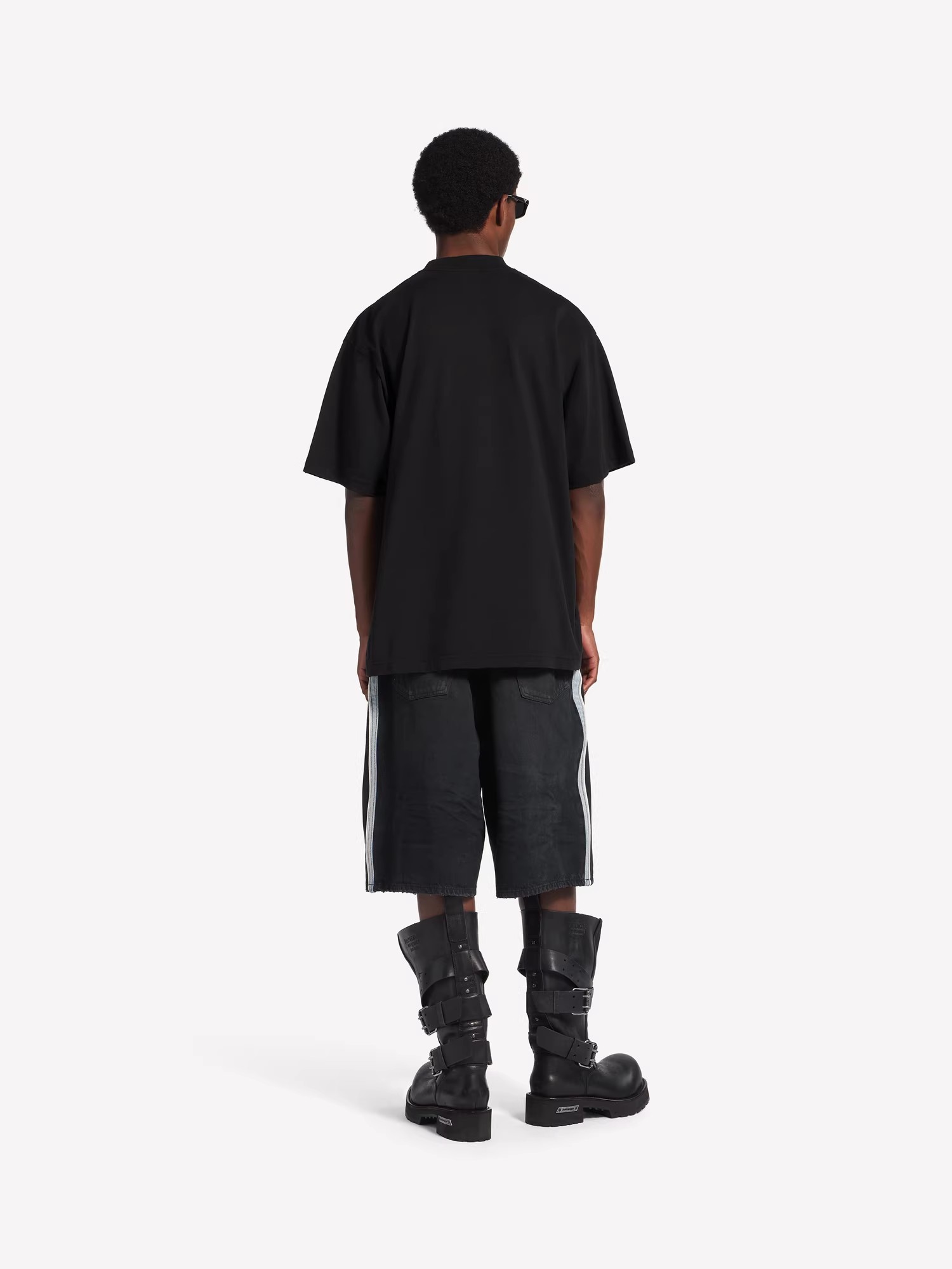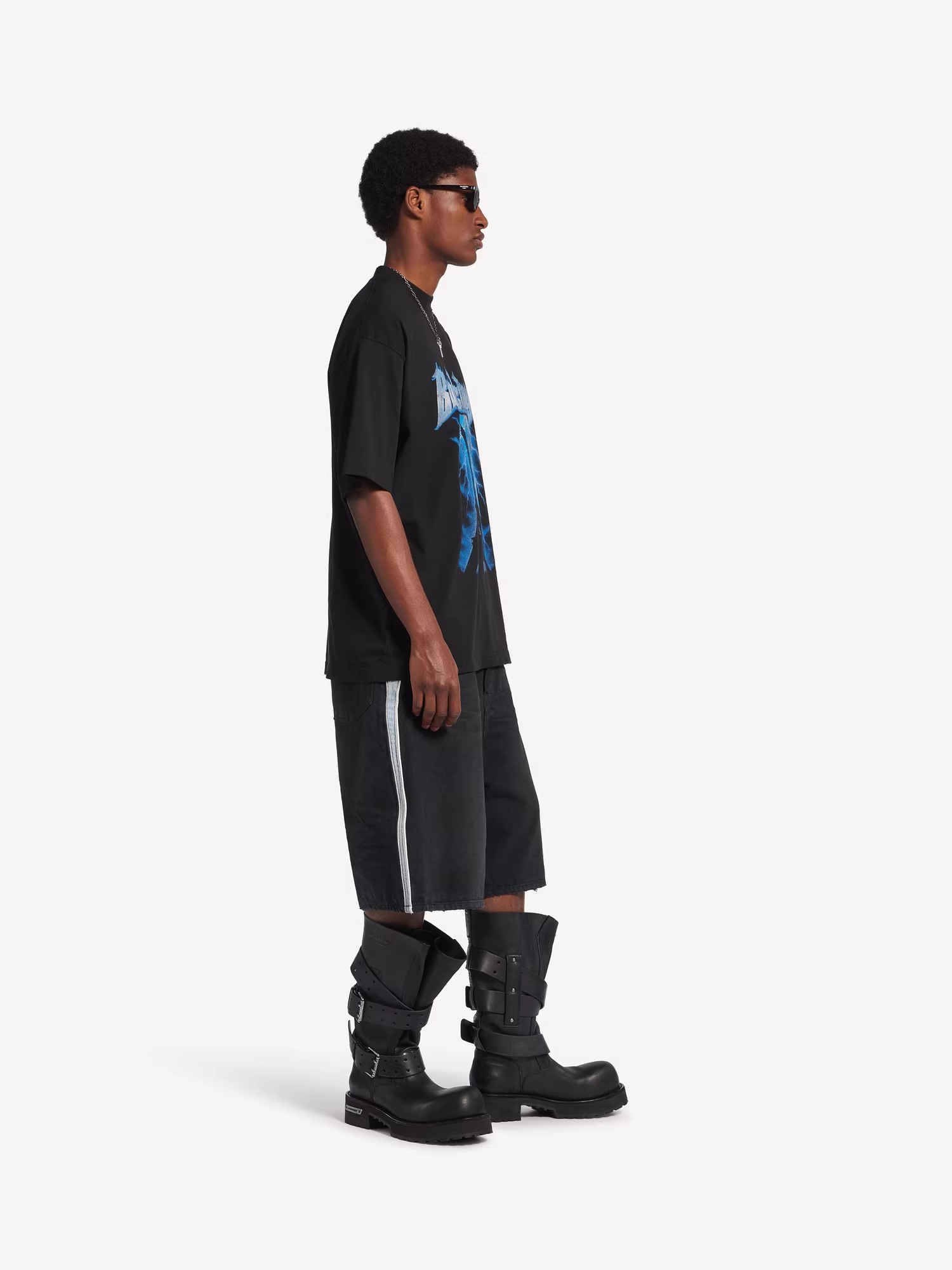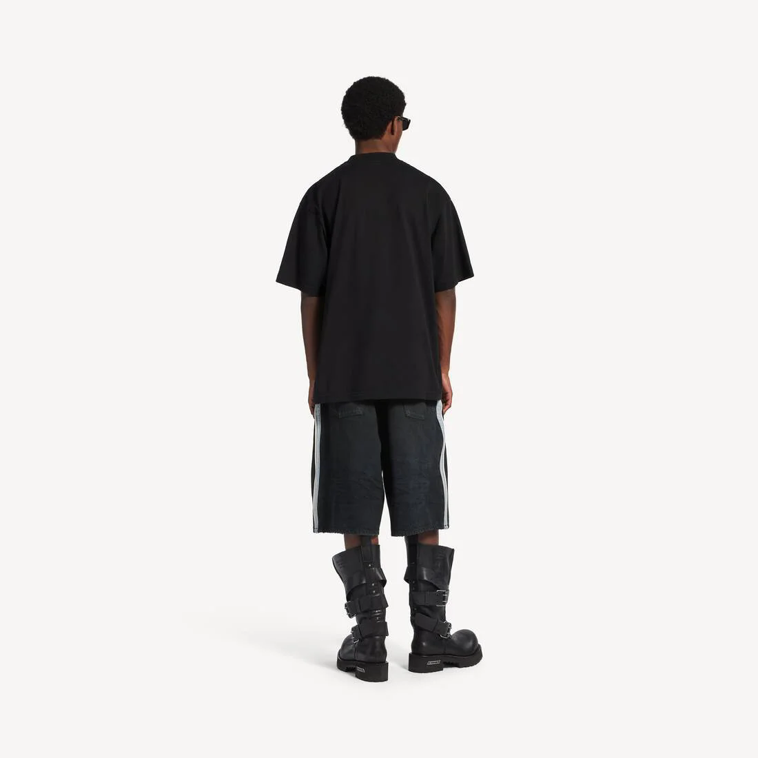 高街复古印花tee,上身真的好帅。胸前大印花宽松情侣t恤E040858