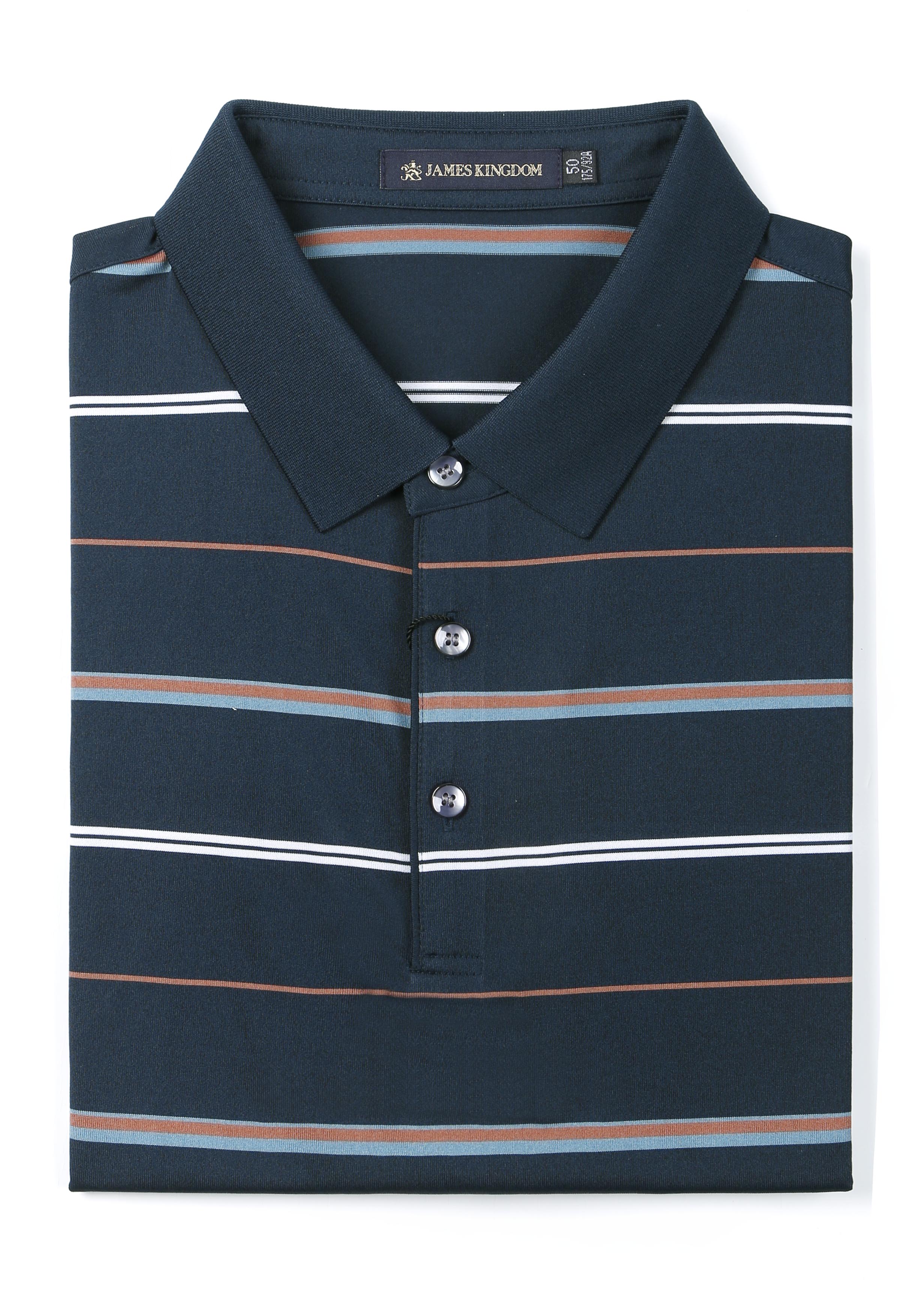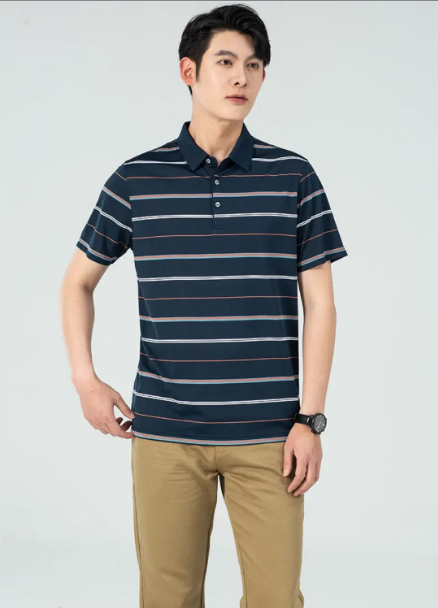 【2件/259】占姆士男士含桑蚕丝高级感条纹翻领短袖POLO衫 一款三色 墨绿&灰兰&宝蓝