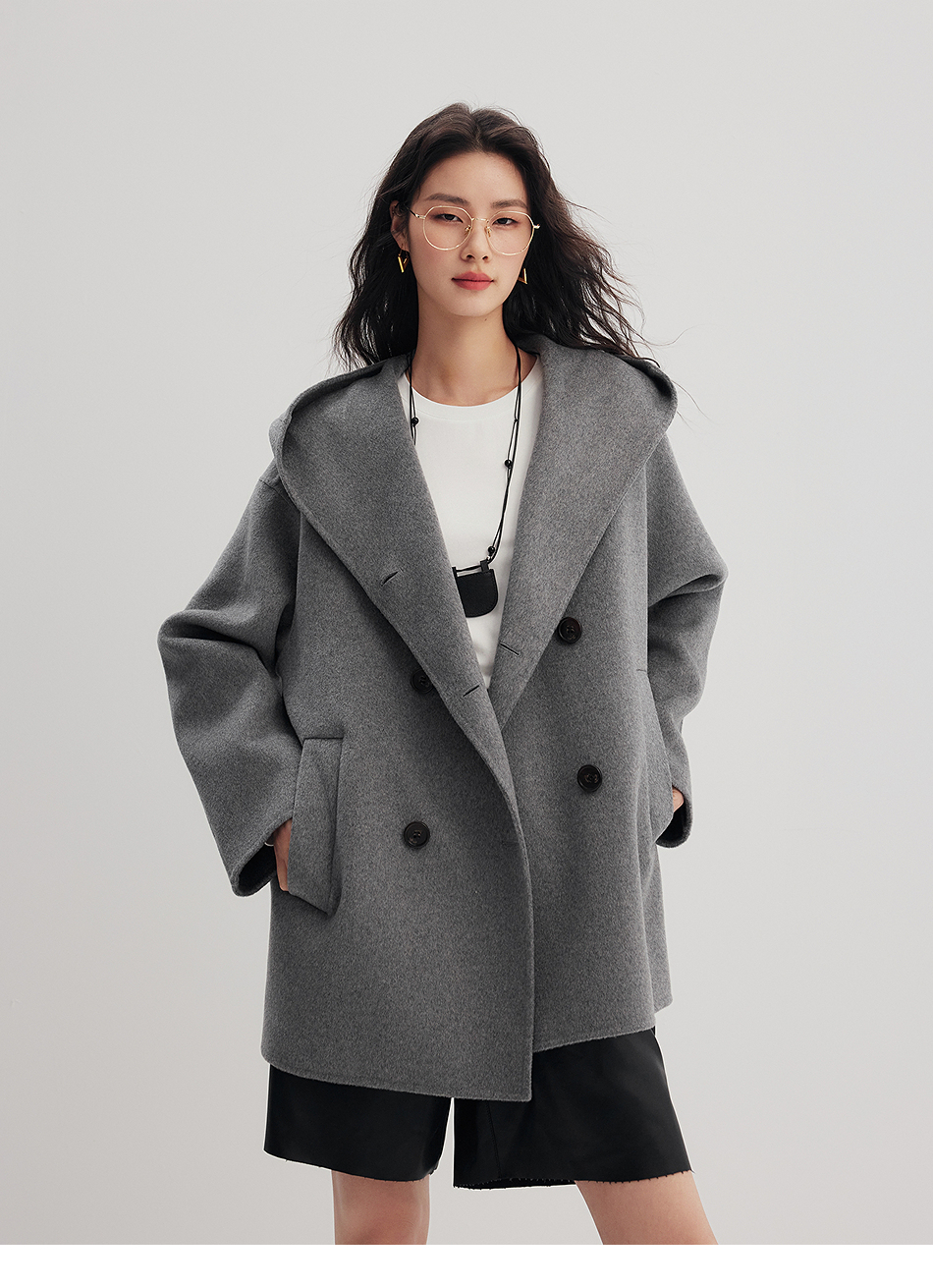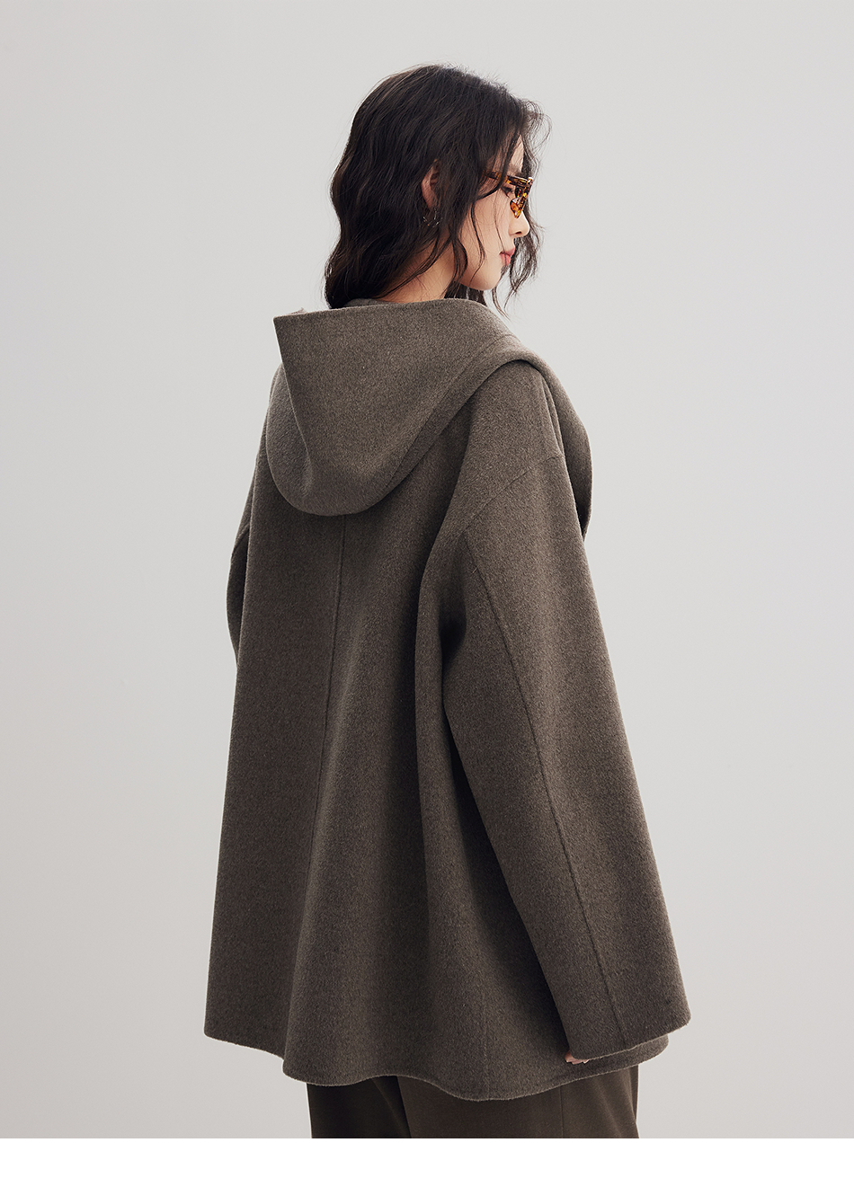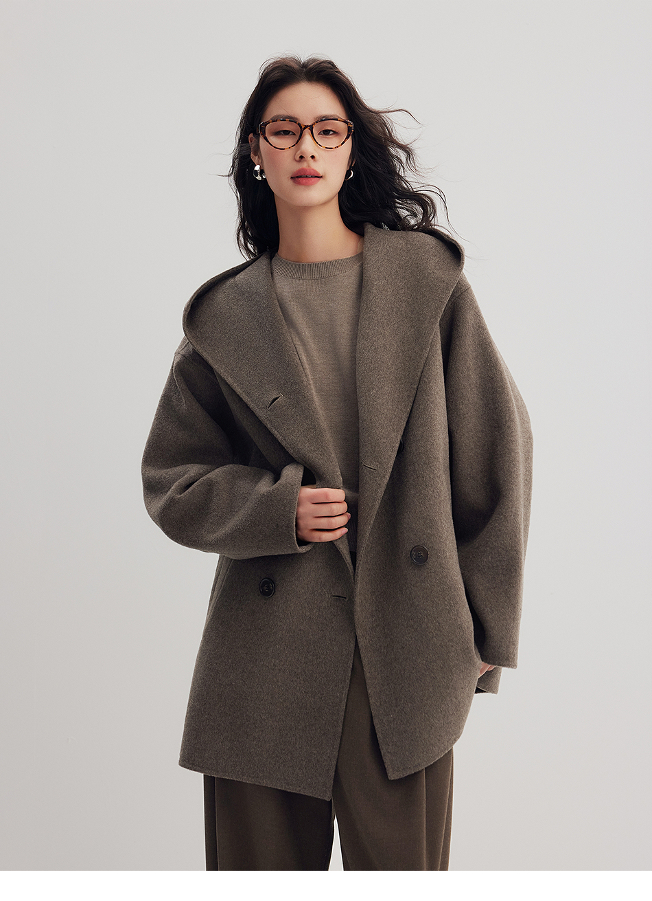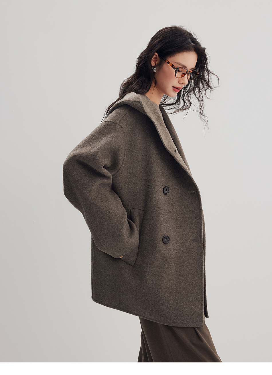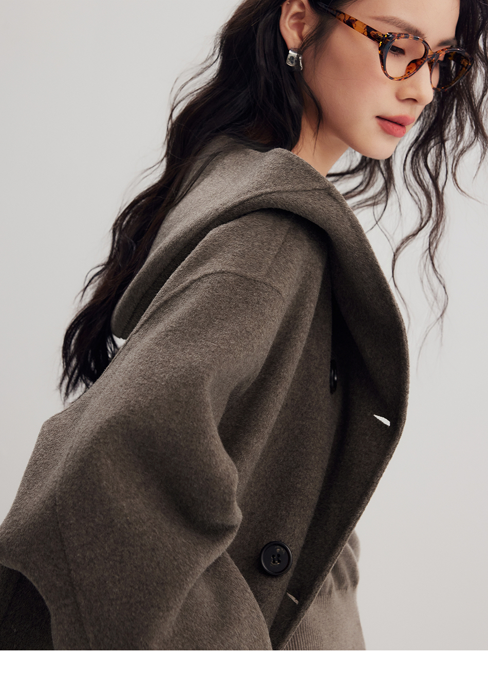 棉仓356666001-老钱松弛感兜帽双排扣一手长羊毛羊绒混纺毛呢外套