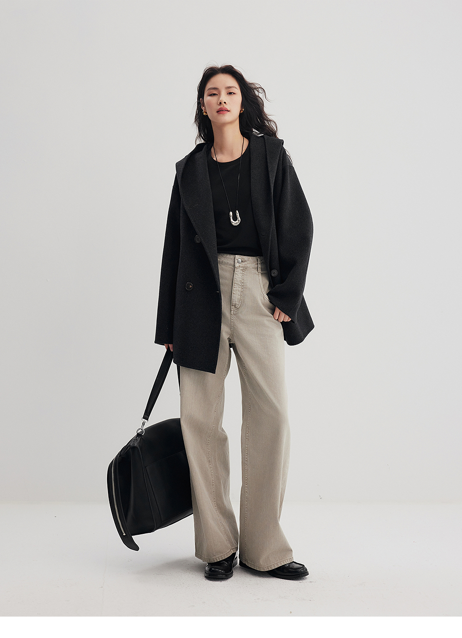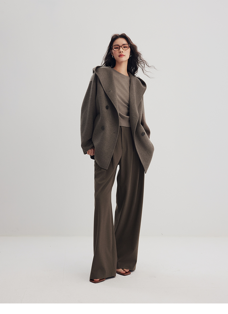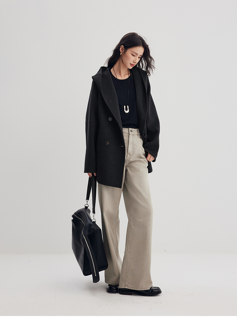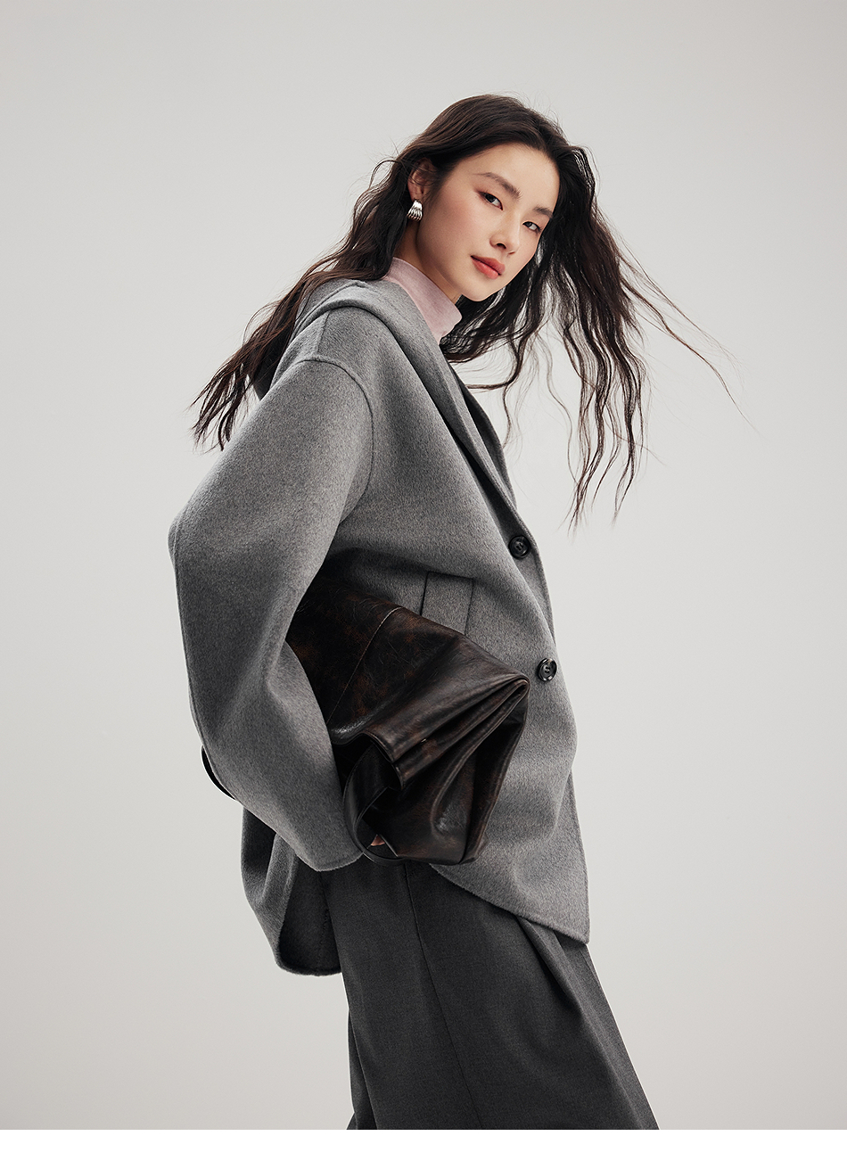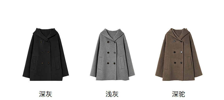 棉仓356666001-老钱松弛感兜帽双排扣一手长羊毛羊绒混纺毛呢外套
