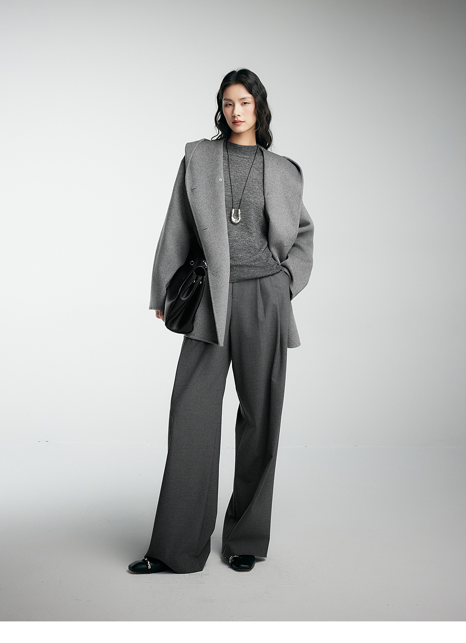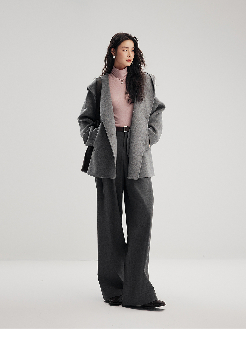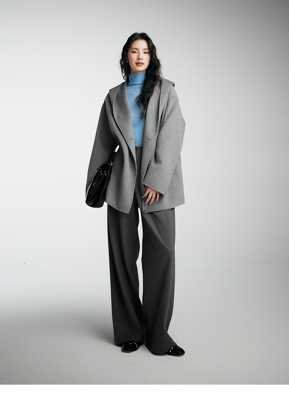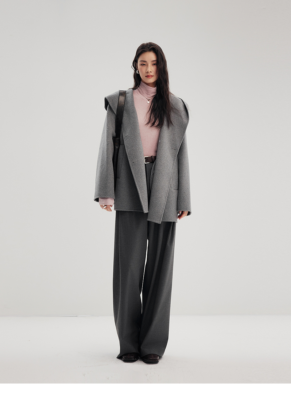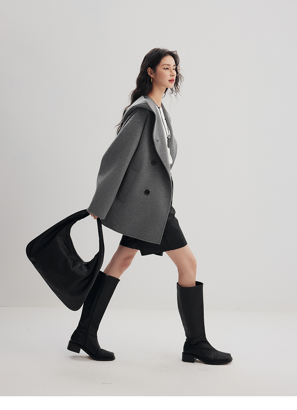 棉仓356666001-老钱松弛感兜帽双排扣一手长羊毛羊绒混纺毛呢外套