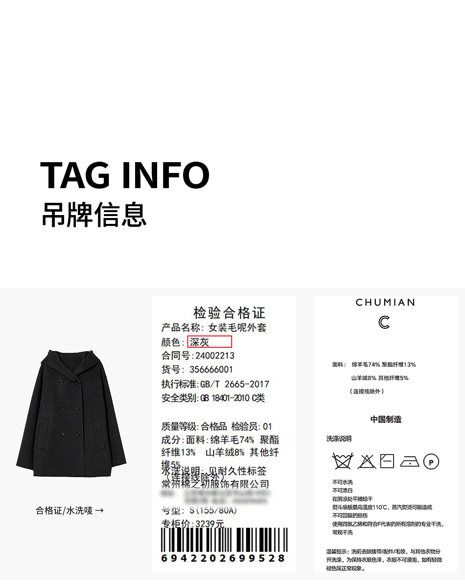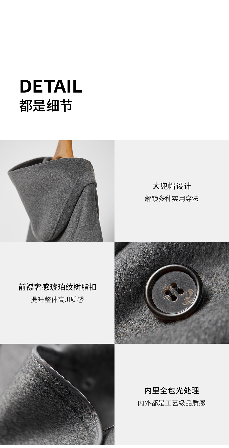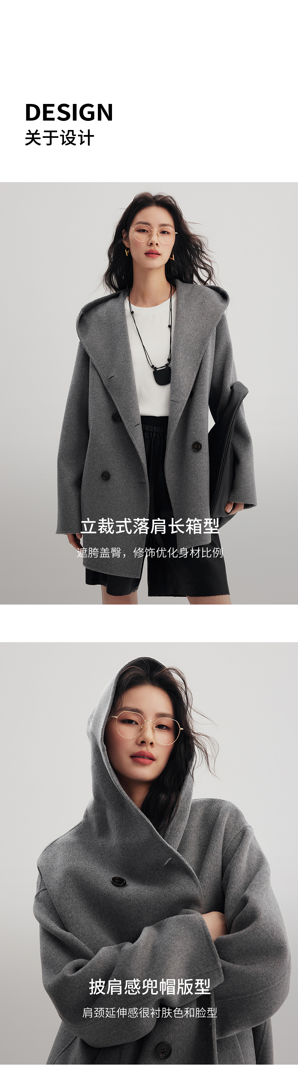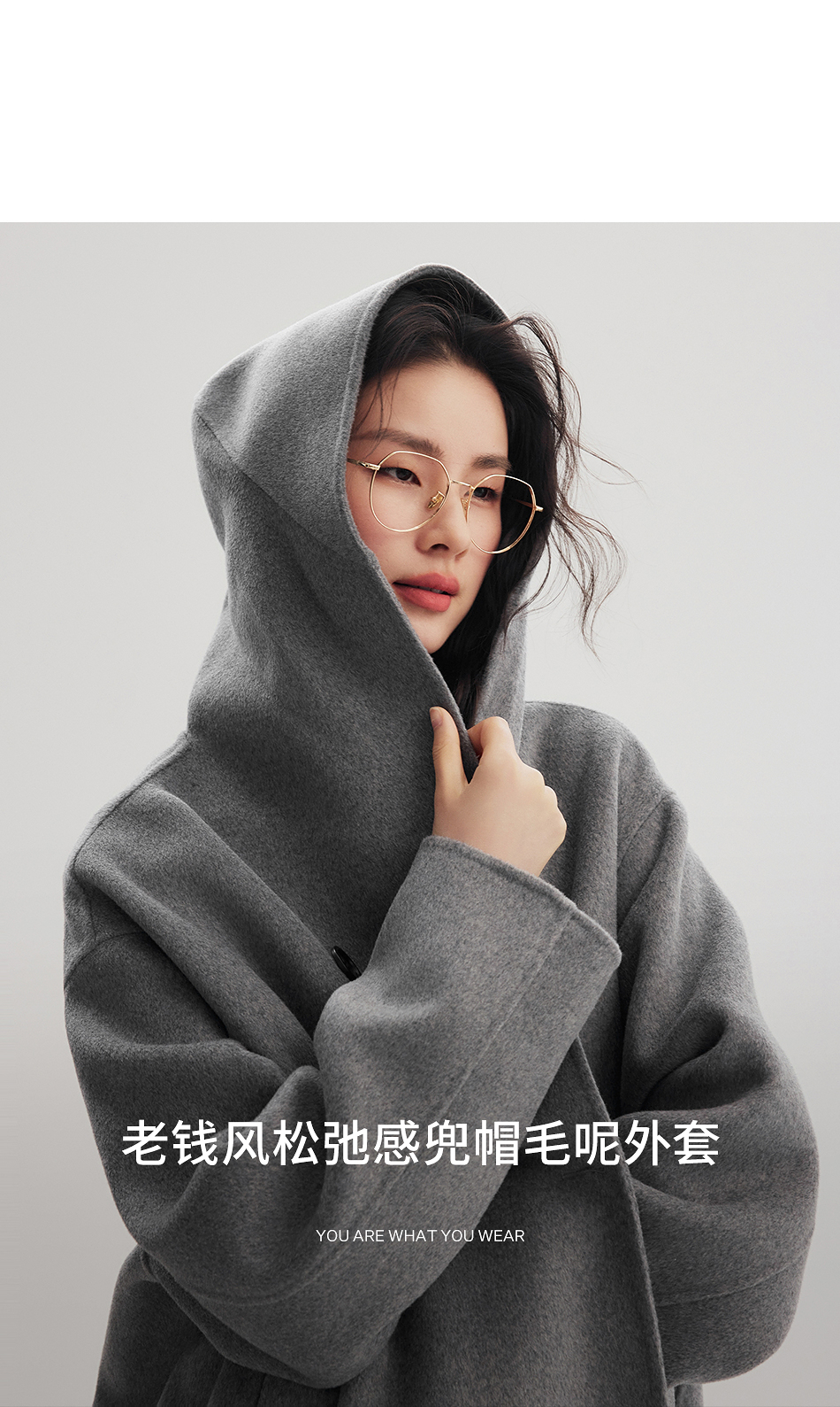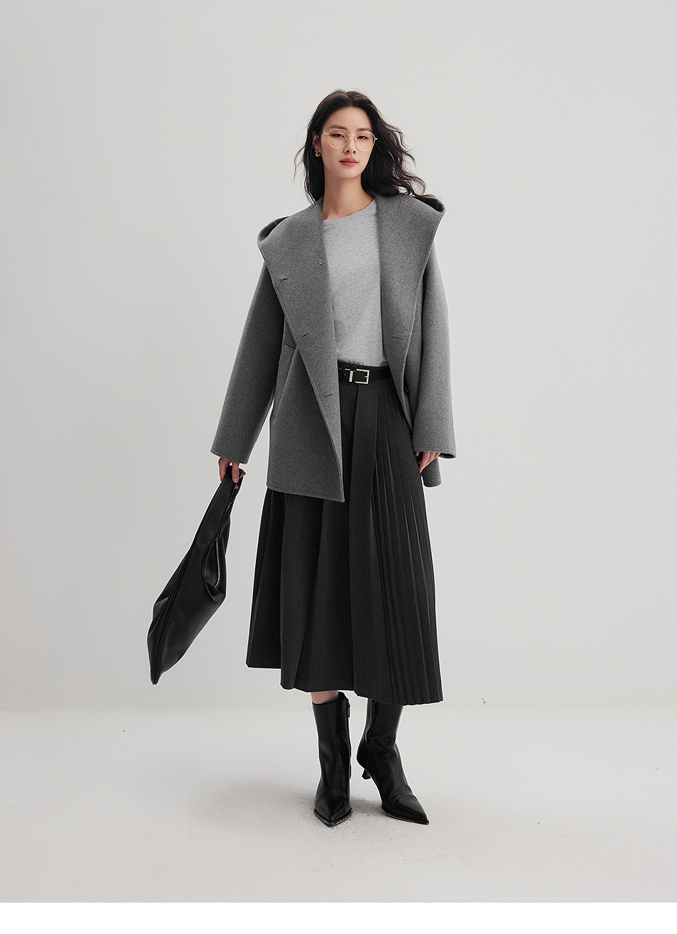 棉仓356666001-老钱松弛感兜帽双排扣一手长羊毛羊绒混纺毛呢外套