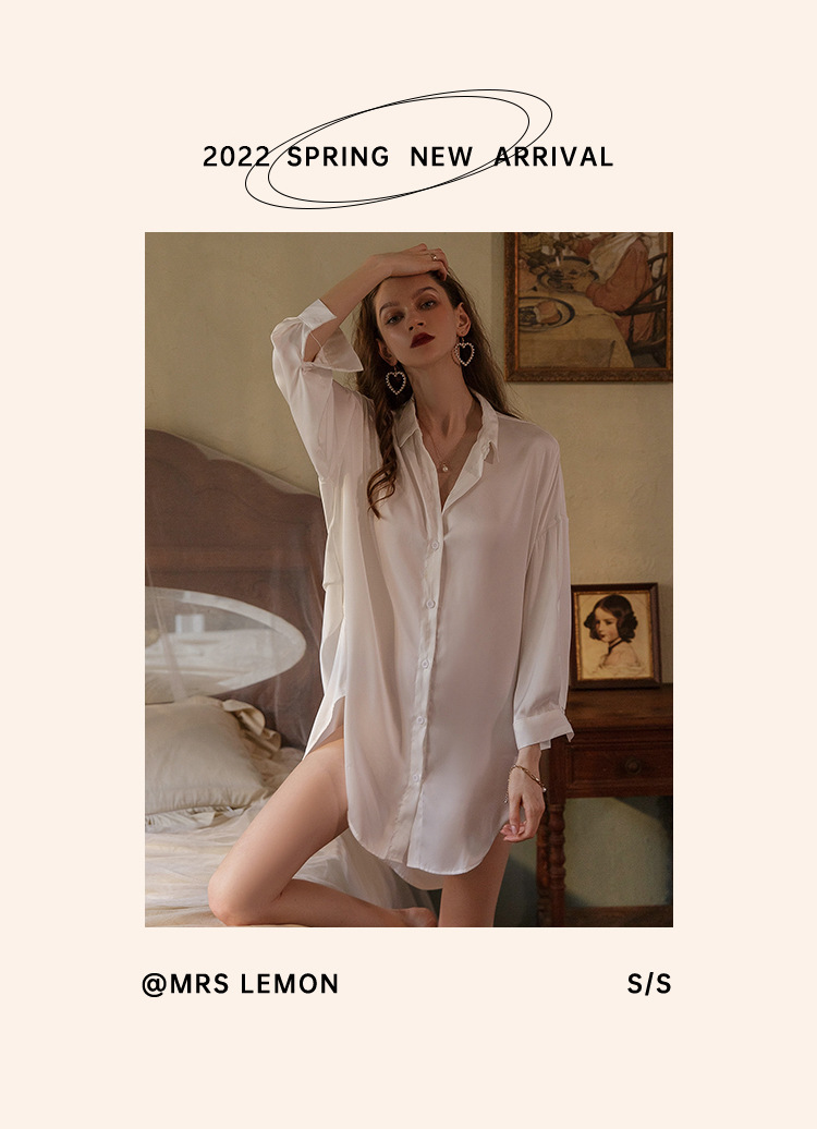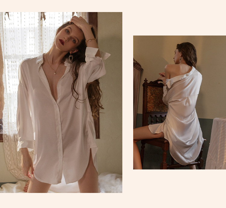 性感睡衣女冰丝男友风白衬衫睡裙女宽松纯欲诱惑家居服睡衣裙