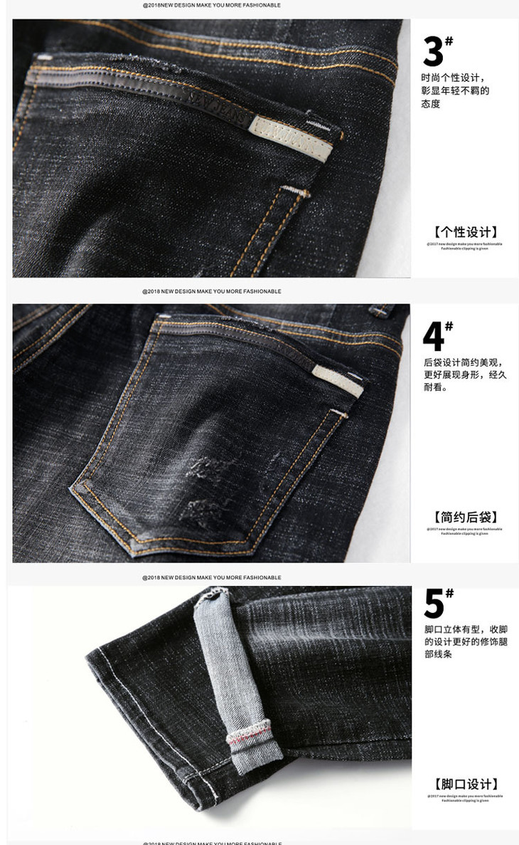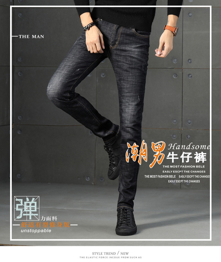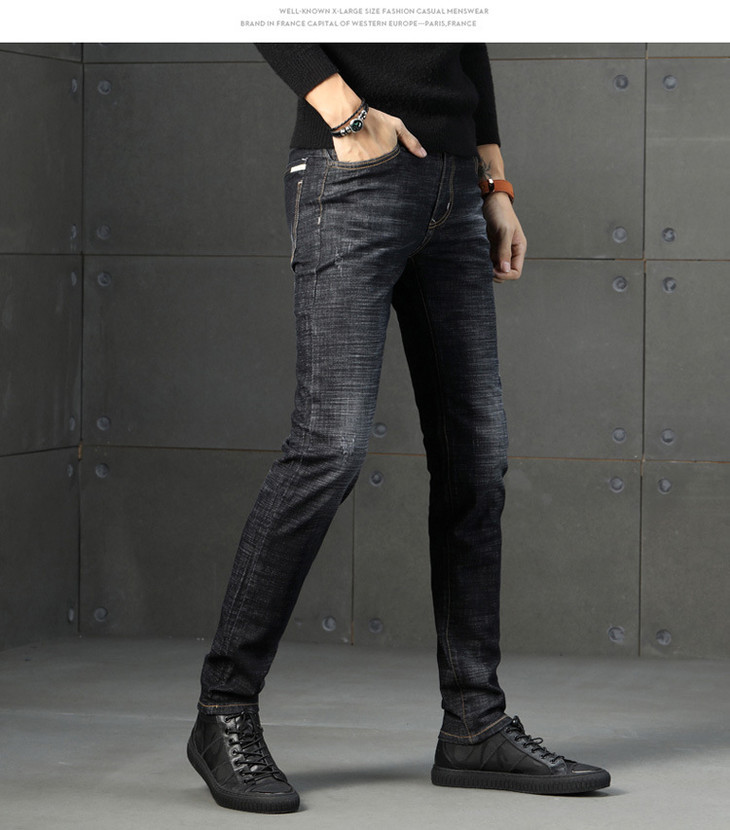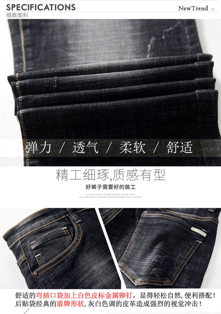 【服饰鞋包】.秋季牛仔裤男式修身棉弹力黑灰潮品牌新款牛仔裤男装