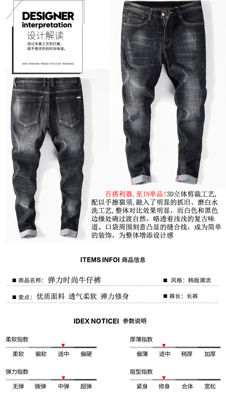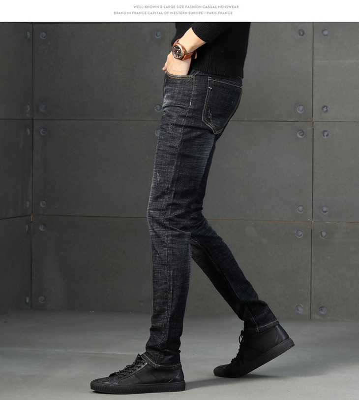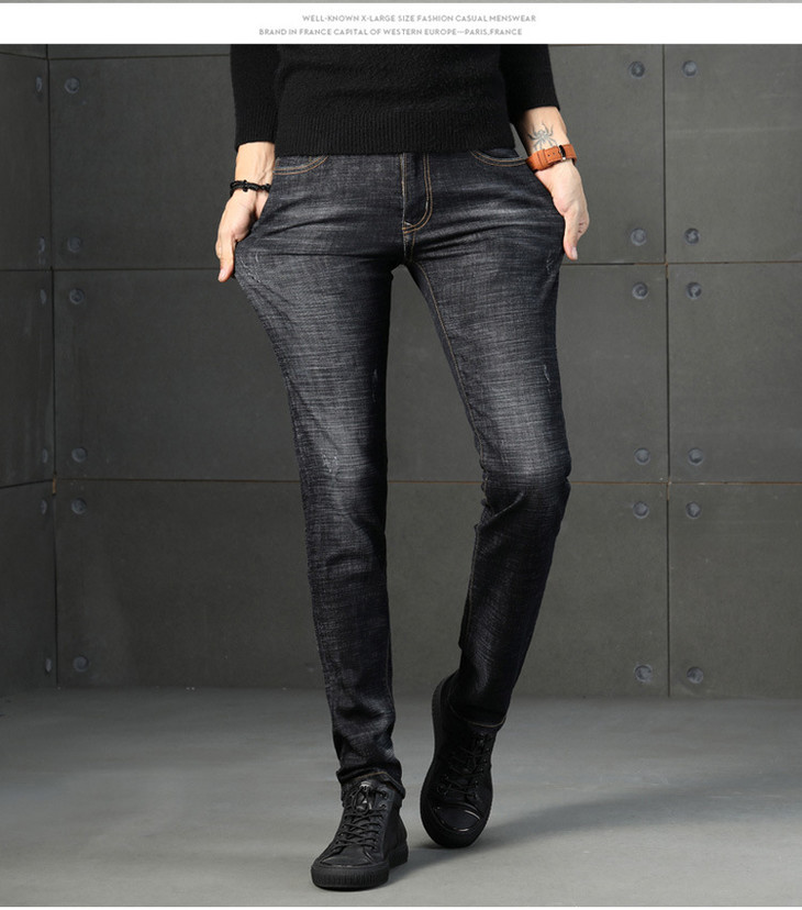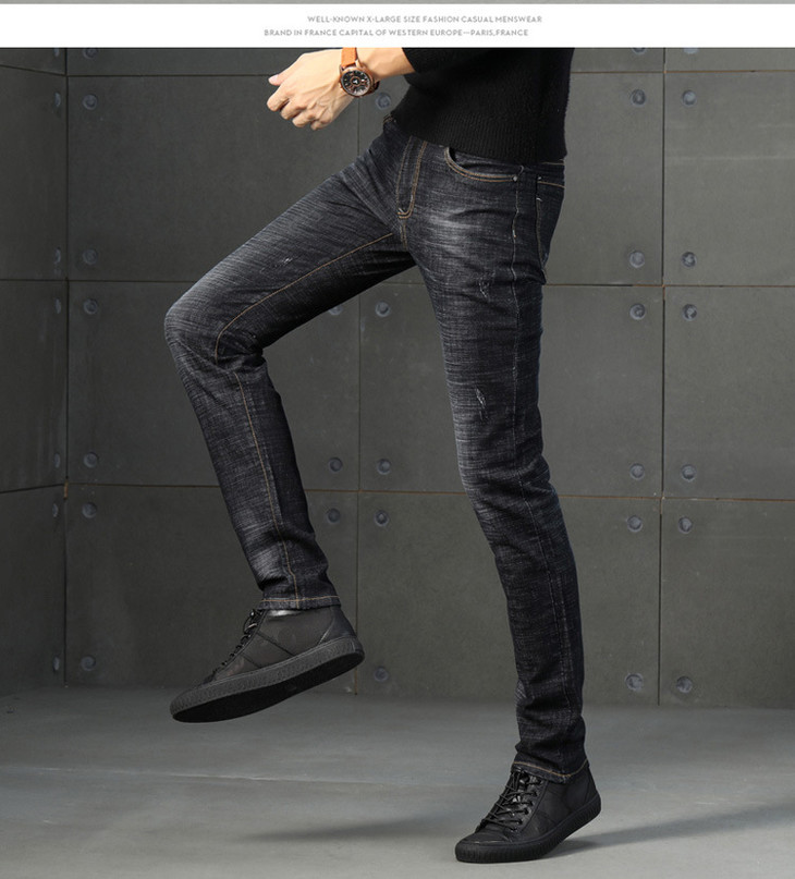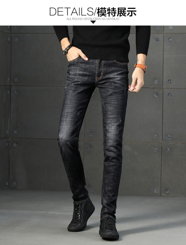 【服饰鞋包】.秋季牛仔裤男式修身棉弹力黑灰潮品牌新款牛仔裤男装