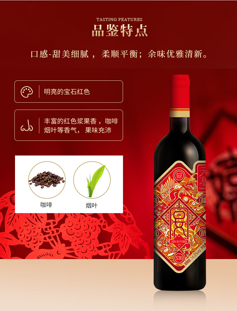 新疆天塞酒庄 S18赤霞珠/美乐干红葡萄酒