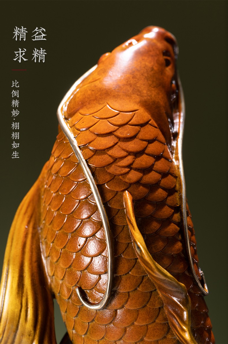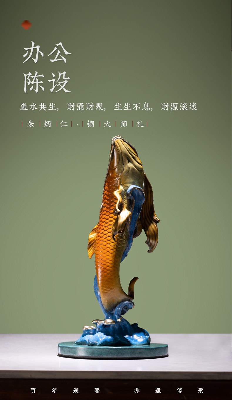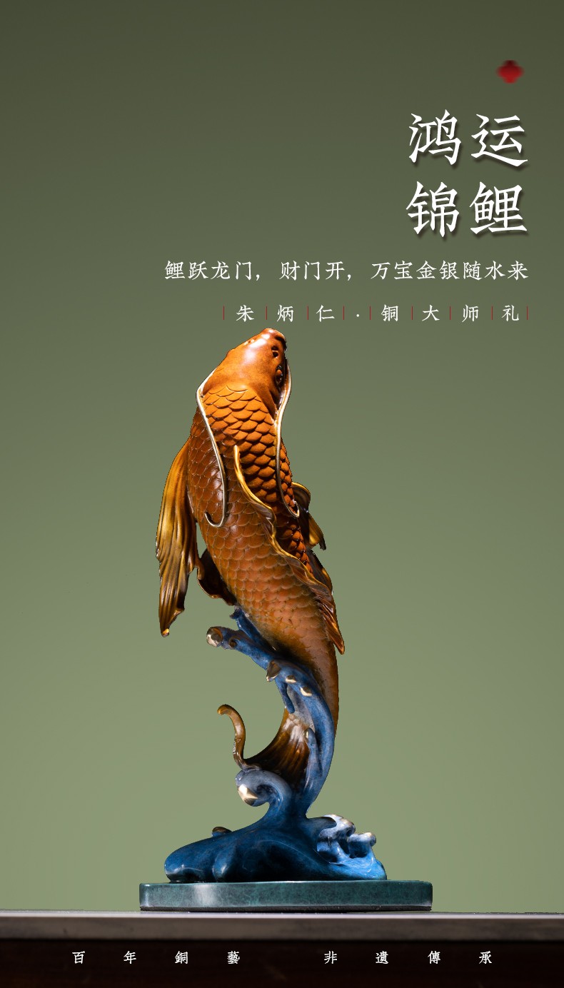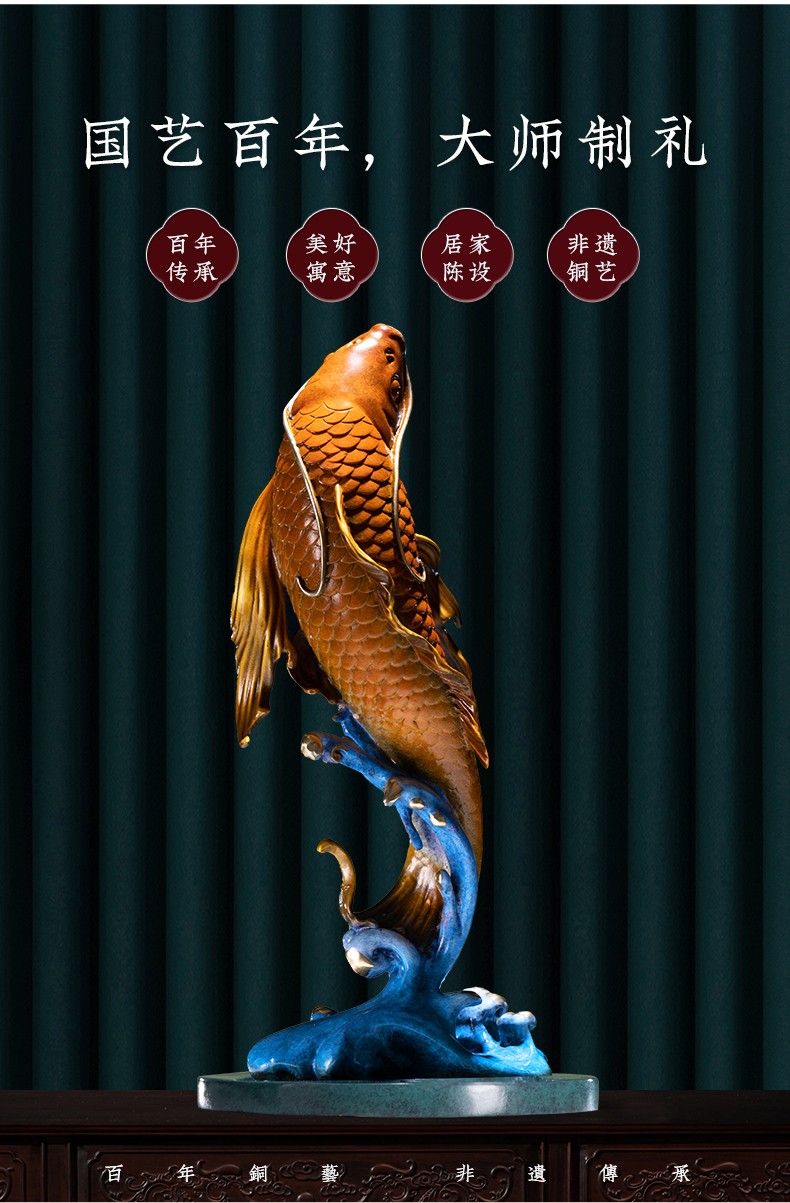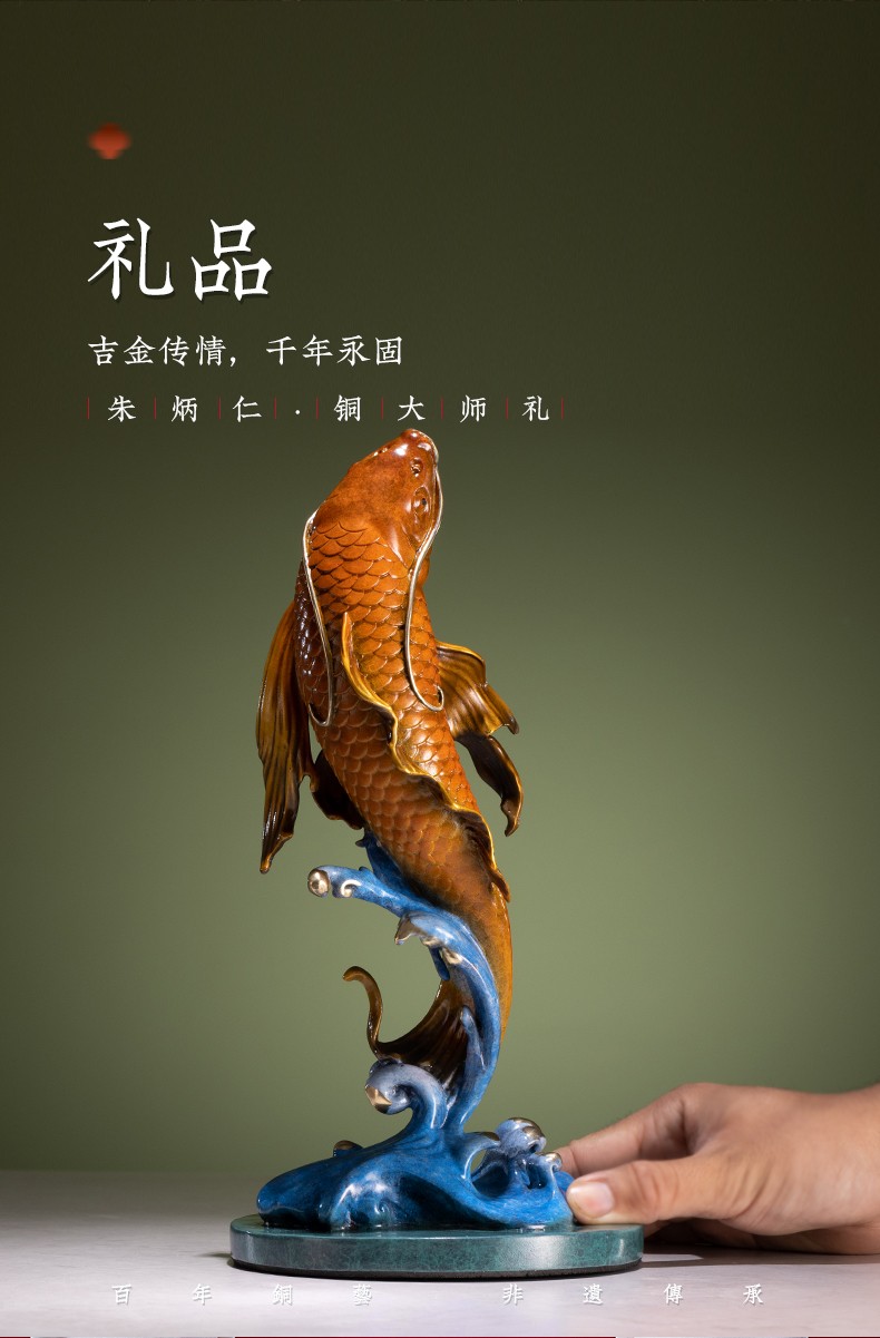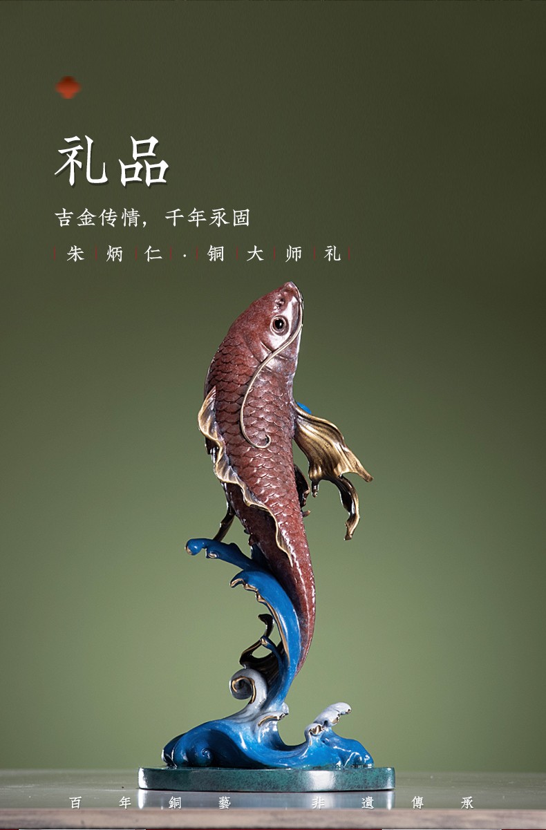 【6F】朱炳仁铜 鸿运锦鲤客厅办公室玄关摆件 中式艺术品创意家居装饰品铜雕礼品鲤鱼摆件 开业礼赠 鸿运锦鲤(黄)