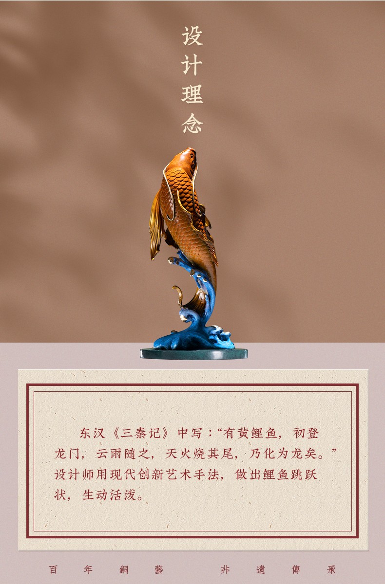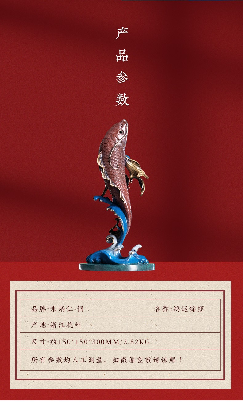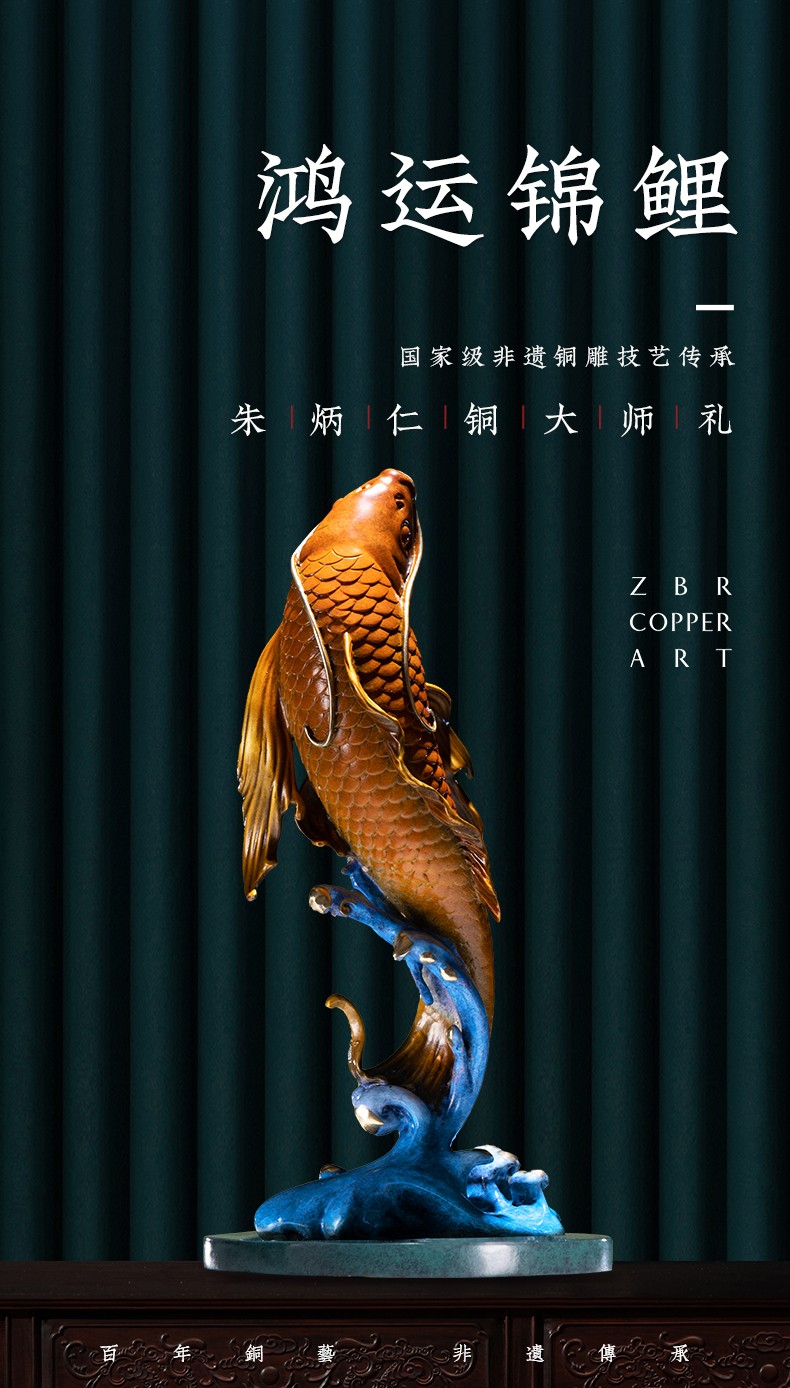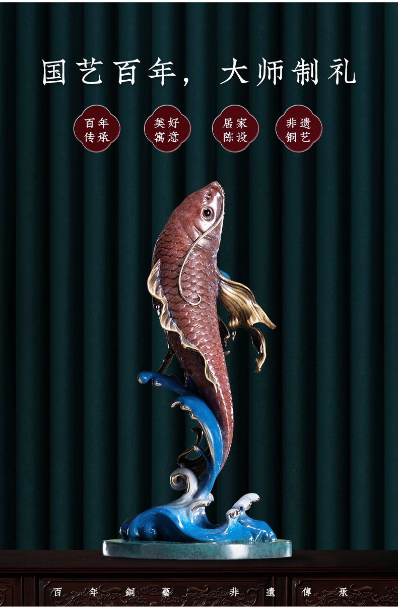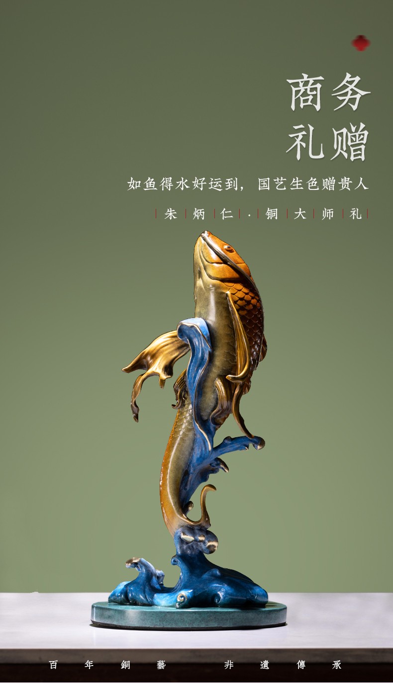 【6F】朱炳仁铜 鸿运锦鲤客厅办公室玄关摆件 中式艺术品创意家居装饰品铜雕礼品鲤鱼摆件 开业礼赠 鸿运锦鲤(黄)
