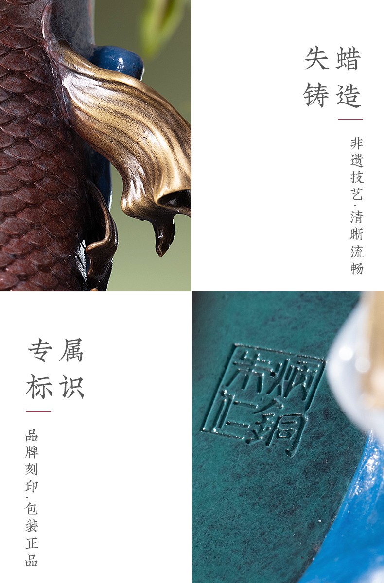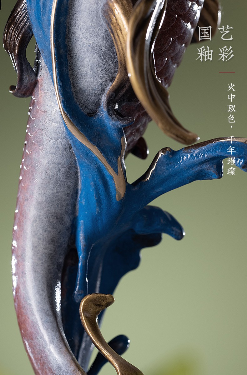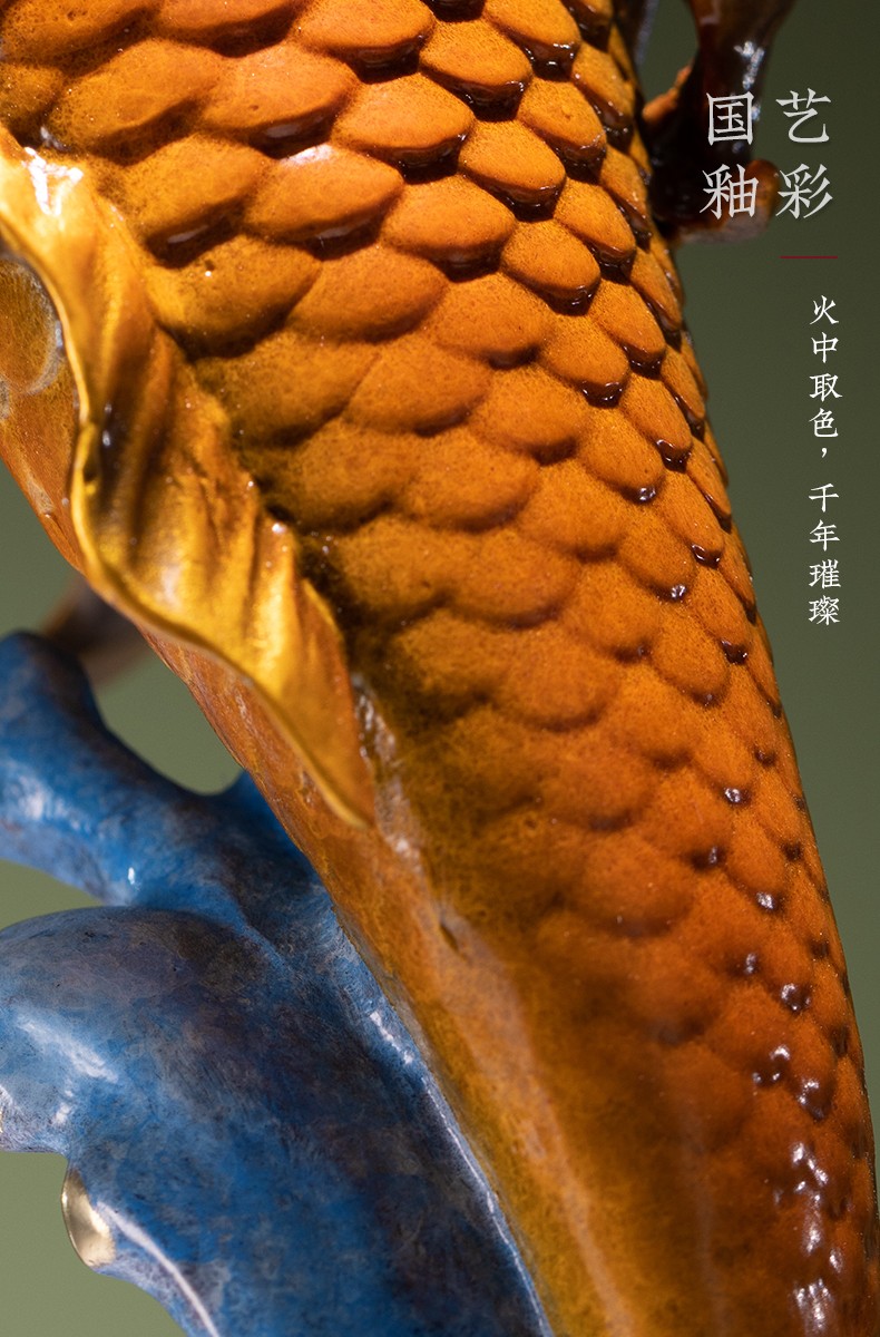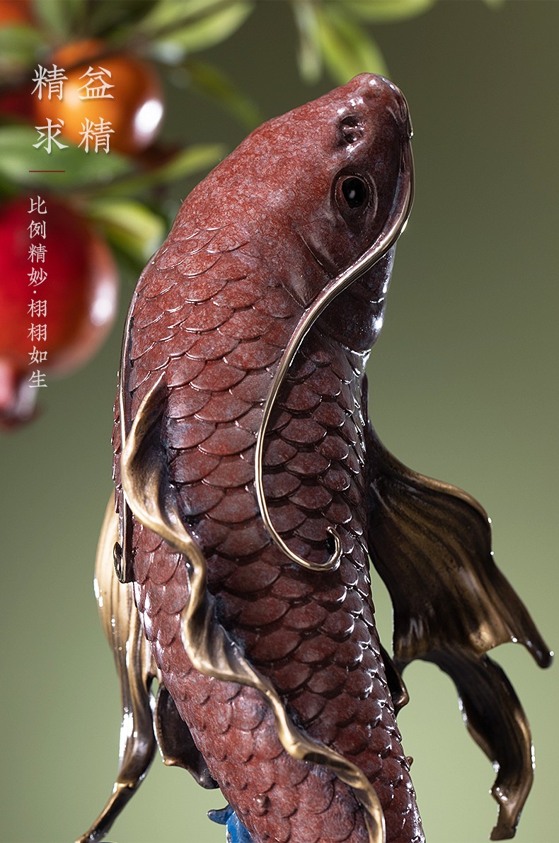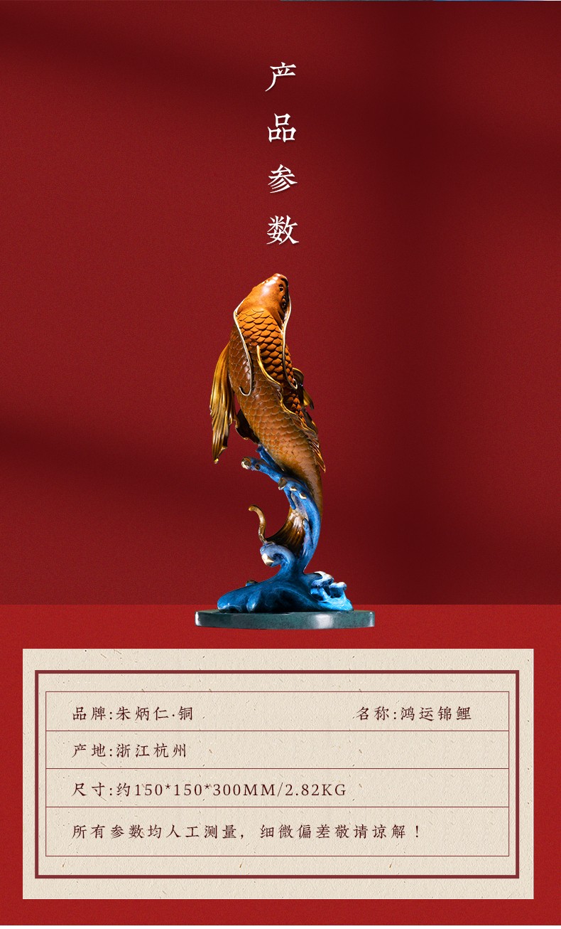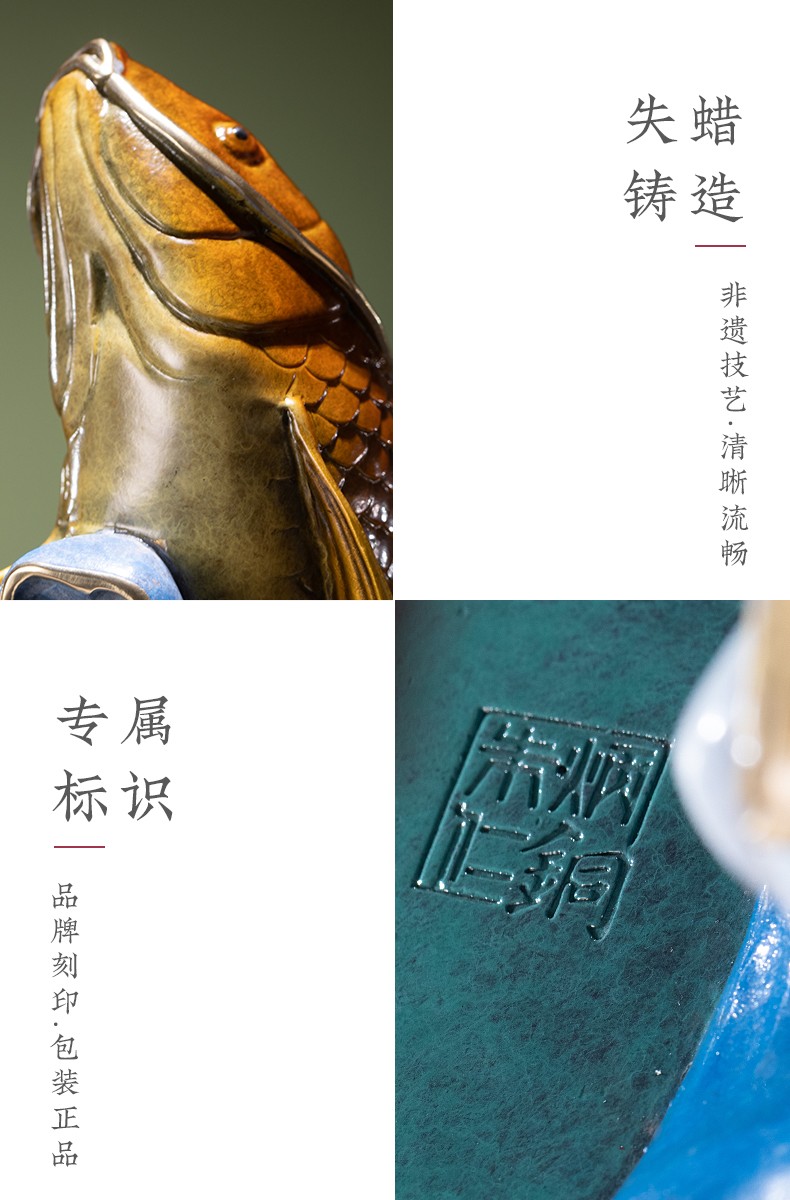 【6F】朱炳仁铜 鸿运锦鲤客厅办公室玄关摆件 中式艺术品创意家居装饰品铜雕礼品鲤鱼摆件 开业礼赠 鸿运锦鲤(黄)
