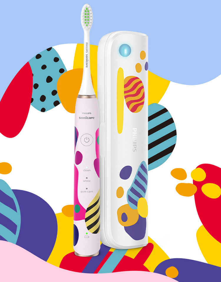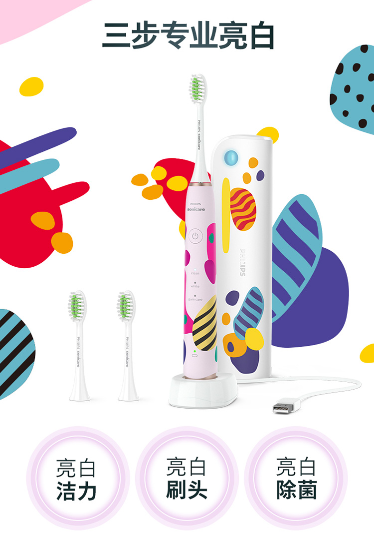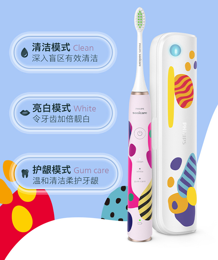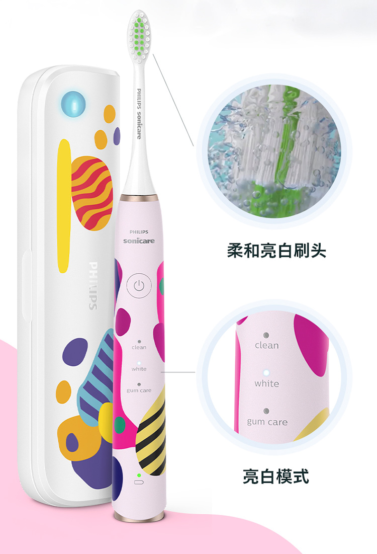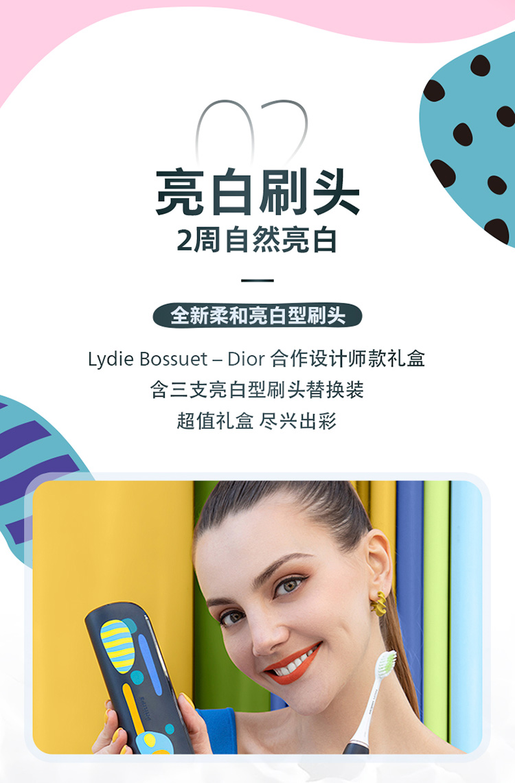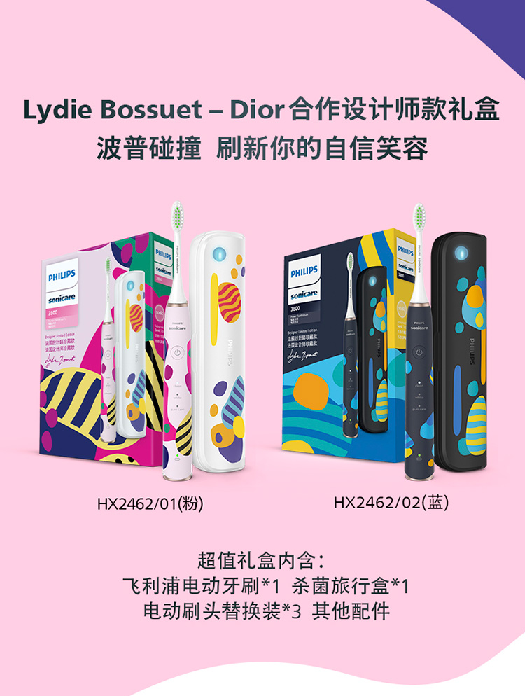 【6F】飞利浦电动牙刷成人亮白杀菌 带3支刷头+紫外线杀菌牙刷盒Lydie Bossuet—Dior合作设计师款HX2462/02鸢尾蓝
