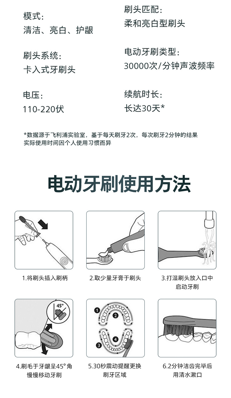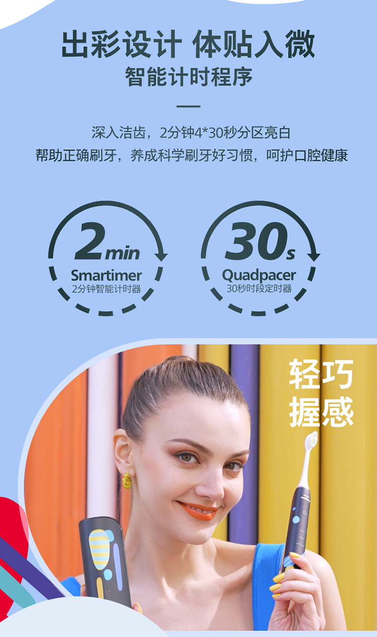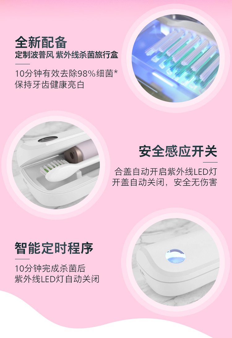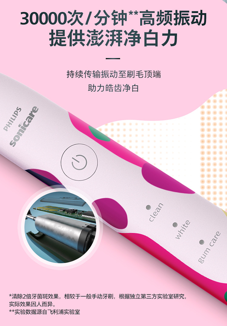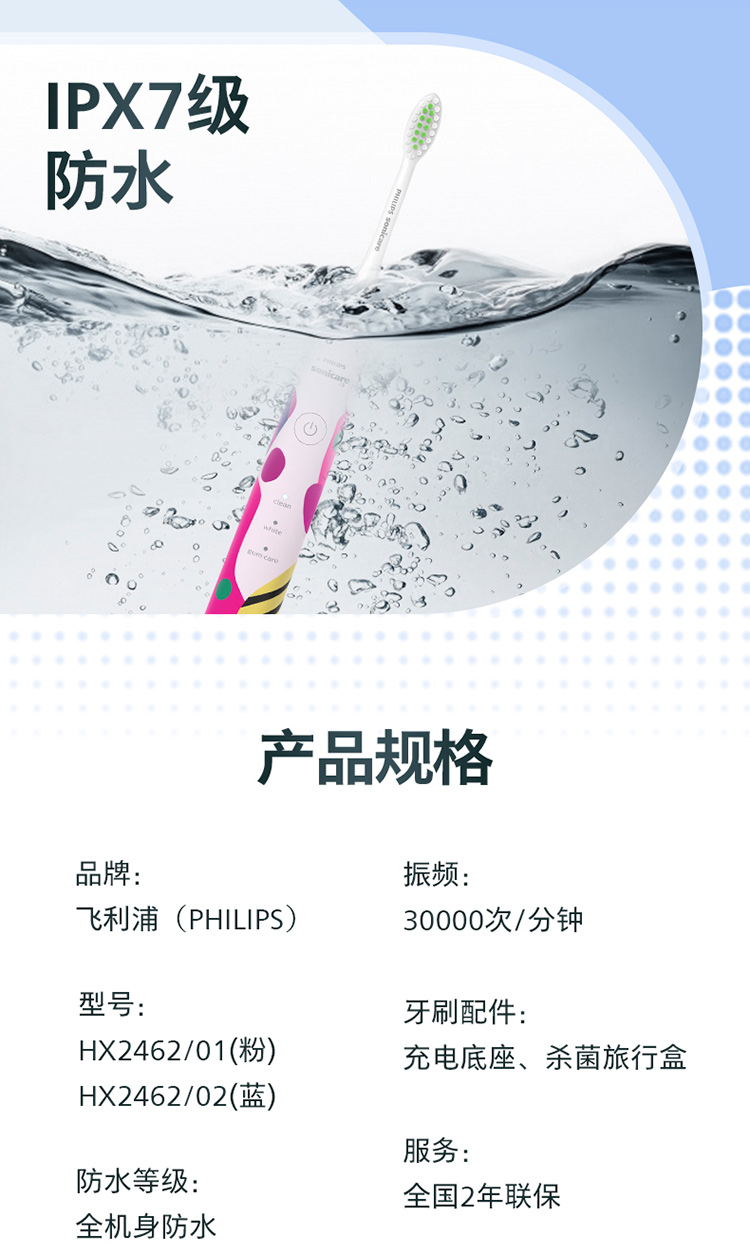 【6F】飞利浦电动牙刷成人亮白杀菌 带3支刷头+紫外线杀菌牙刷盒Lydie Bossuet—Dior合作设计师款HX2462/02鸢尾蓝