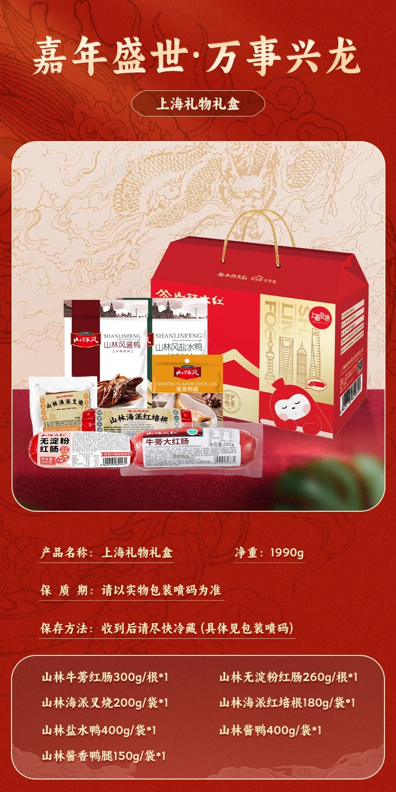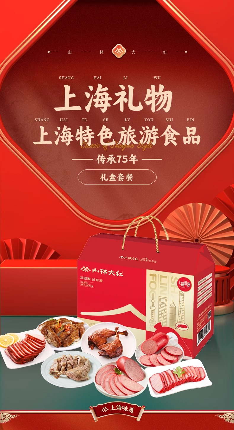 山林大红熟食礼盒正宗上海风味真空即食送长辈礼品卤味年货大礼包