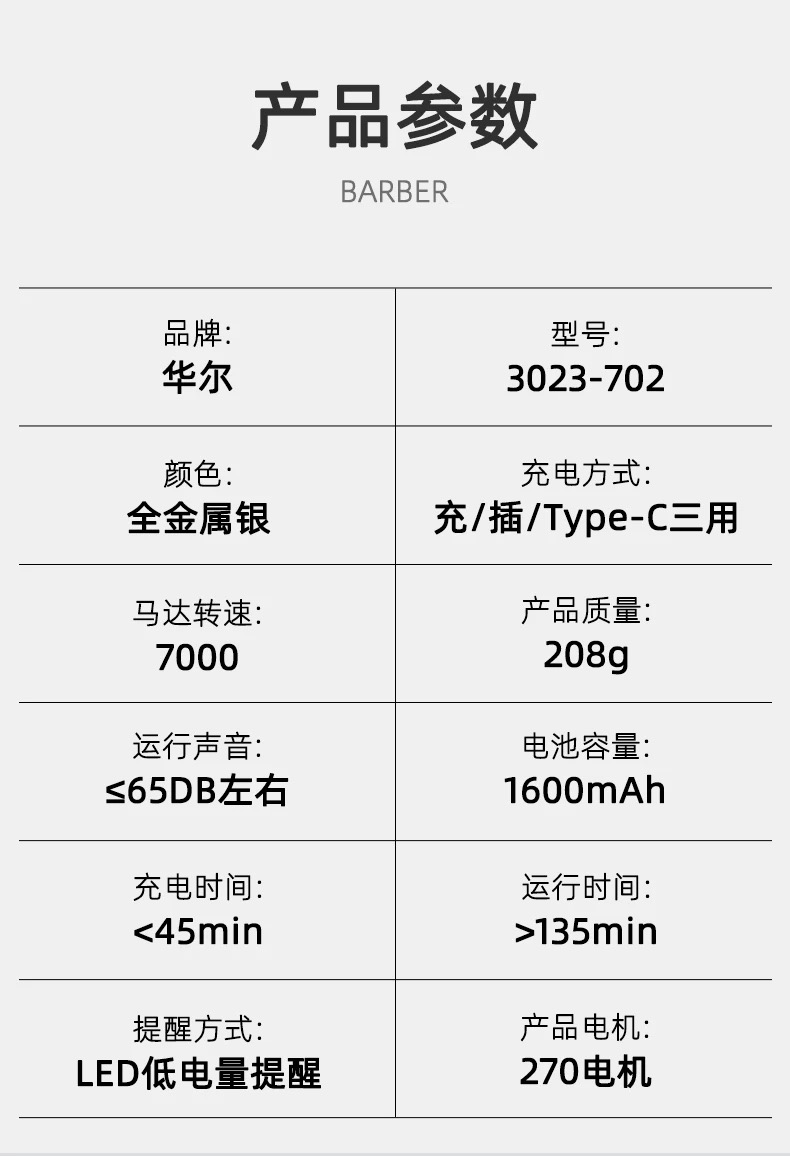 华尔金属三件套油头渐变推剪套装