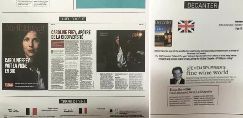 法国本土知名的财经杂志《Bilan》大幅报道卡罗琳,并评论其为生物动力法的传教士!由于酿造的酒款品质佳,《Decanter》也将其评为“2017 年度风云人物”!2009 年 9 月 29 日出版的费加罗(Figaro)杂志上,卡洛琳成了封面人物。