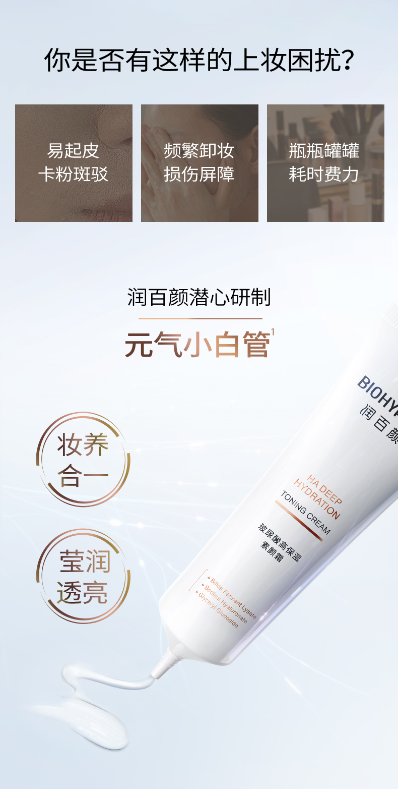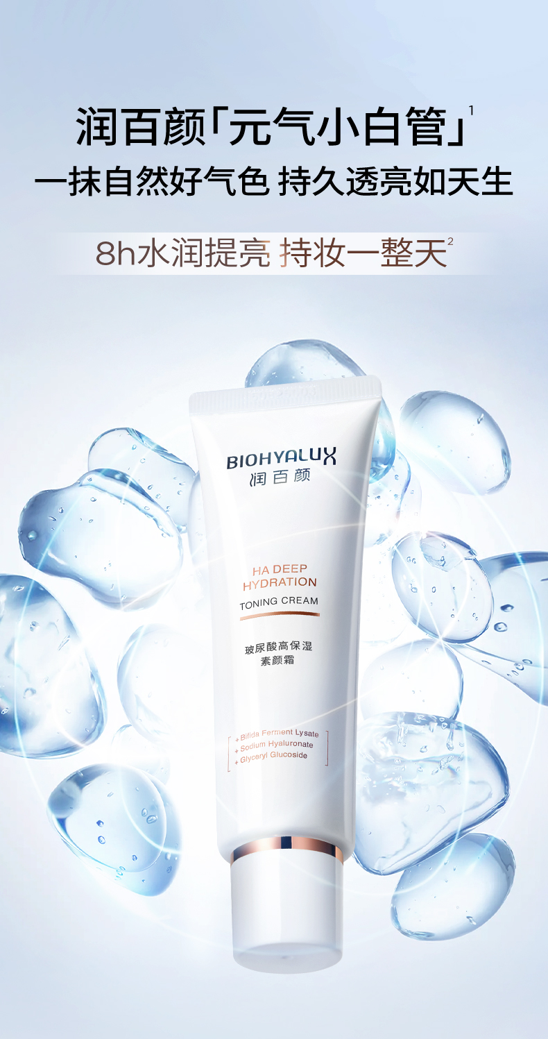 热卖!【下单赠美白次抛】润百颜玻尿酸素颜霜 一抹柔光 面霜+妆前+底妆3合1 持久透亮 50g/支