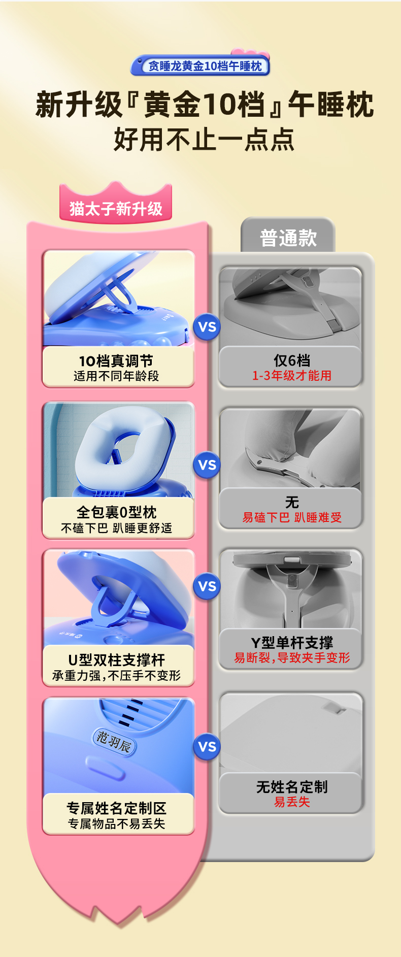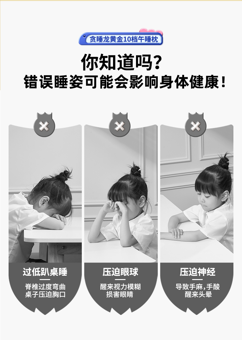 猫太子午睡枕趴睡枕小学生专用午休枕头儿童趴桌睡觉神器桌上抱枕