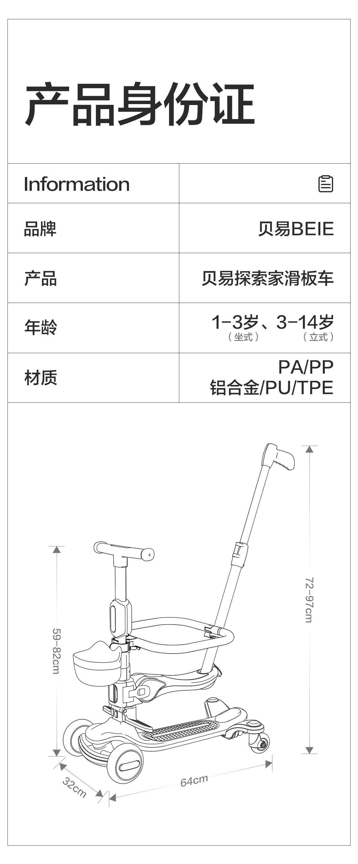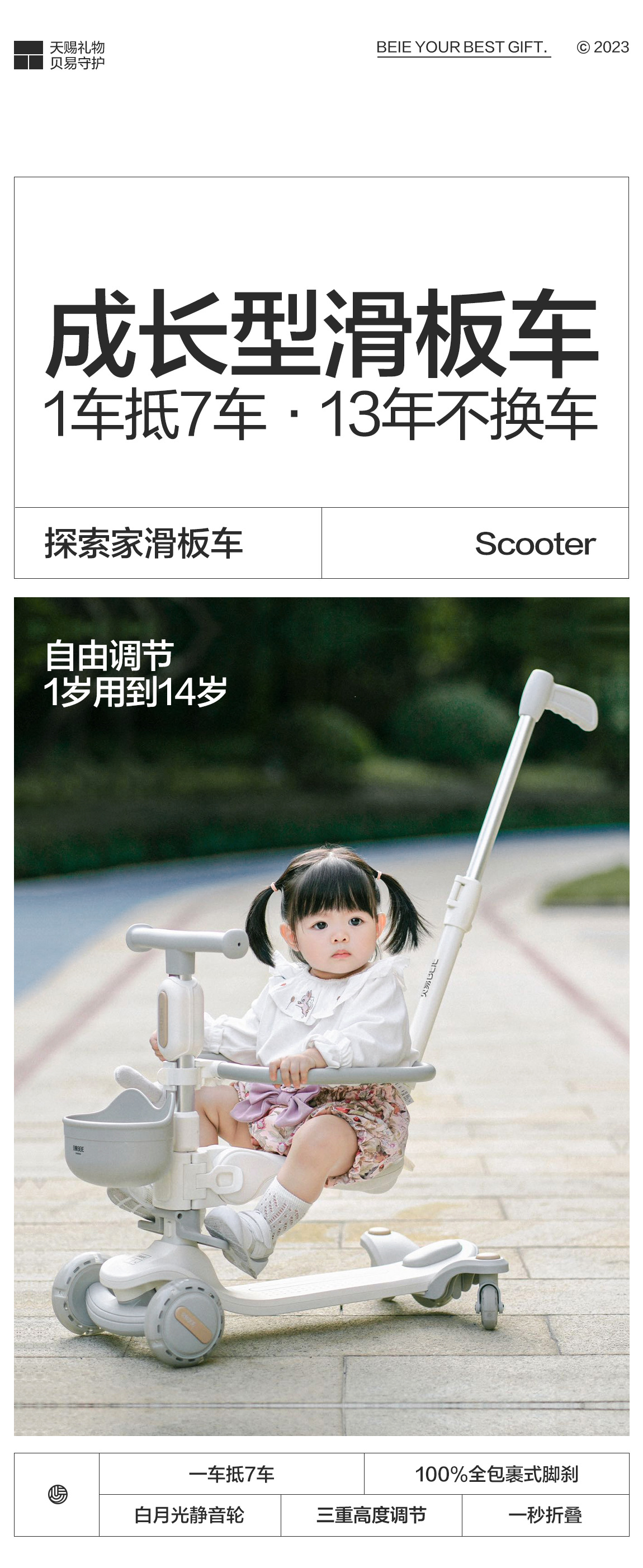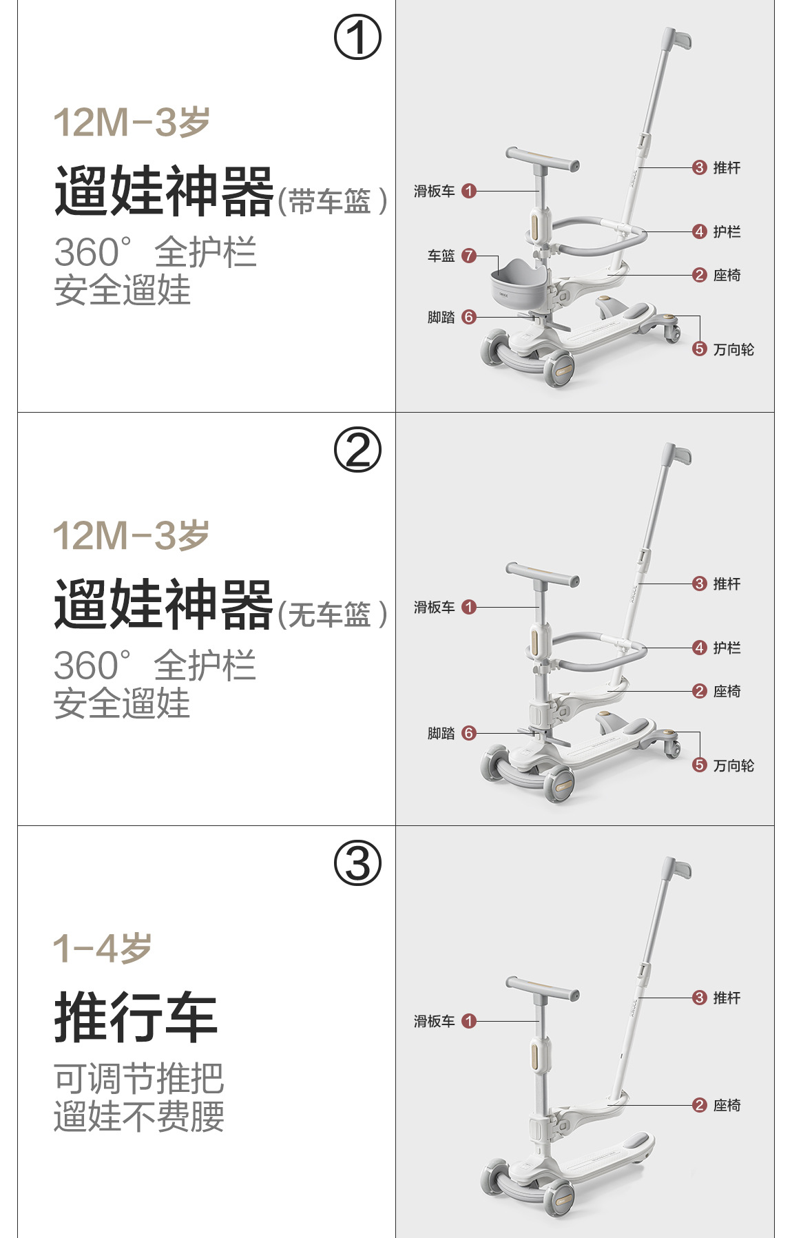 贝易探索家儿童滑板车1一3一6岁小孩宝宝四合一可坐推滑滑溜溜车