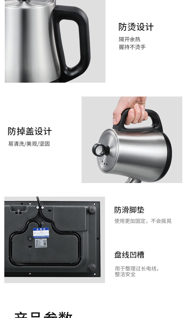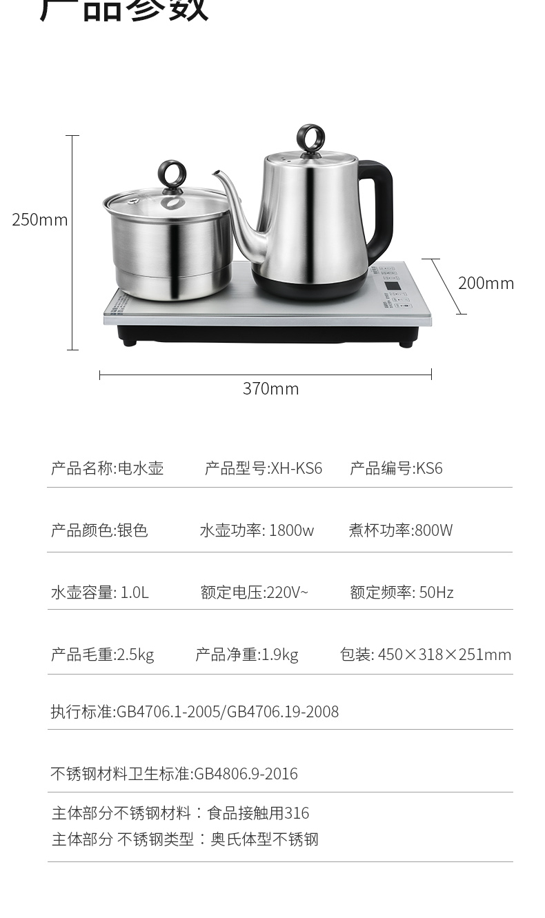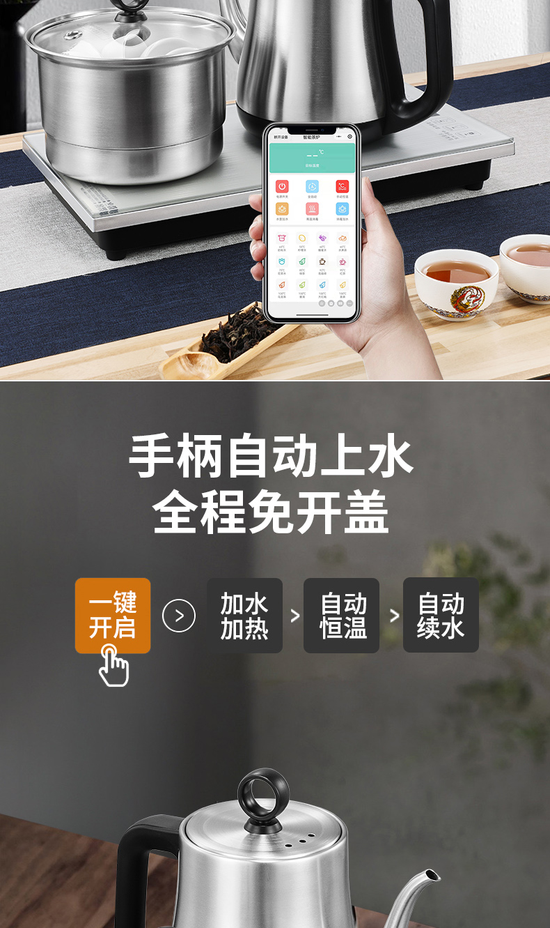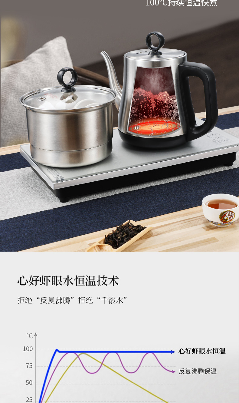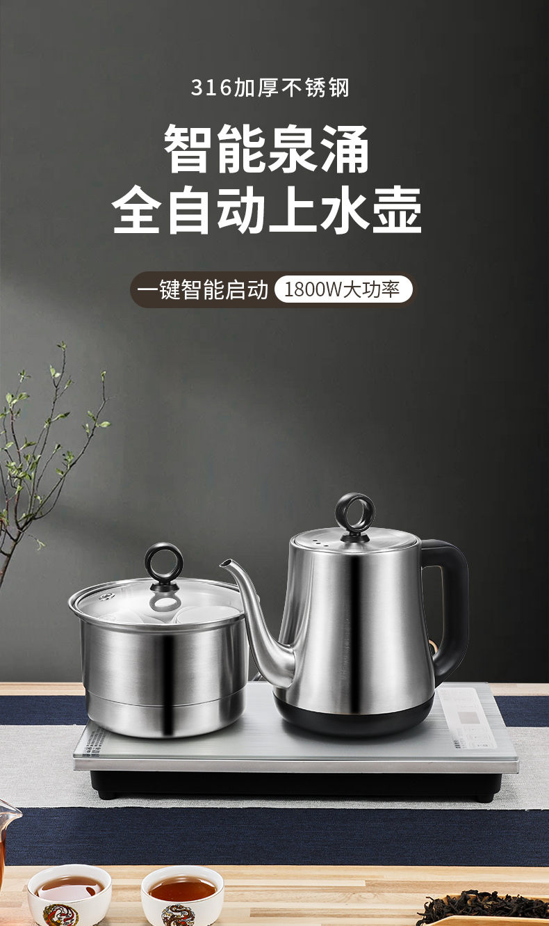 永利汇心好电器底部上水自动烧水家用电热水壶316不锈钢