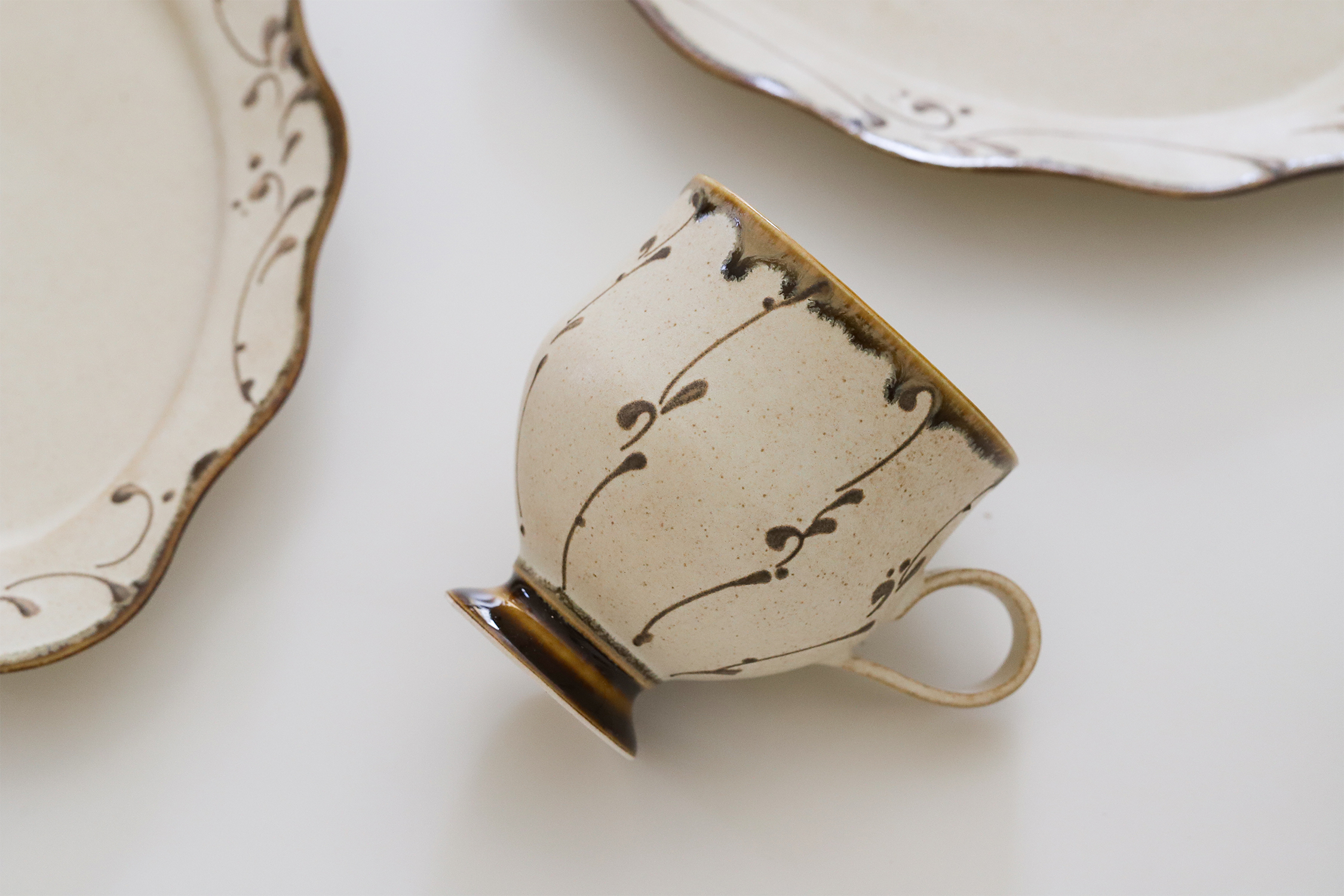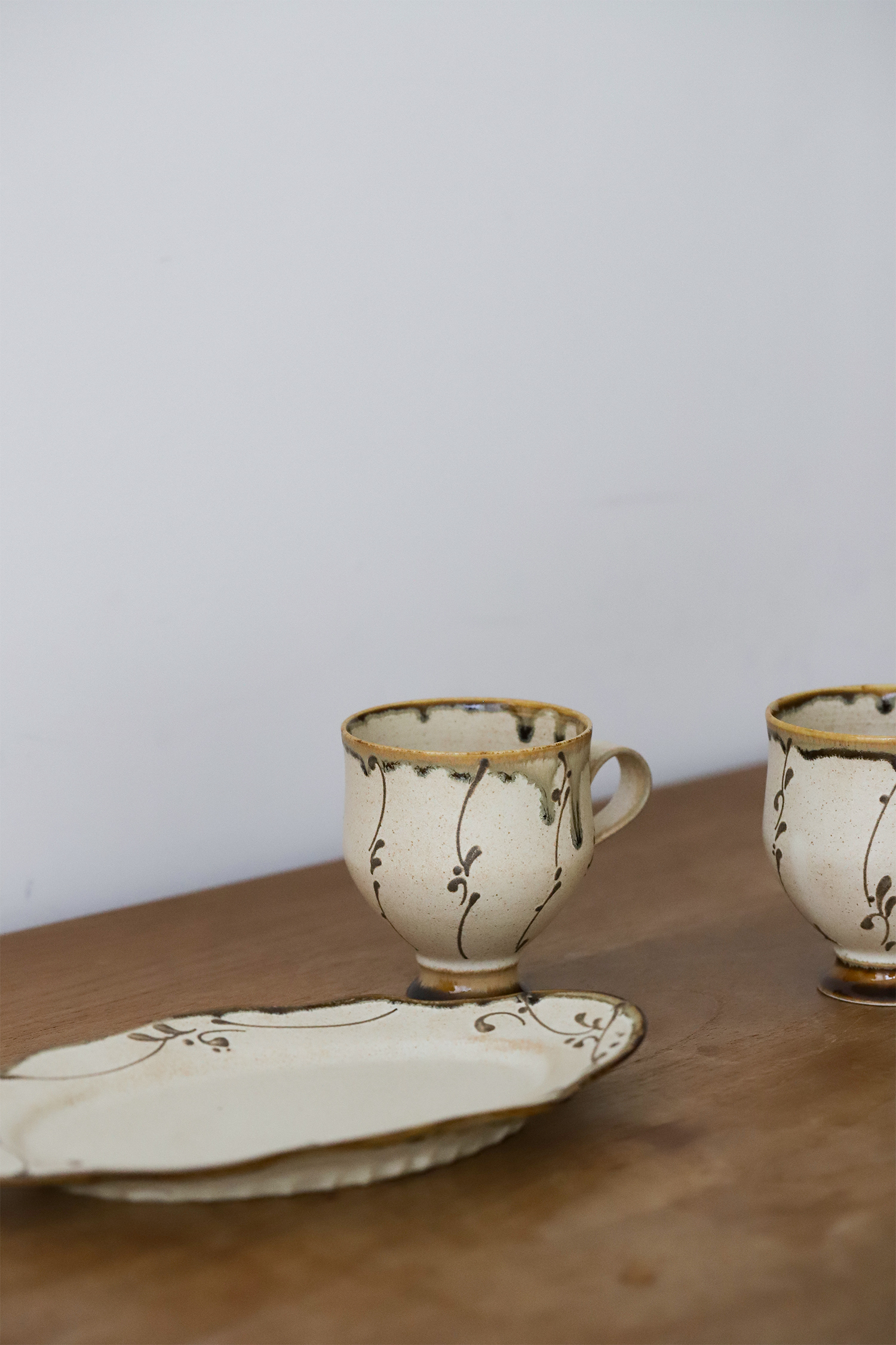 【釉料升级】崧 凤慈 琥珀釉系列 高足 手握咖啡杯 盘 日用 咖啡 茶具