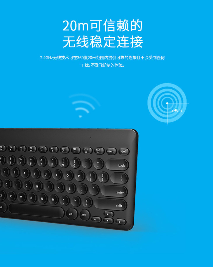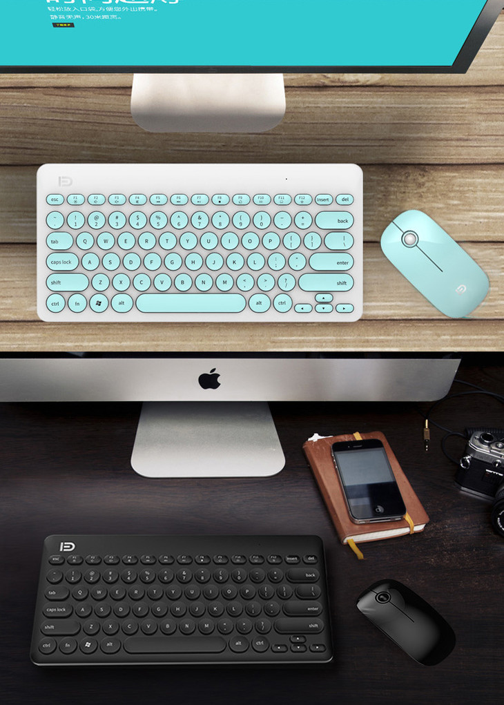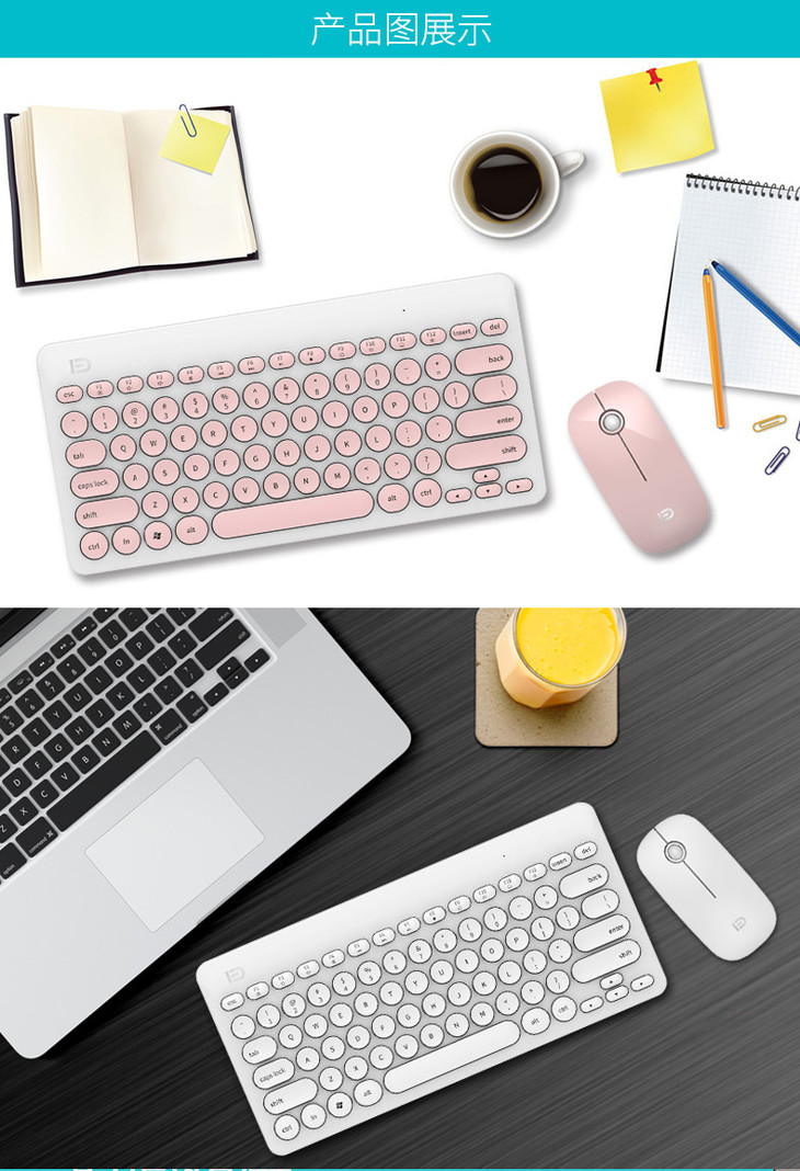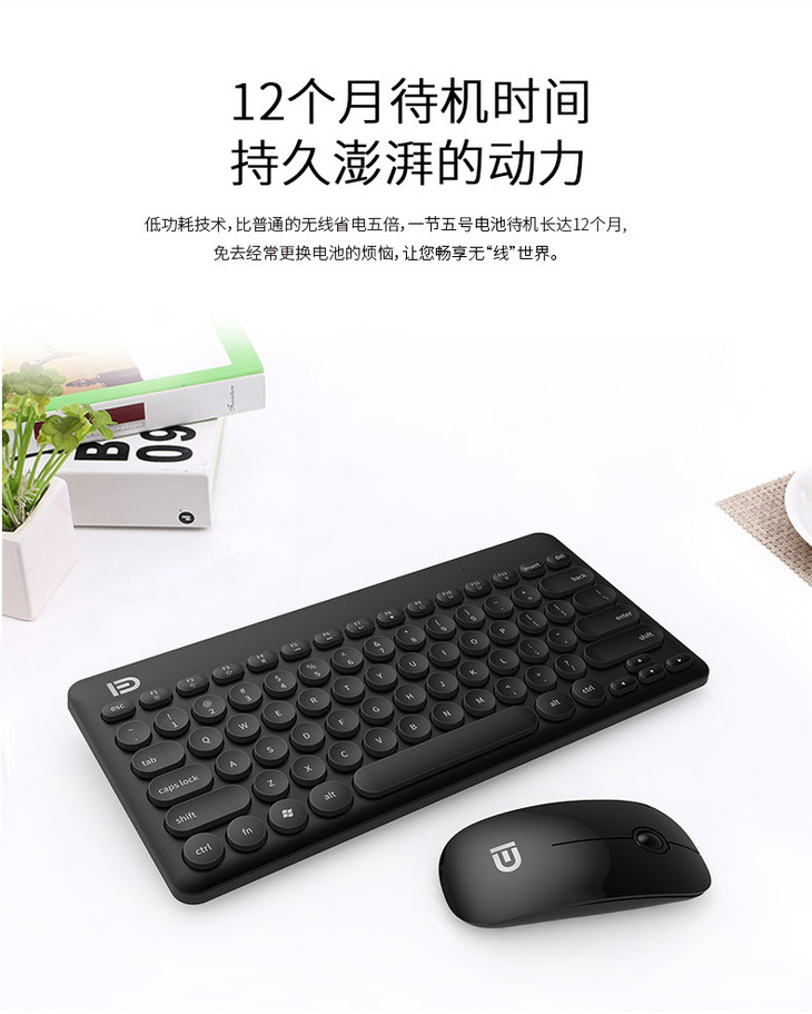 。【键盘】富德6620无线键盘鼠标套装 巧克力圆形键帽静音省电无线键鼠套件