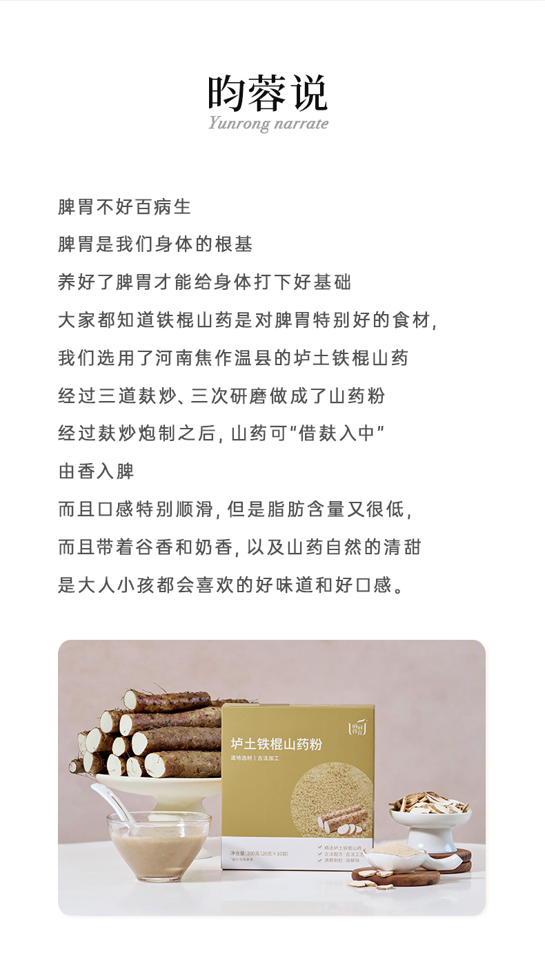 【昀蓉时光 · 垆土铁棍山药粉】精选焦作温县铁棍山药 ·低温研磨· 三道麸炒· 三次研磨·0添加(20g*10条/盒)