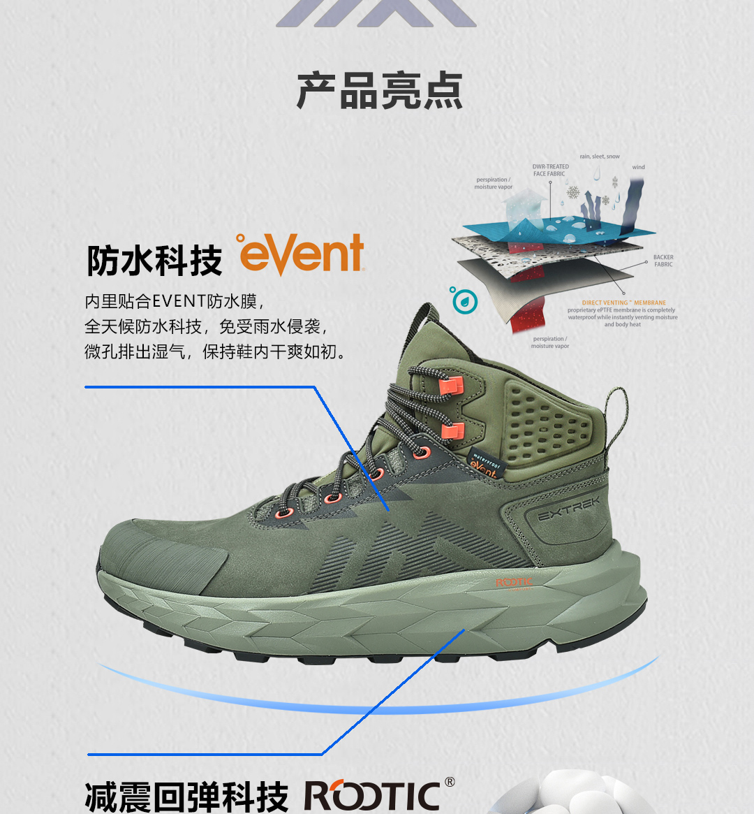天越萨瓦纳防水高帮户外徒步鞋(C513)