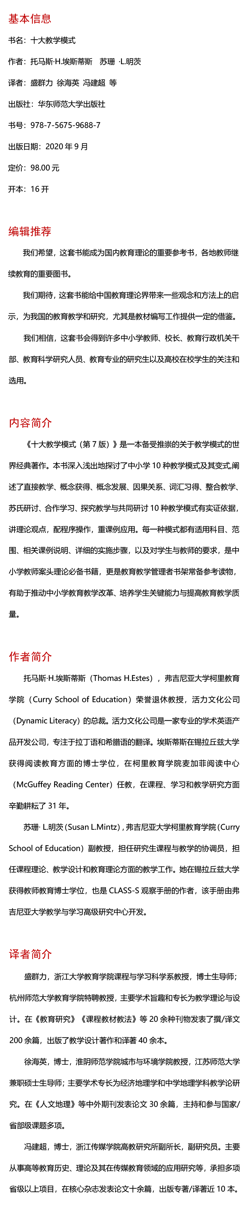 十大教学模式 第7版 教育治理与领导力丛书 中小学教育理论世界经典著作 正版 华东师范大学出版社