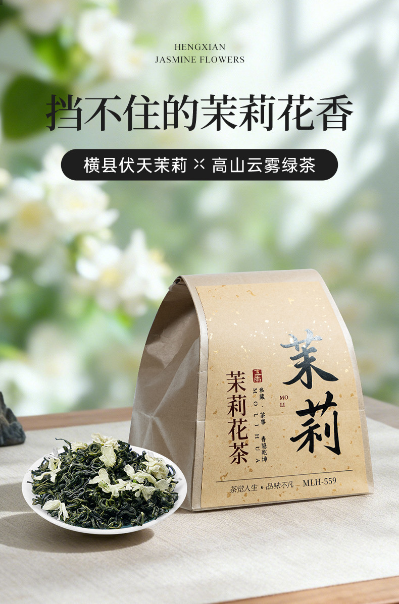 茶叶 茉莉花茶 简约装 茶饮 五虎 250g